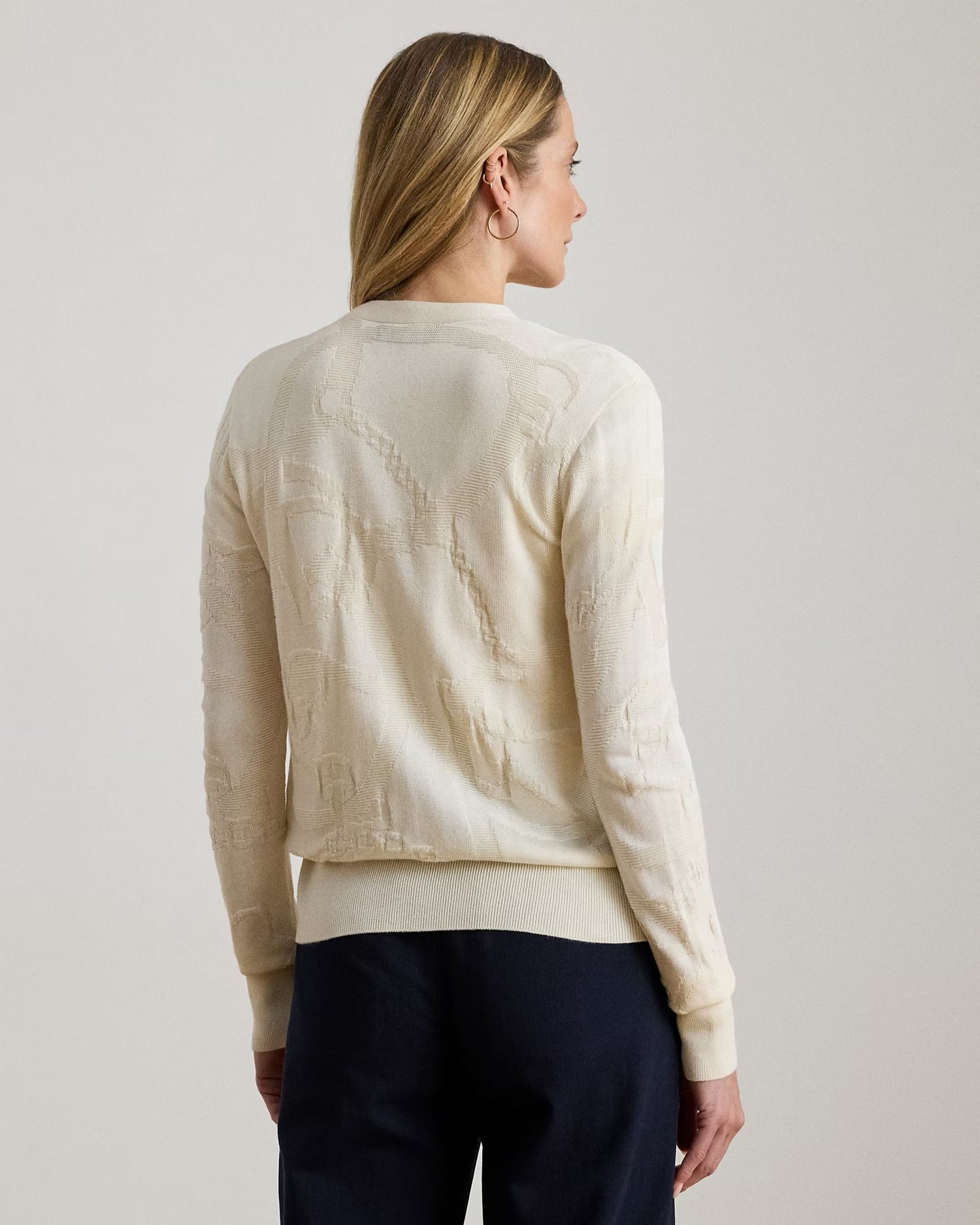 Cardigan in misto cotone con scollo a V e motivo a cinture effetto texture.