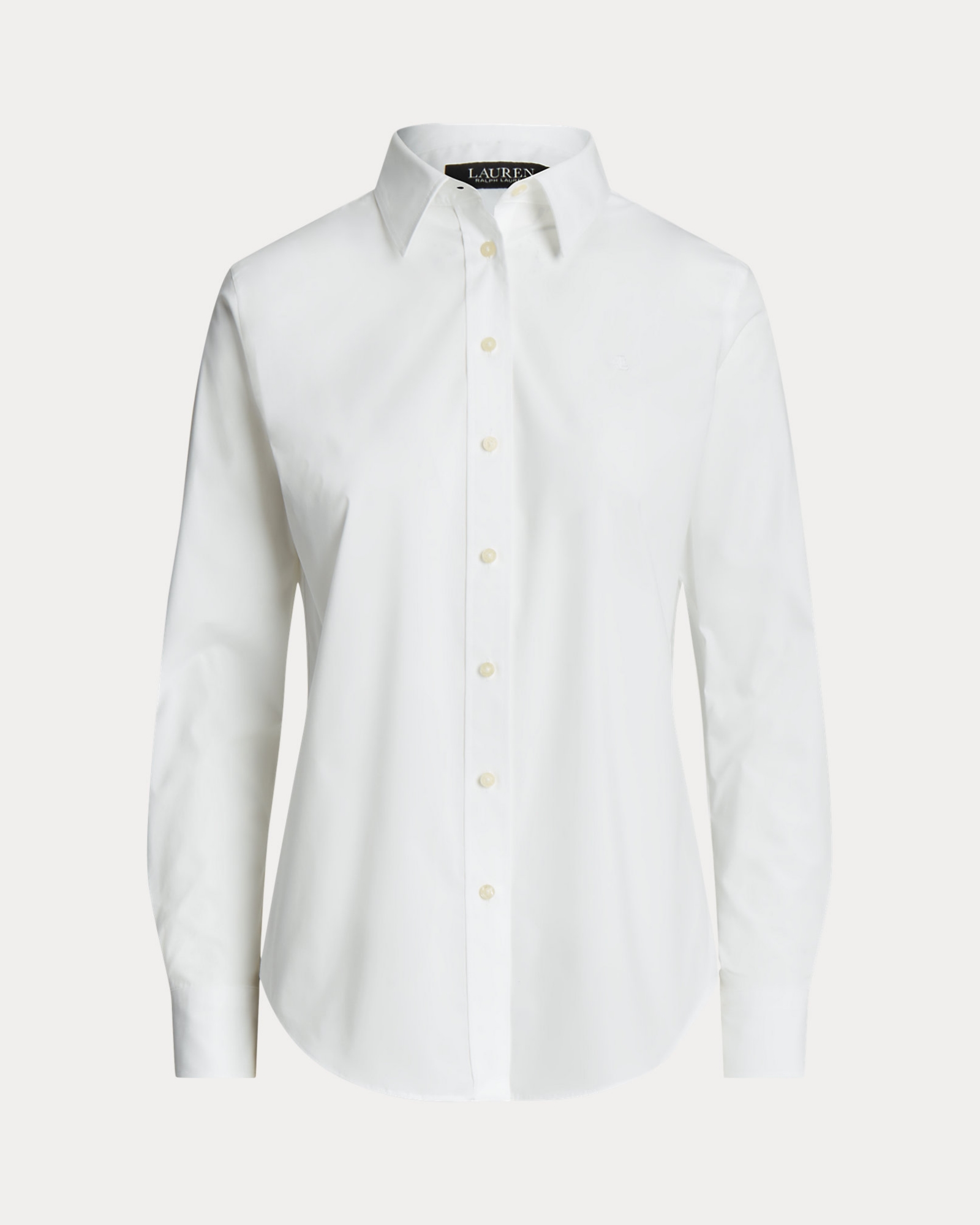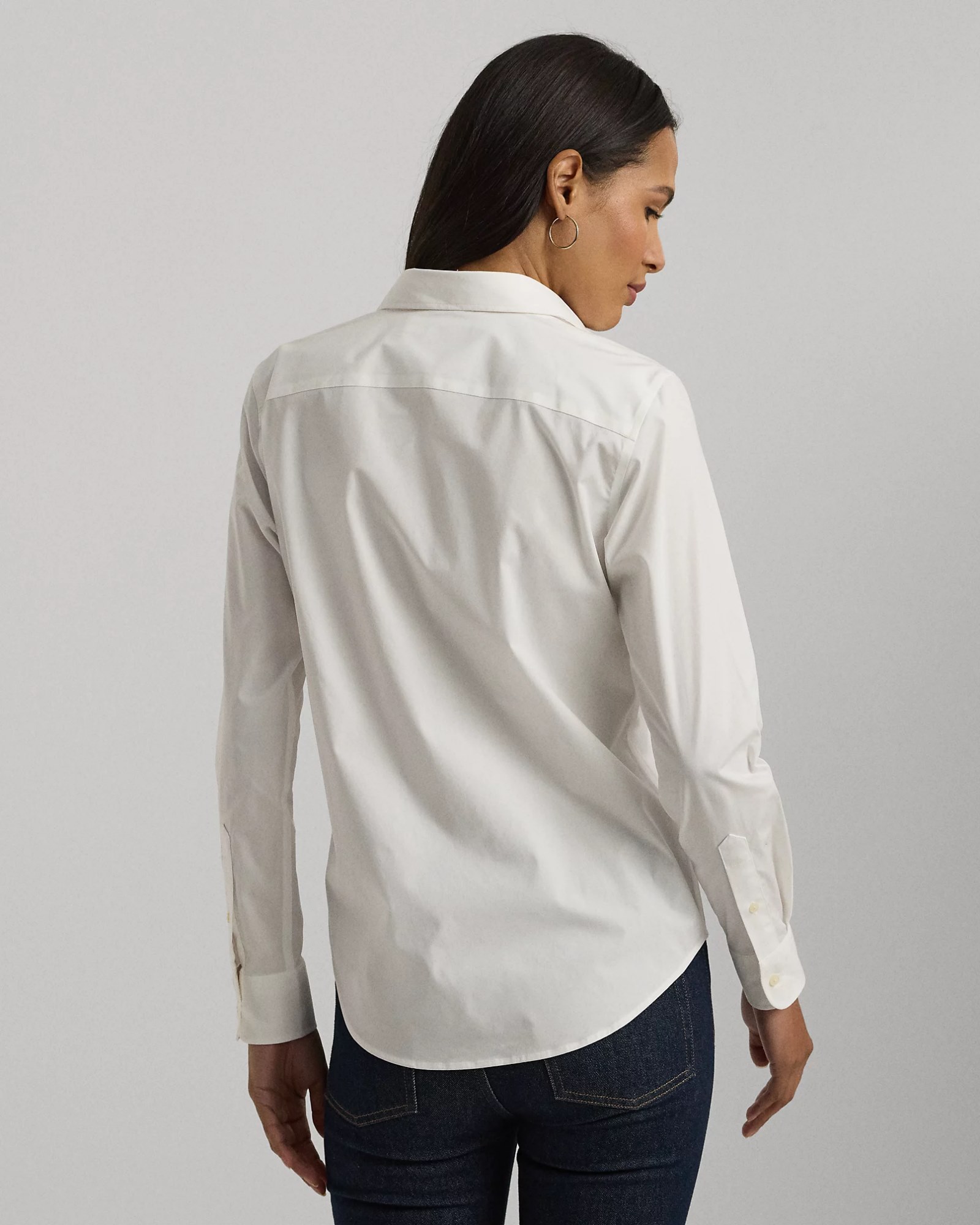 Camicia in cotone stretch anti-grinze con logo ricamato sul petto.