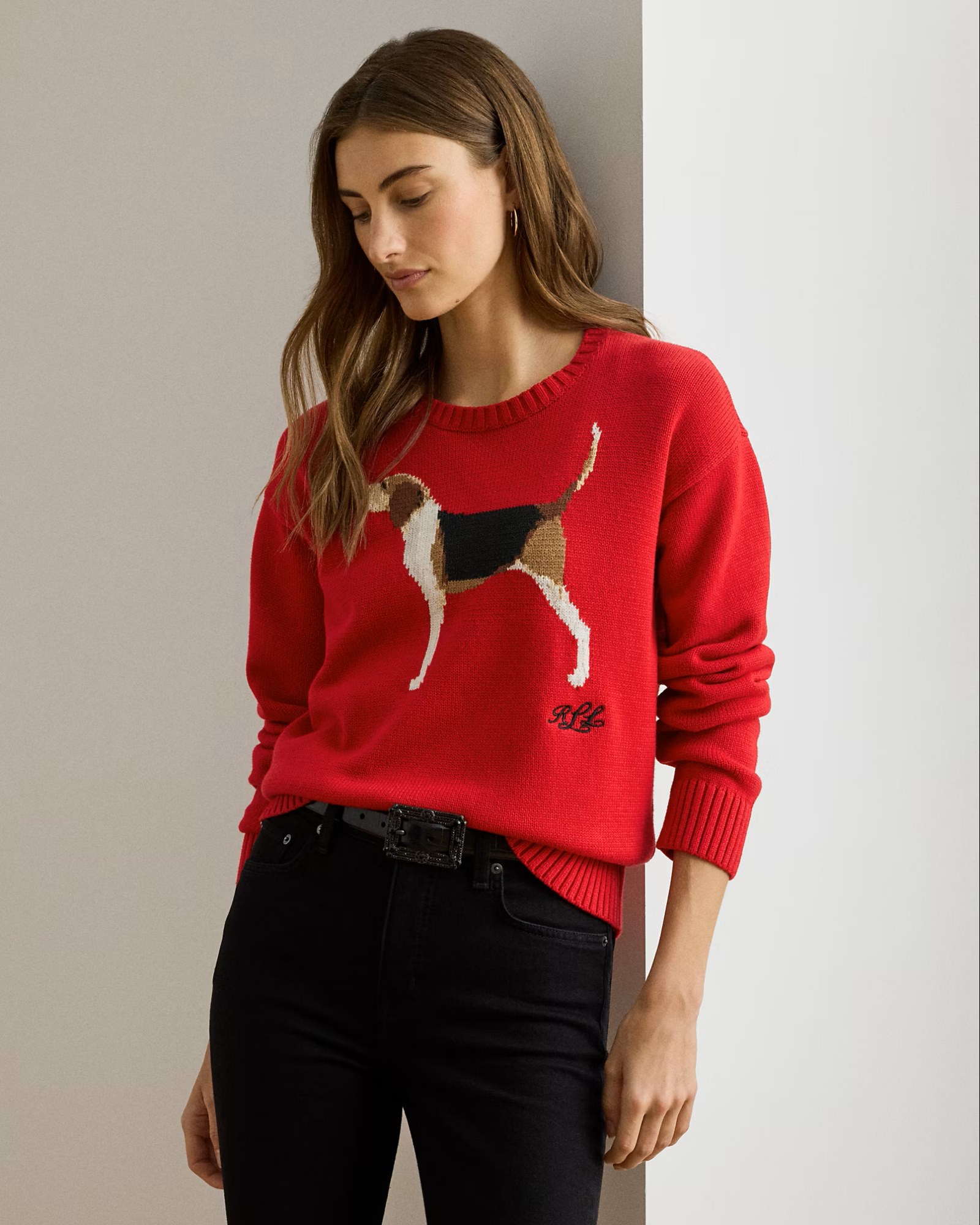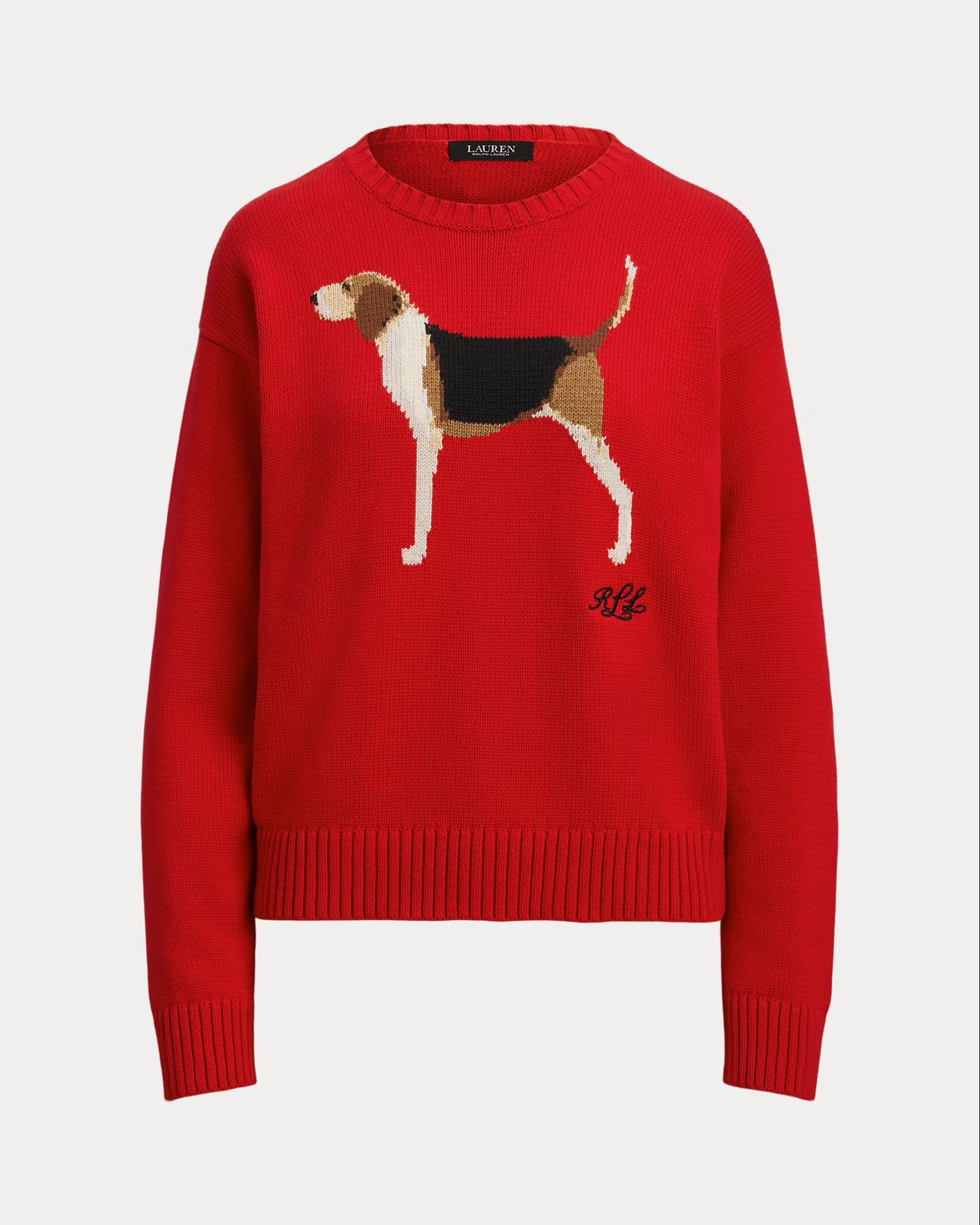 Maglia girocollo a intarsi e logo "LRL" ricamato sul torace.