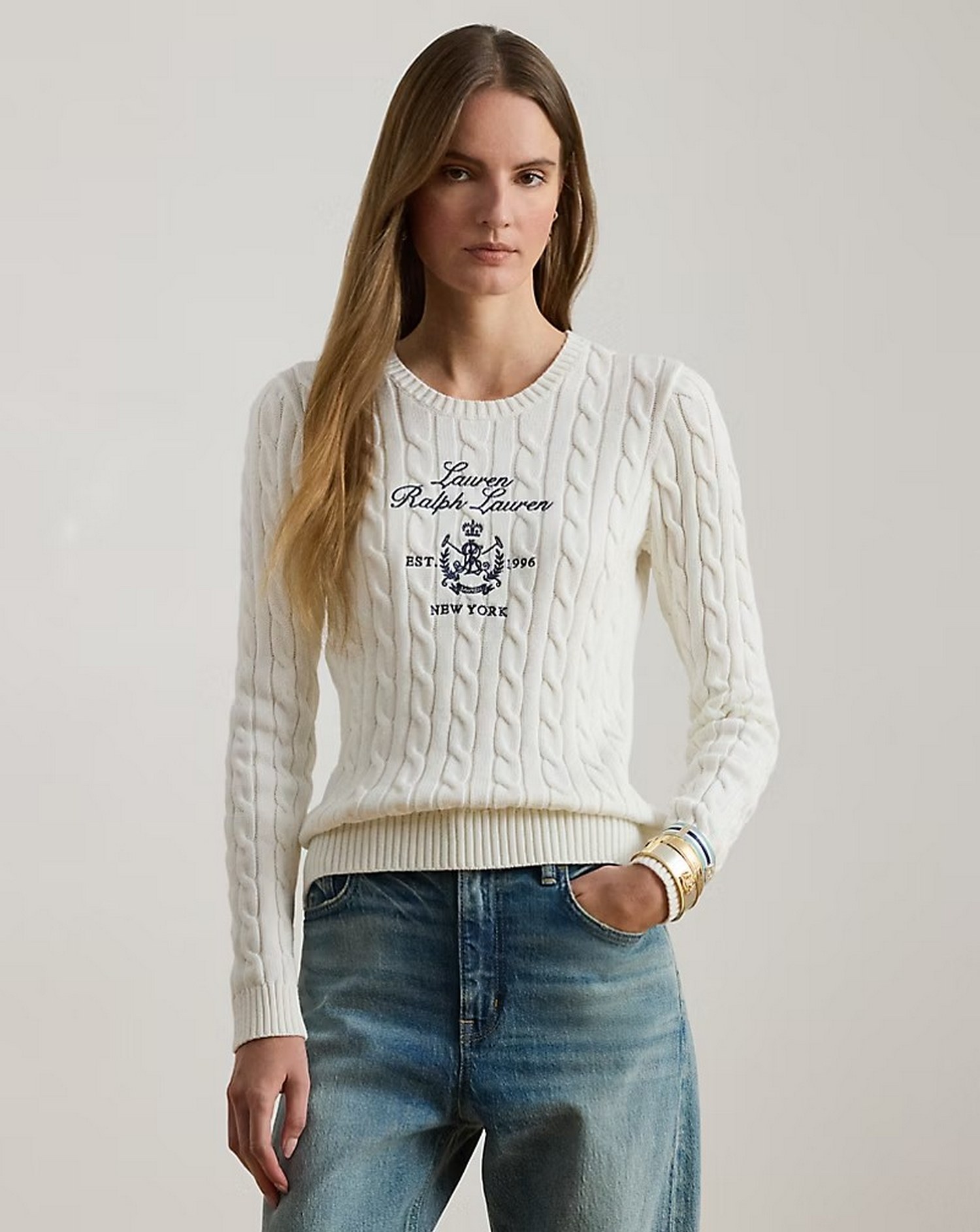 Maglia in cotone a con stemma Lauren ricamato sul torace.