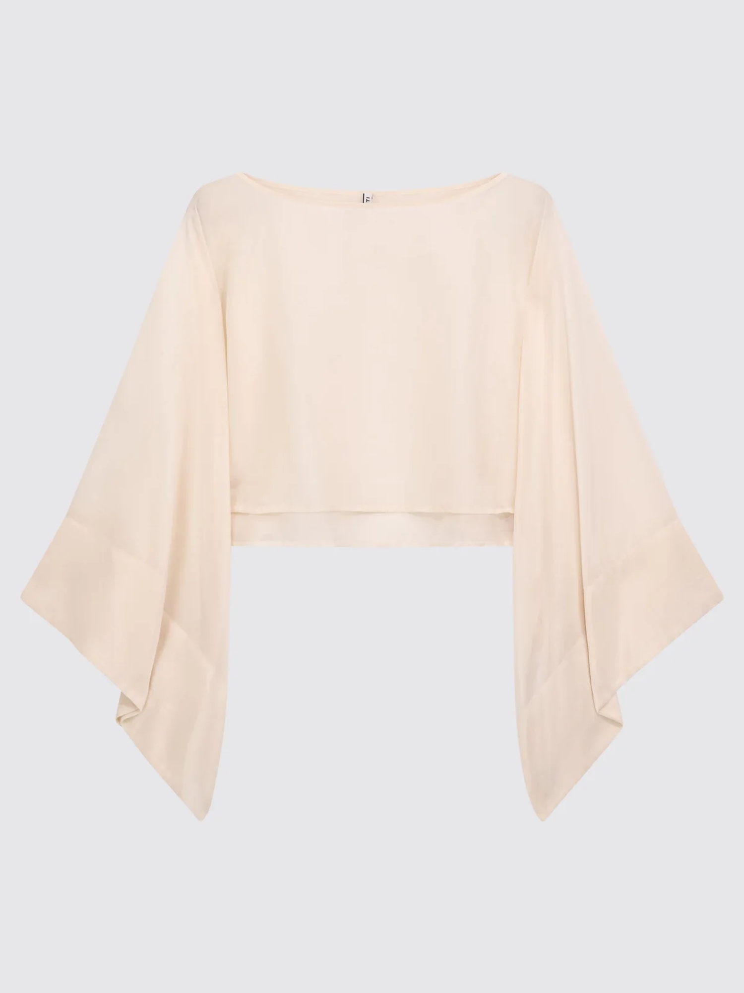 Cappa in voile di cotone-seta con maniche ampie da poter utilizzare davanti-dietro.