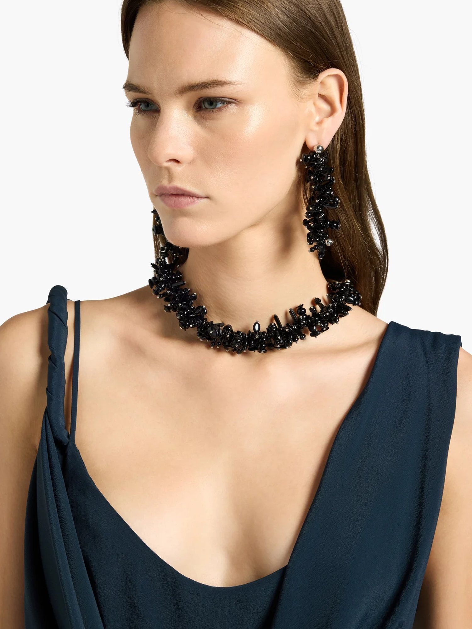 Abito lungo smanicato in crepe de chine
