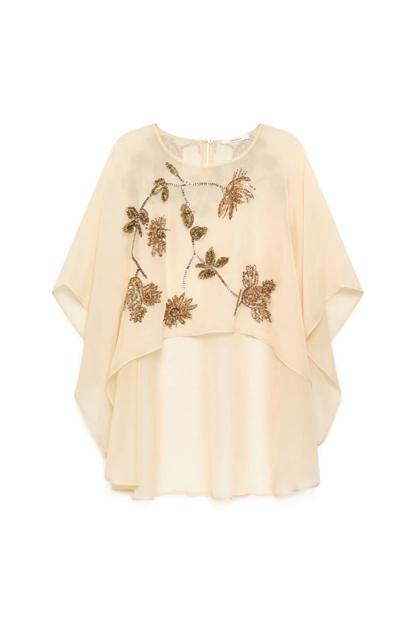 Cappa in organza di viscosa ricamata a mano con dettagli di perline e paillettes.