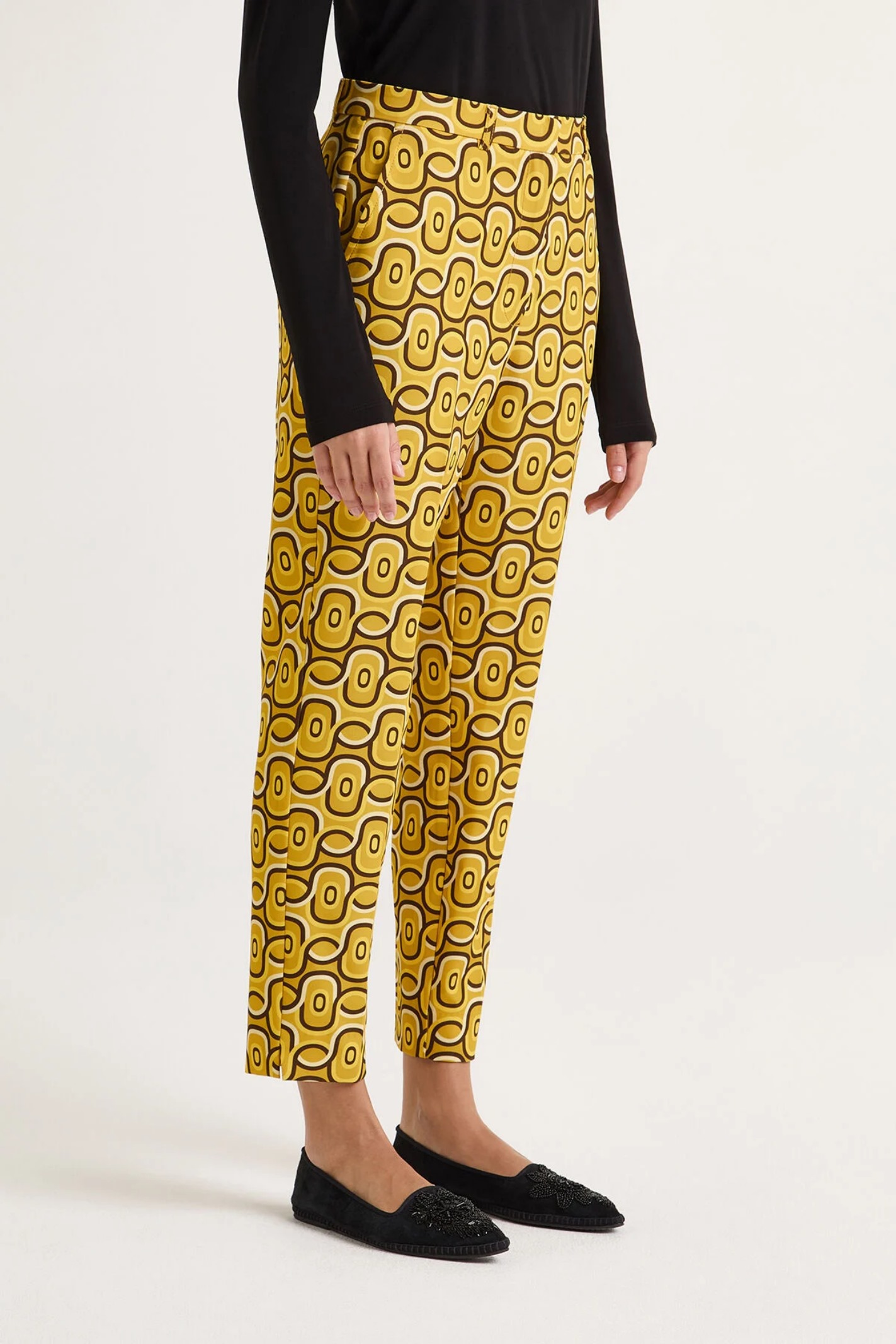 Pantalone a sigaretta in cady stretch con lunghezza alla caviglia, spacchetti e apertura sul davanti.