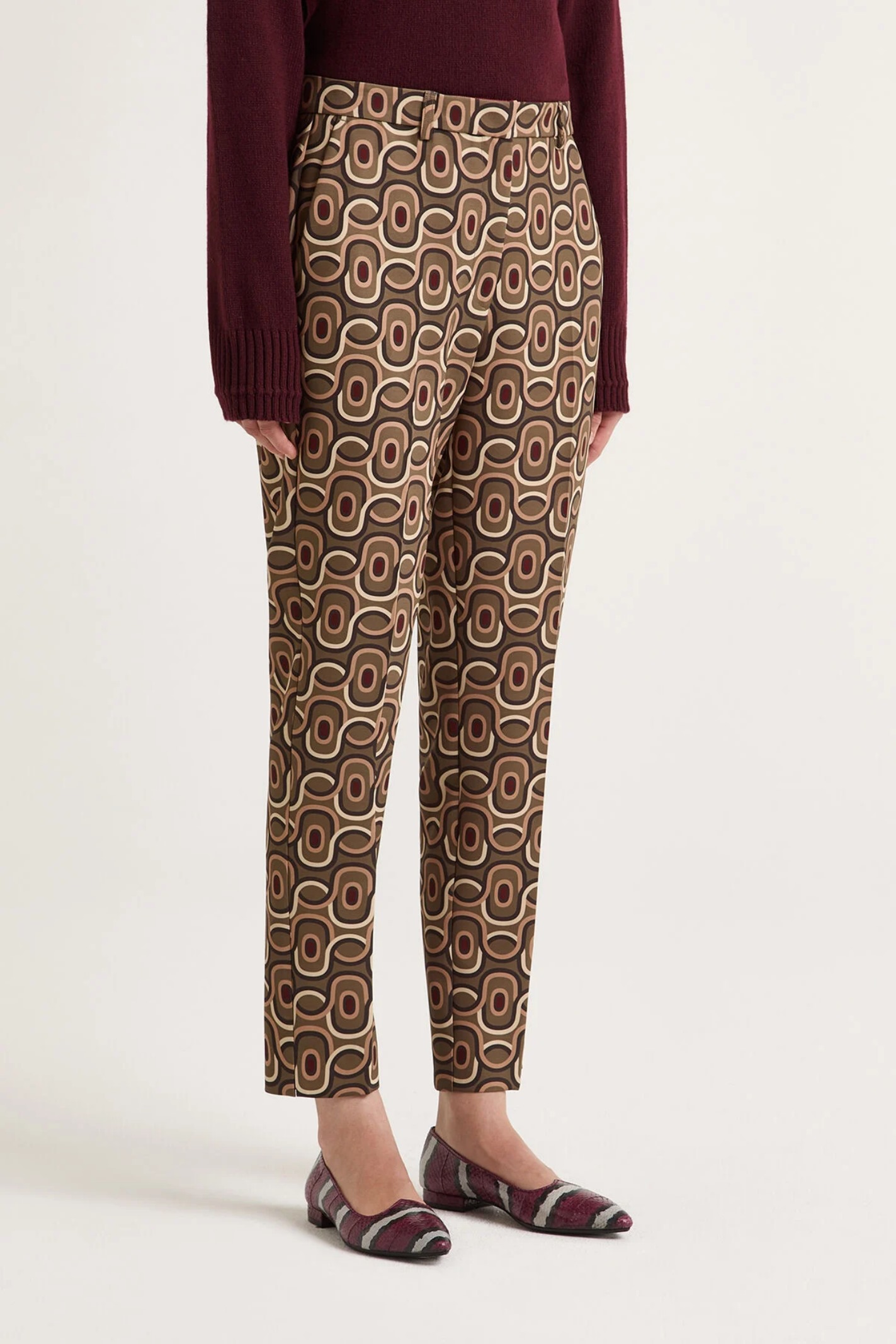 Pantalone a sigaretta in cady stretch con lunghezza alla caviglia, spacchetti e apertura sul davanti.