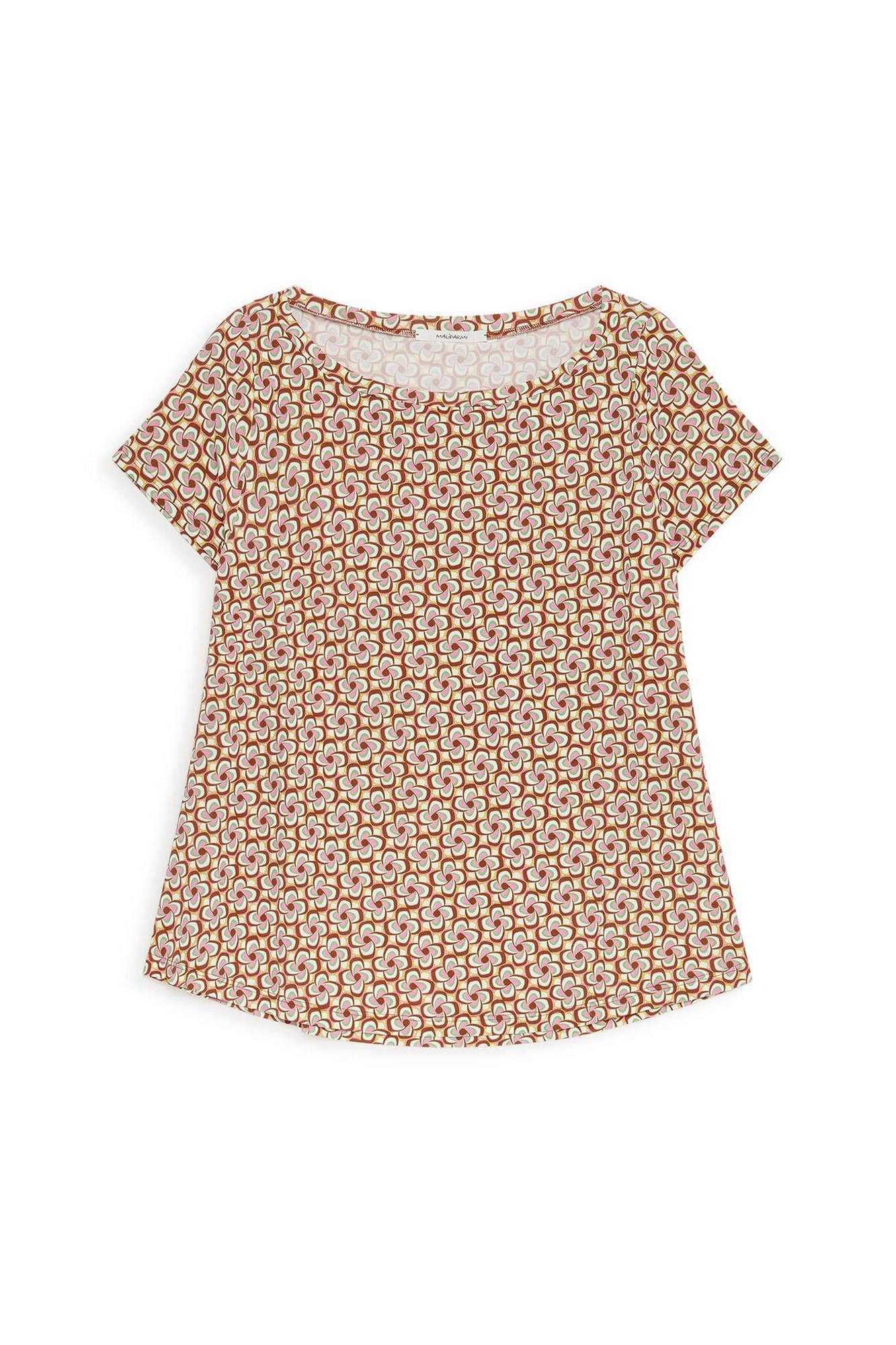 T-shirt con scollo a barchetta in jersey di viscosa con microstampa geometrica.