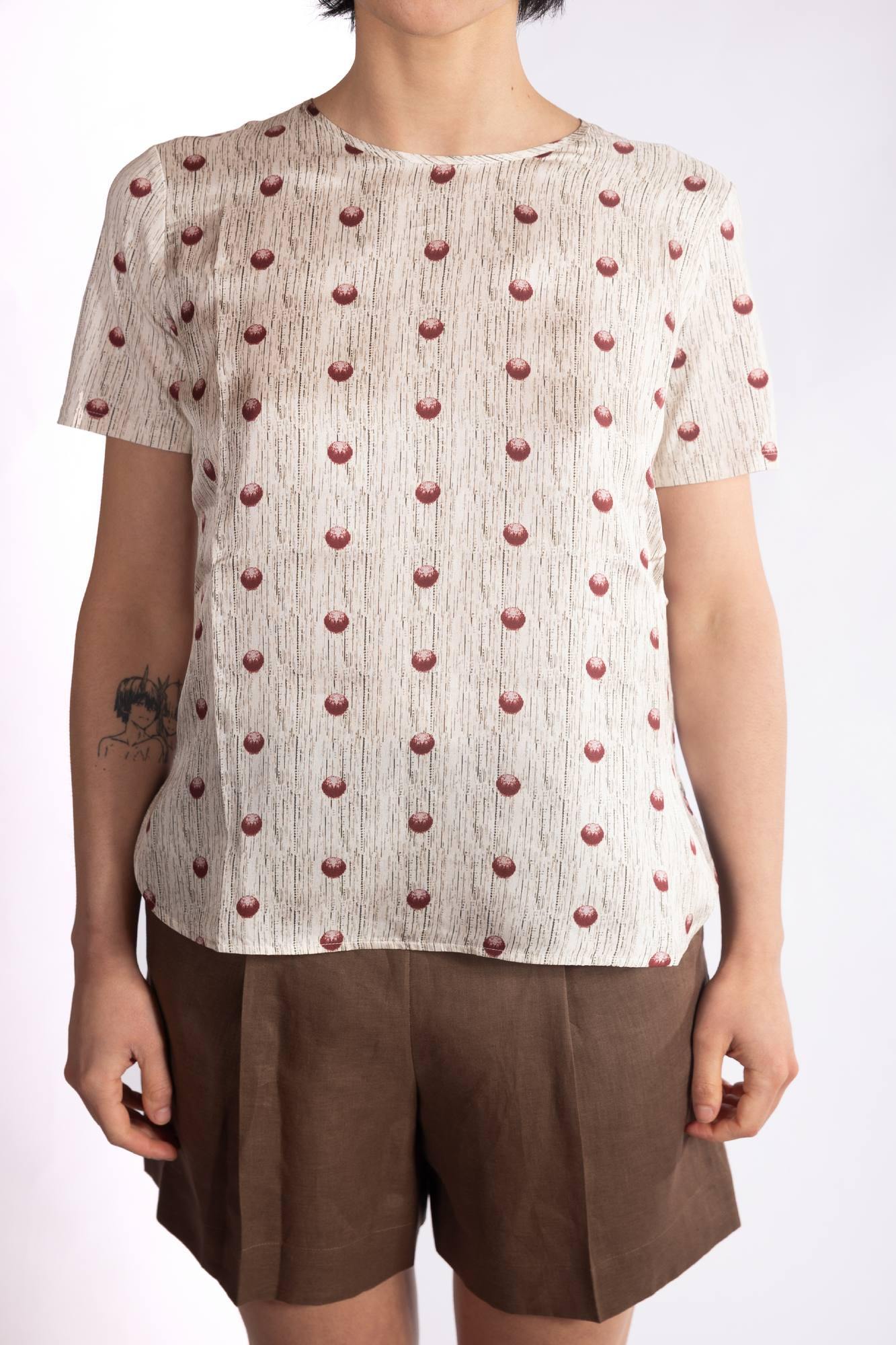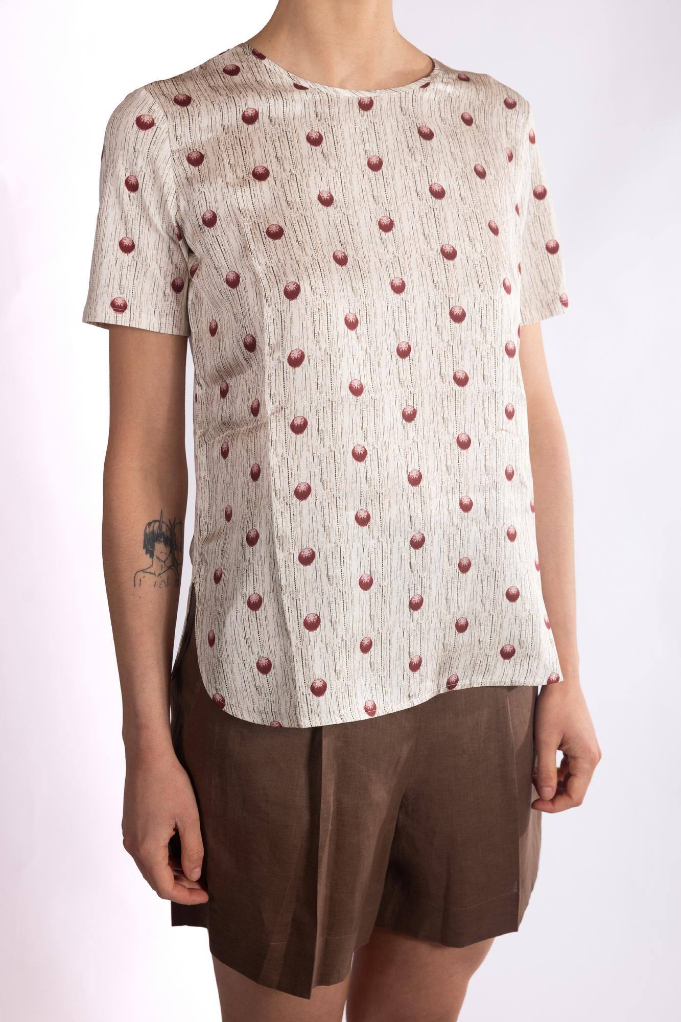 Blusa a maniche corte con scollo rotondo e vestibilità regolare.