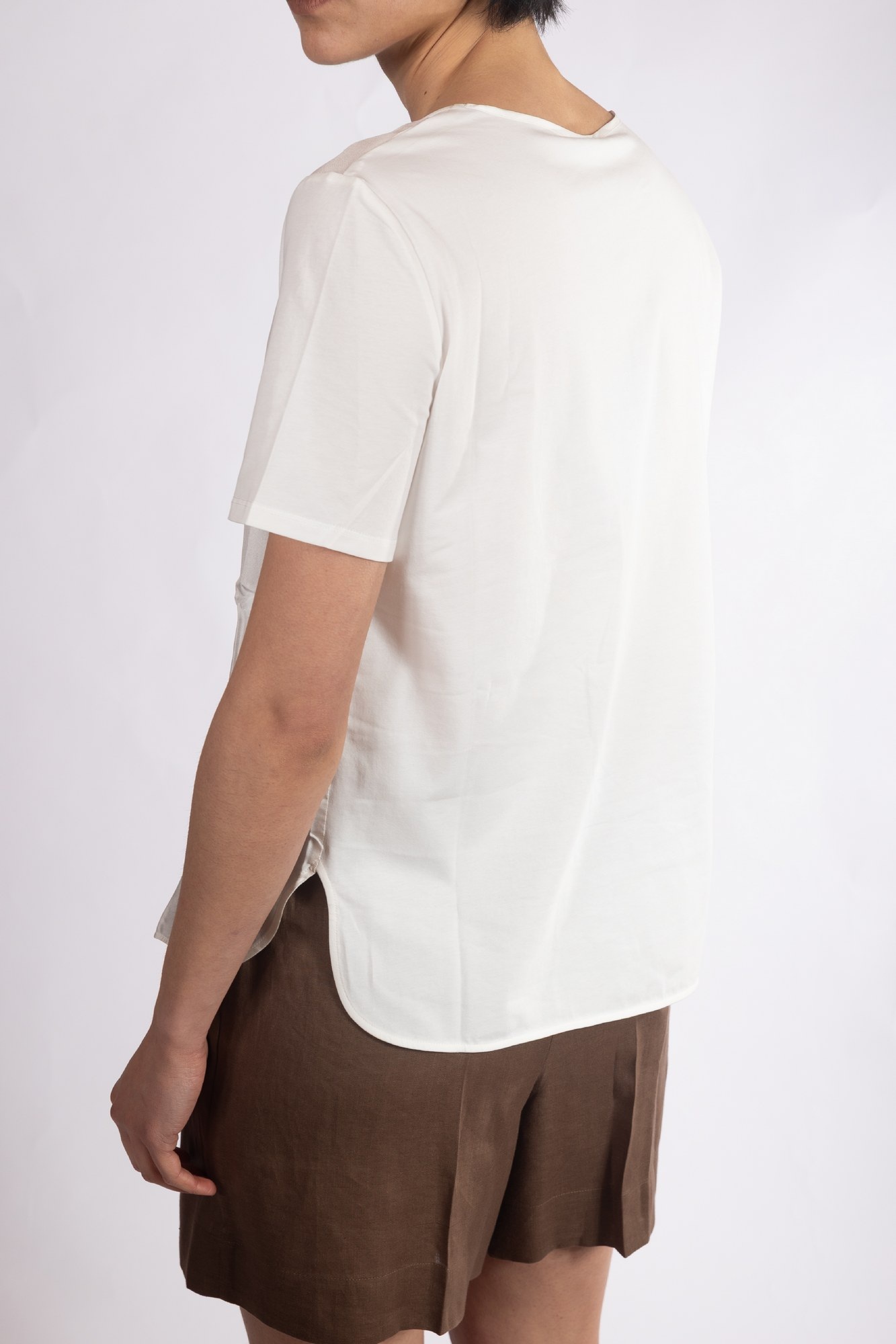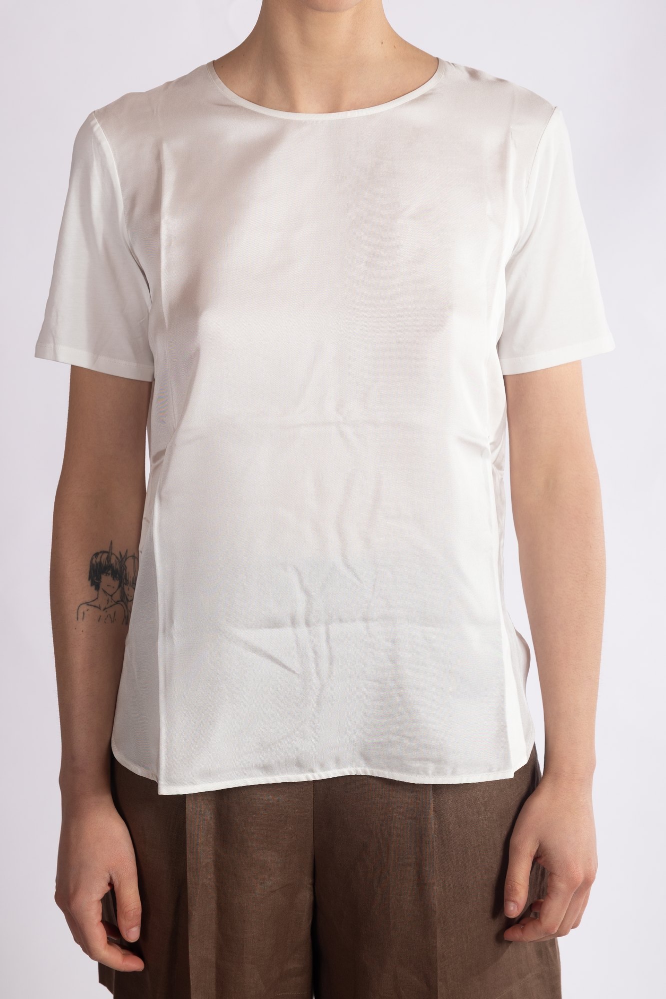 Blusa a maniche corte con scollo rotondo e vestibilità regolare.