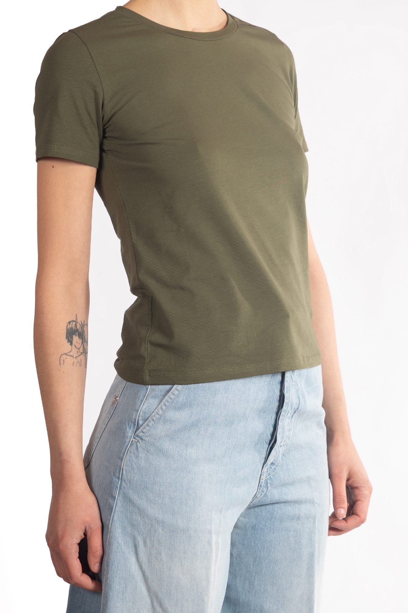 T-shirt a maniche corte con scollo rotondo a costine e vestibilità regolare.