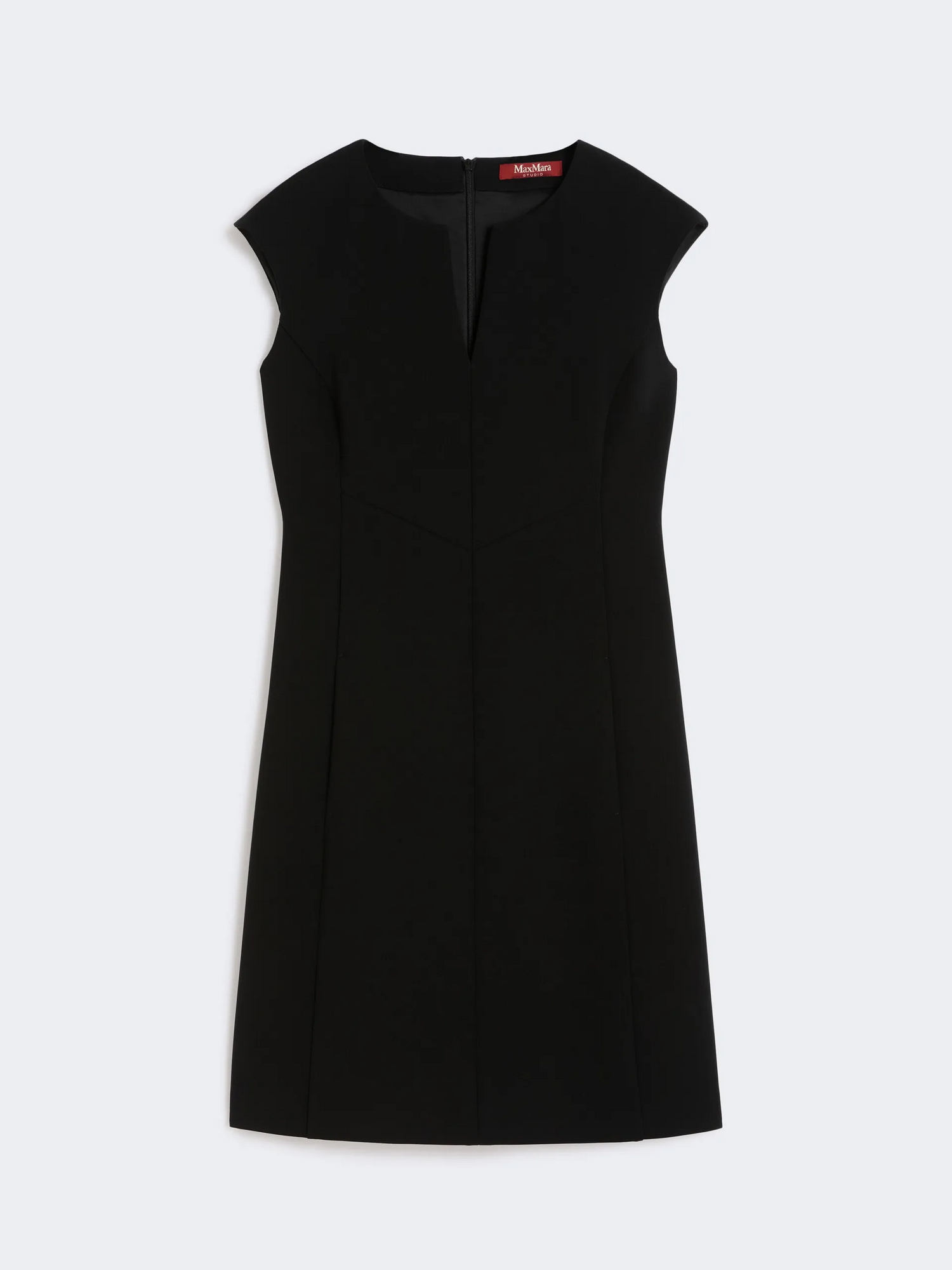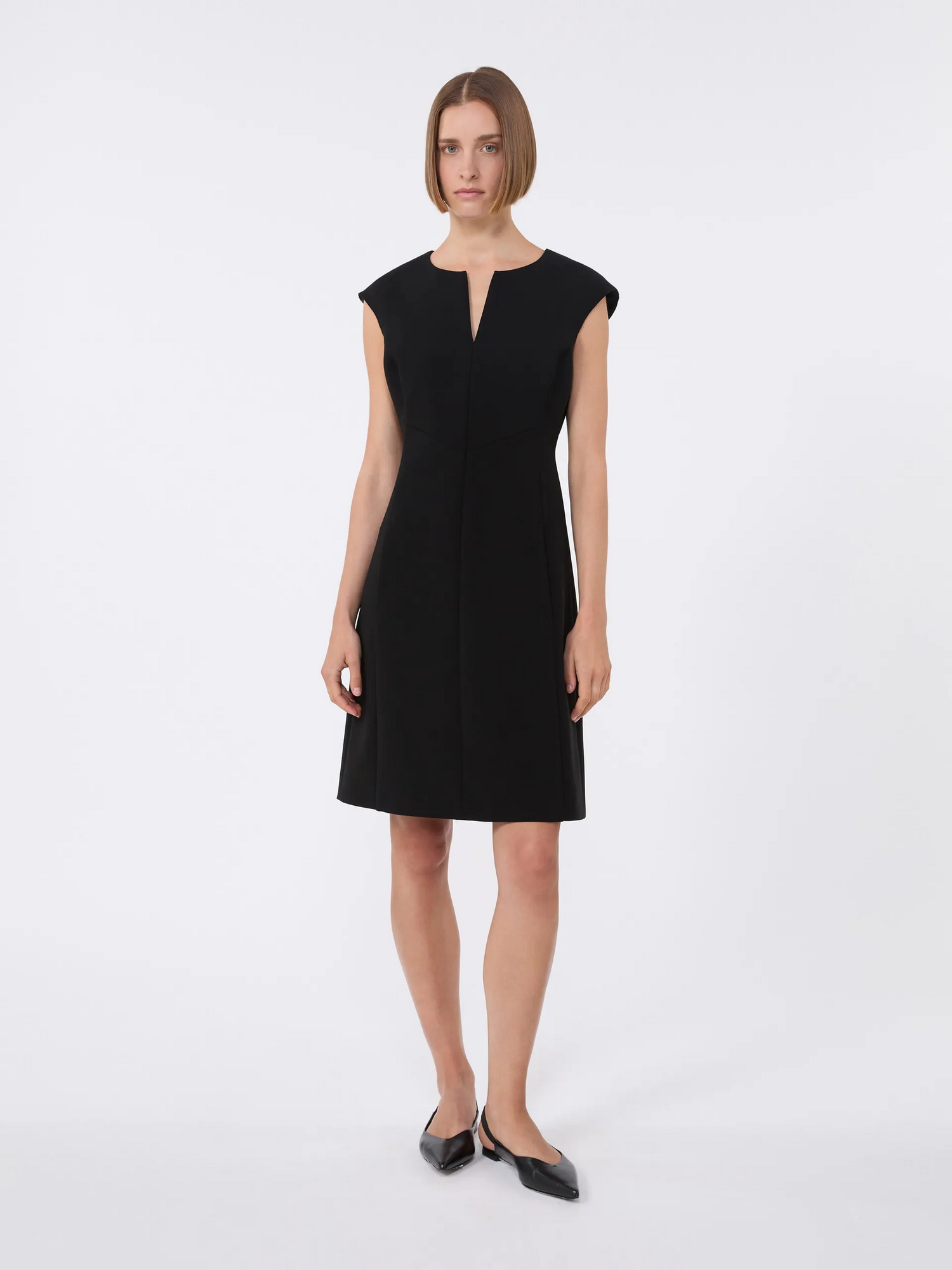 Abito corto modello princesse, caratterizzato da motivo di taglio obliquo in vita e impunture verticali che evidenziano la silhouette.