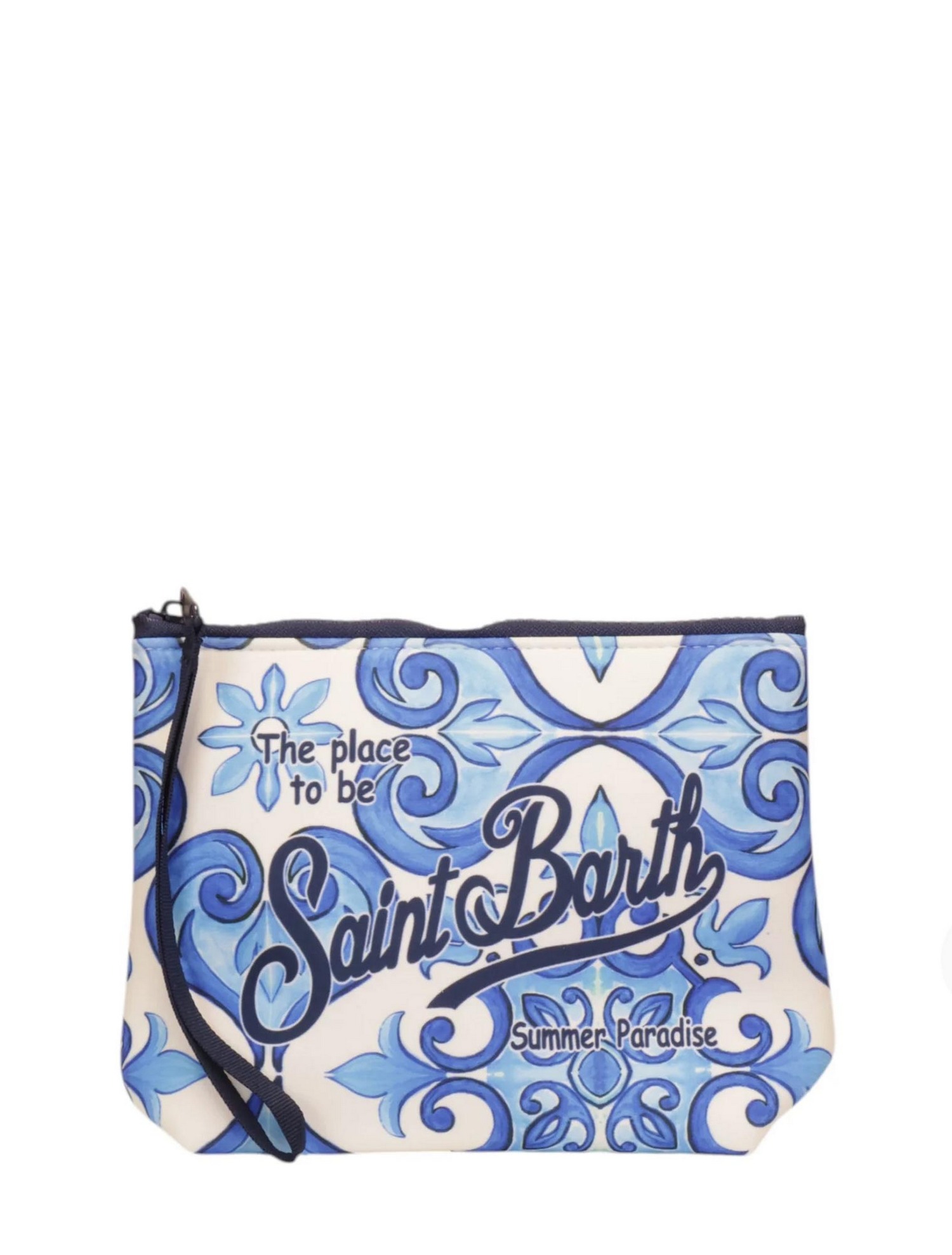 Pochette in scuba con chiusura con zip.