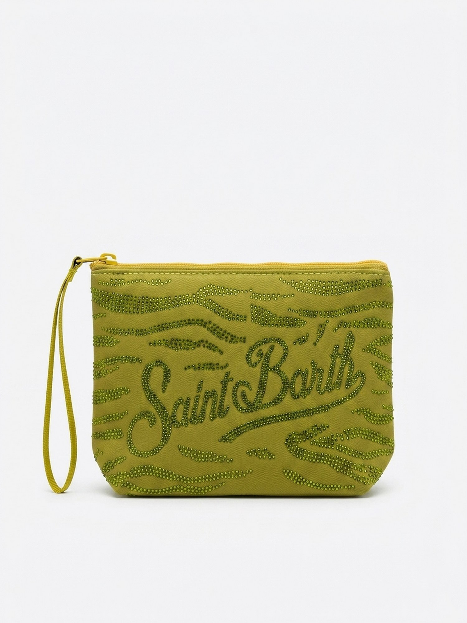 Pochette con strass con chiusura con zip.