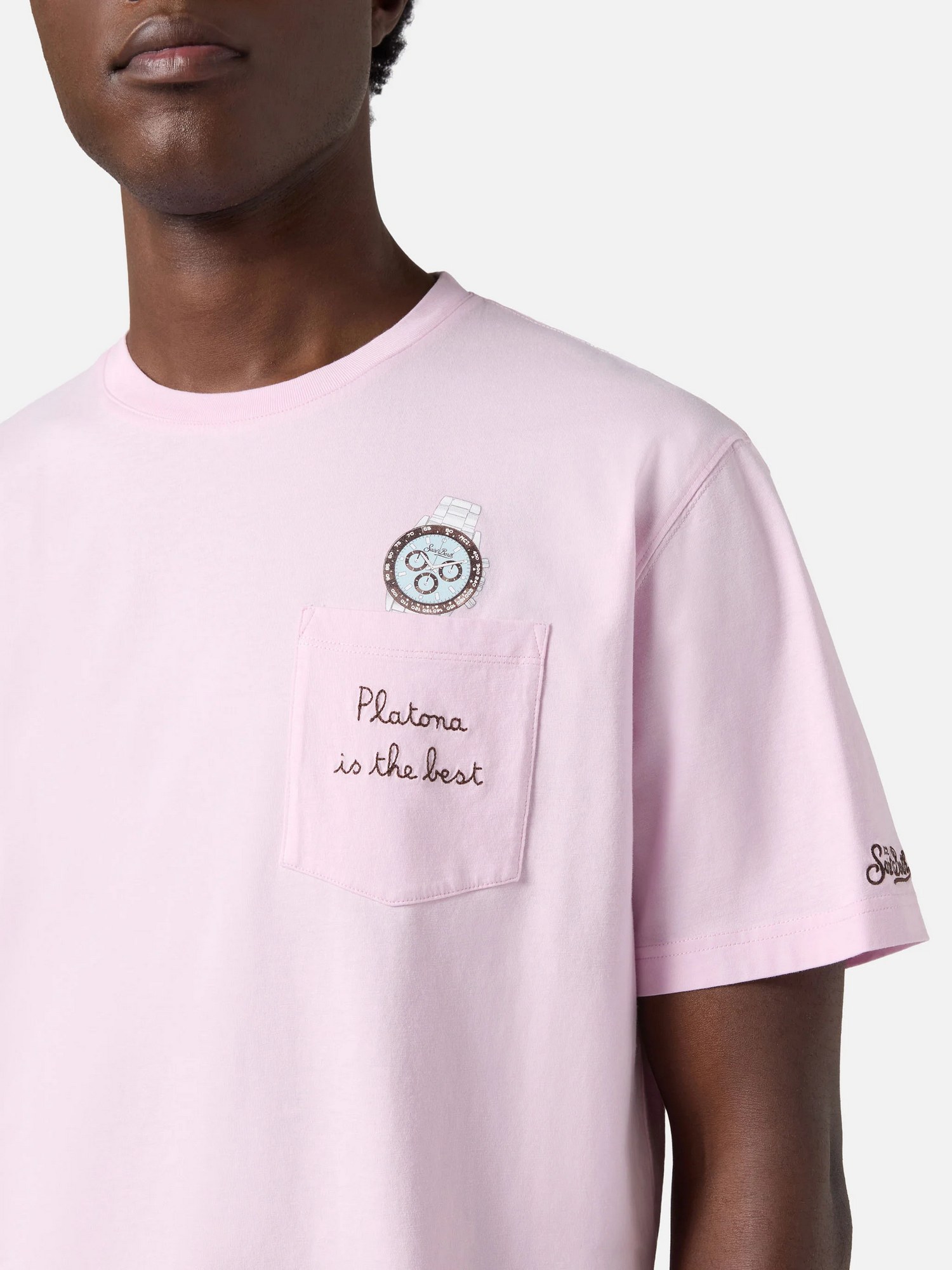 T-shirt in cotone con ricamo e taschino sul petto.