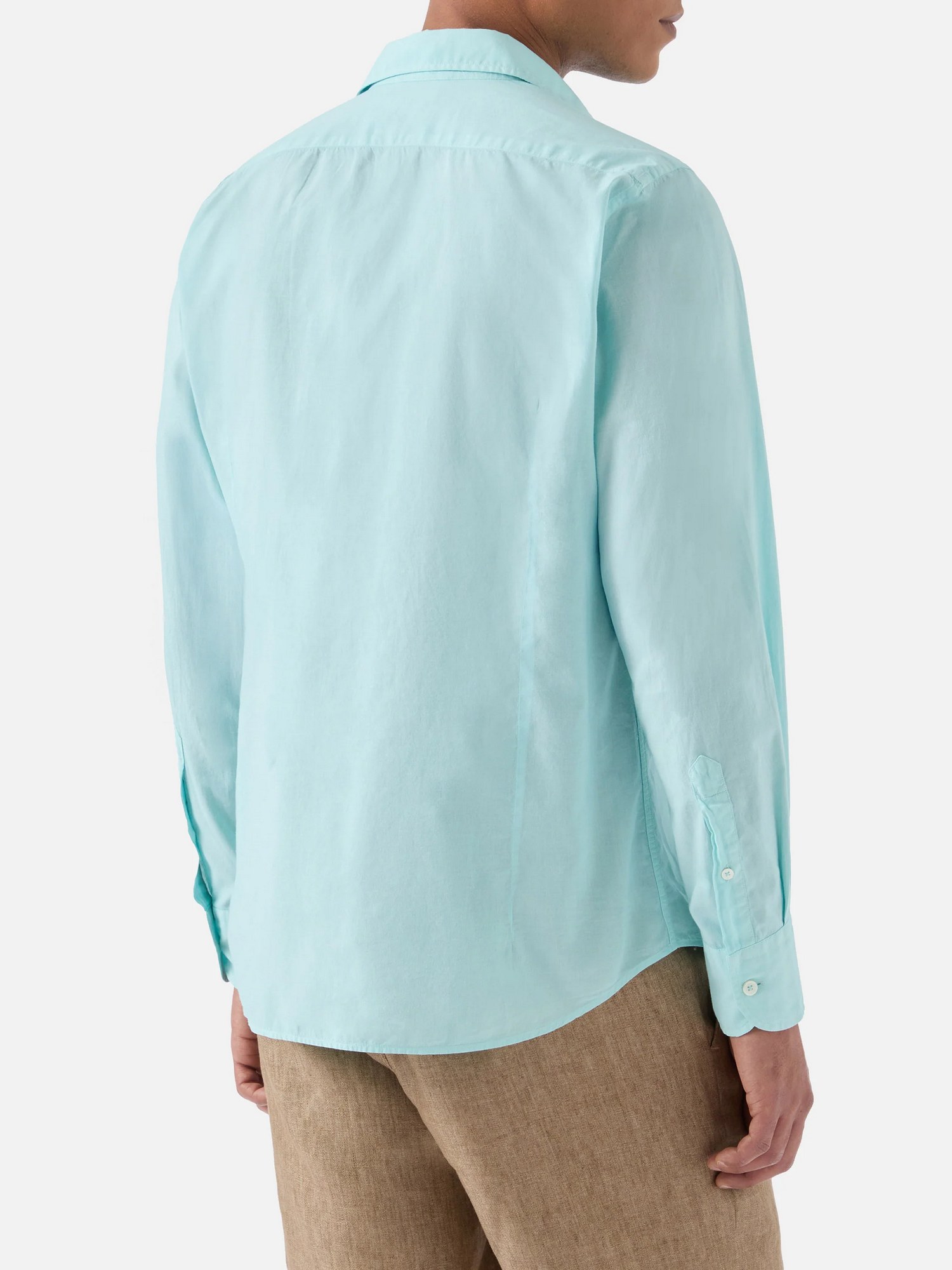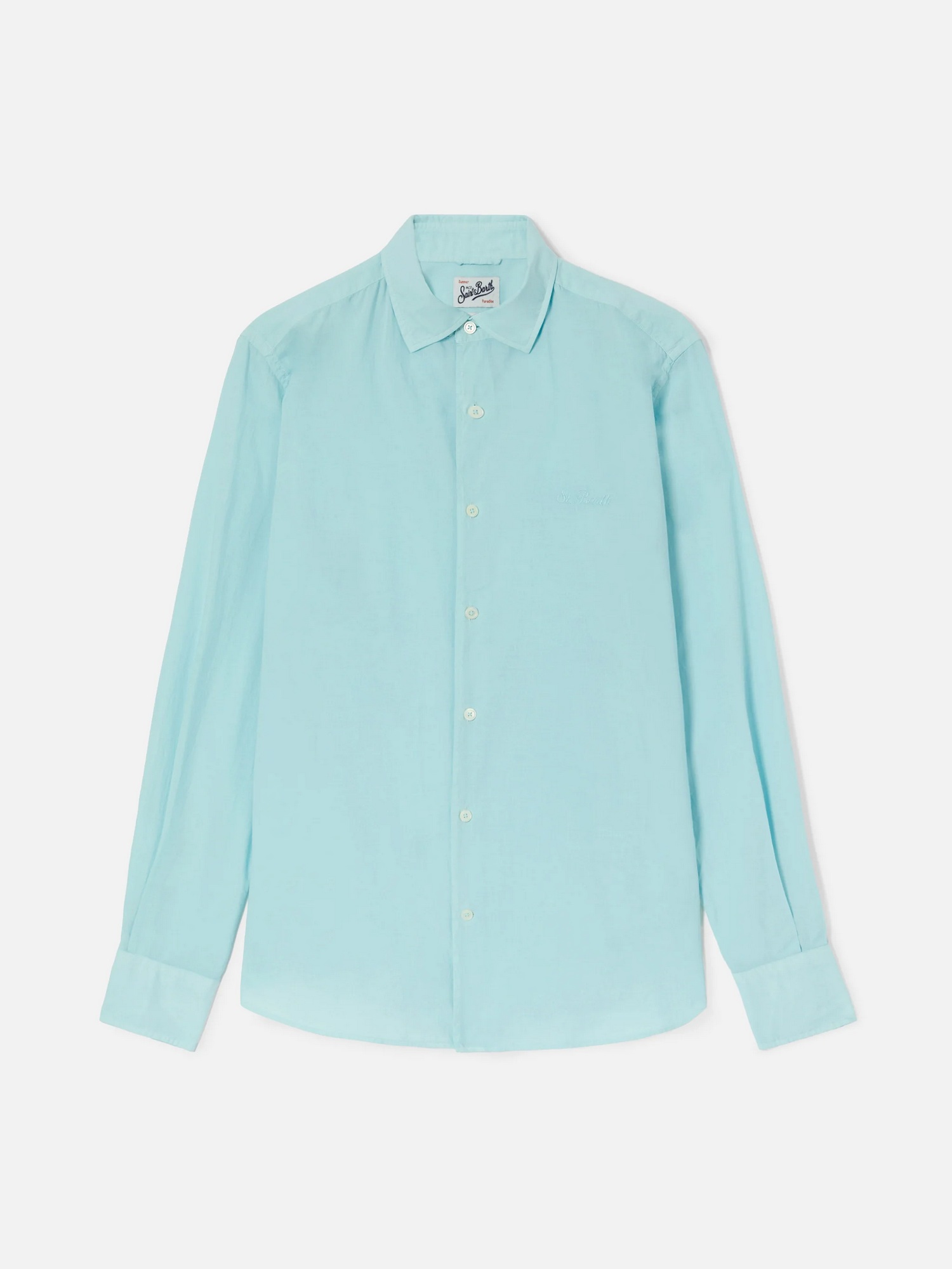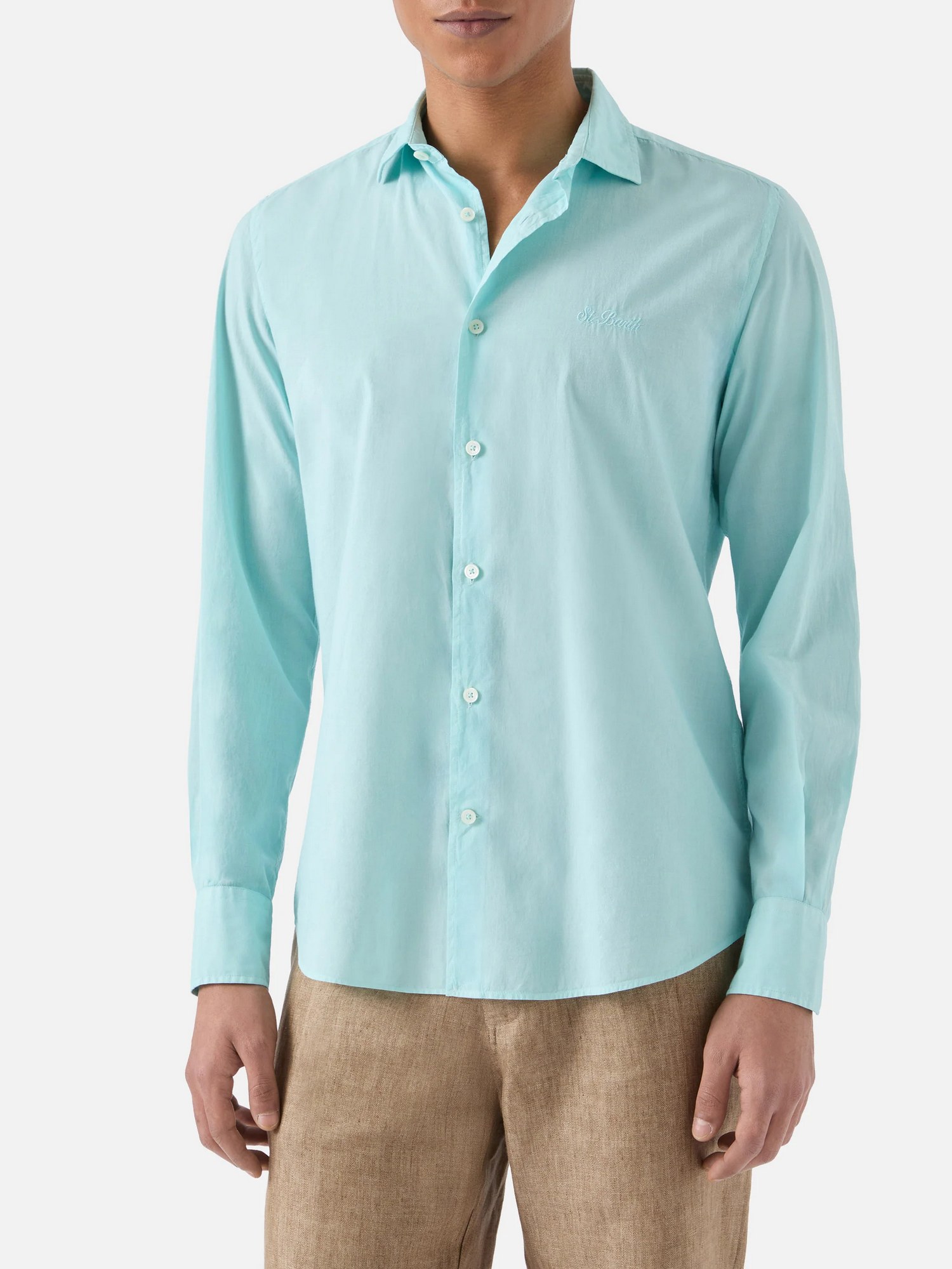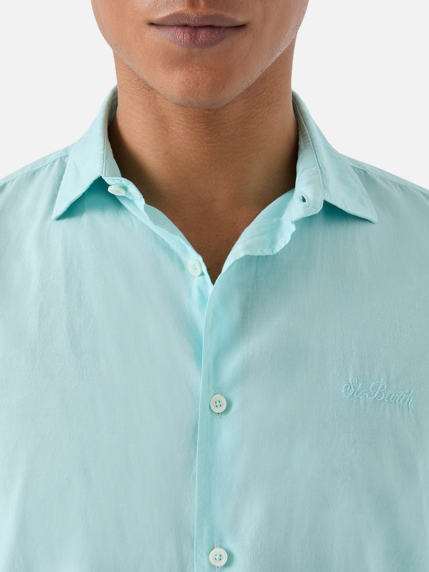 Camicia in cotone voile con ricamo logo tono su tono sul petto, collo classico, abbottonatura frontale e bottoni logati effetto madreperla.