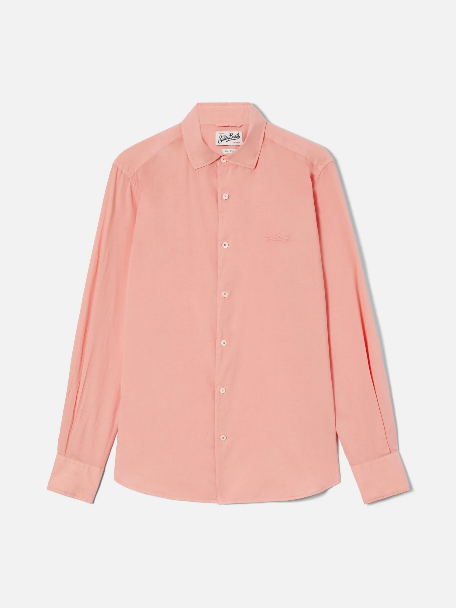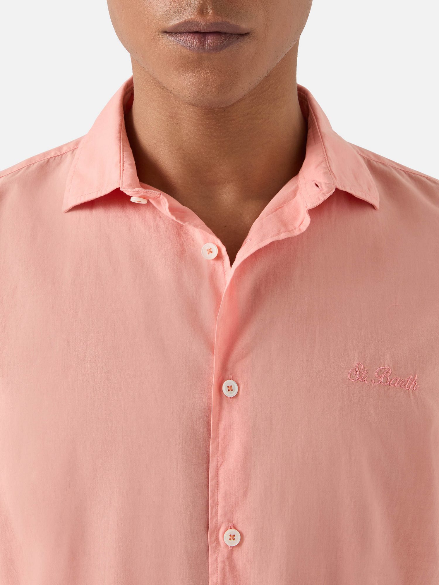 Camicia in cotone voile con ricamo logo tono su tono sul petto, collo classico, abbottonatura frontale e bottoni logati effetto madreperla.