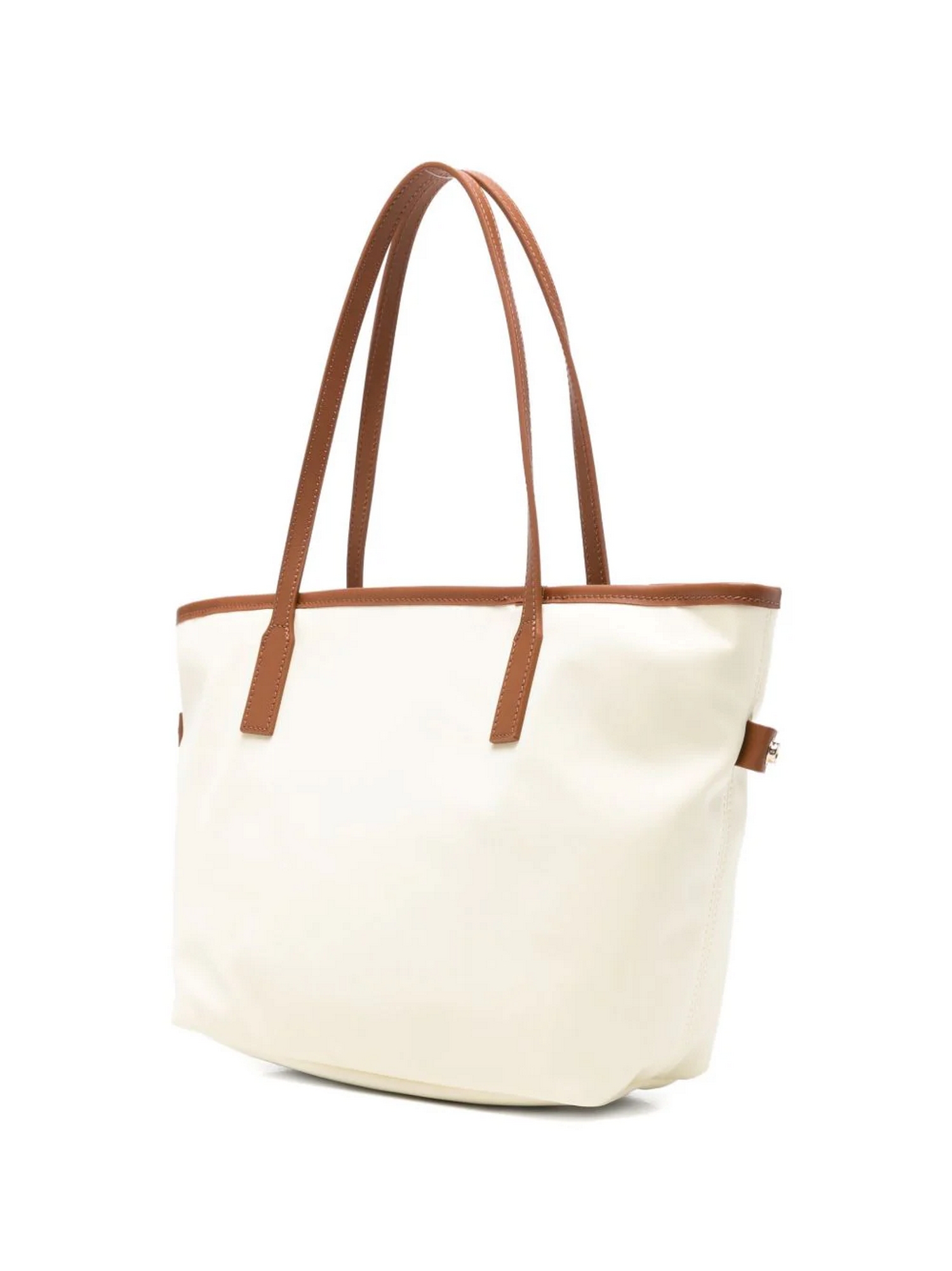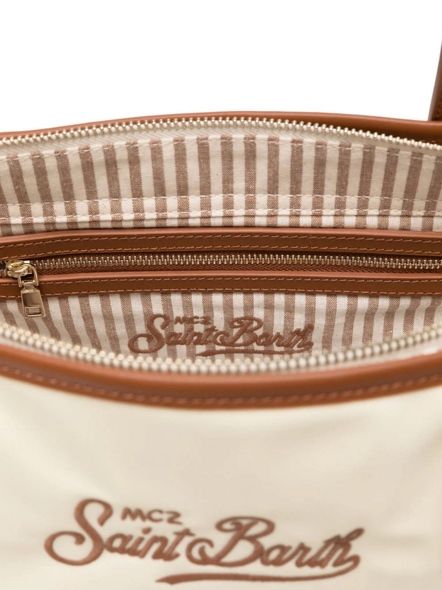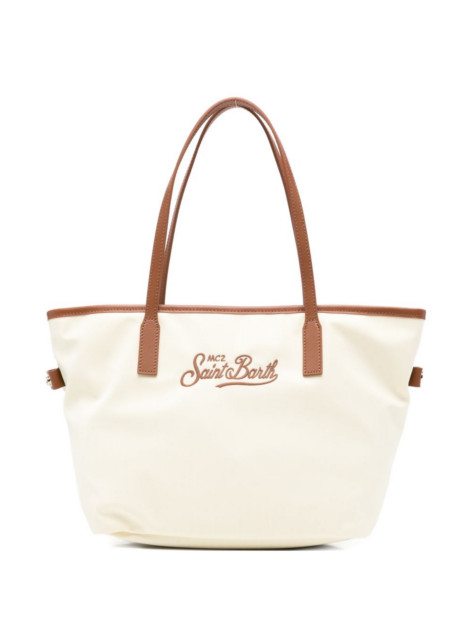 Tote bag con manici, ricamo sul fronte, chiusura superiore con zip e tasca interna.
