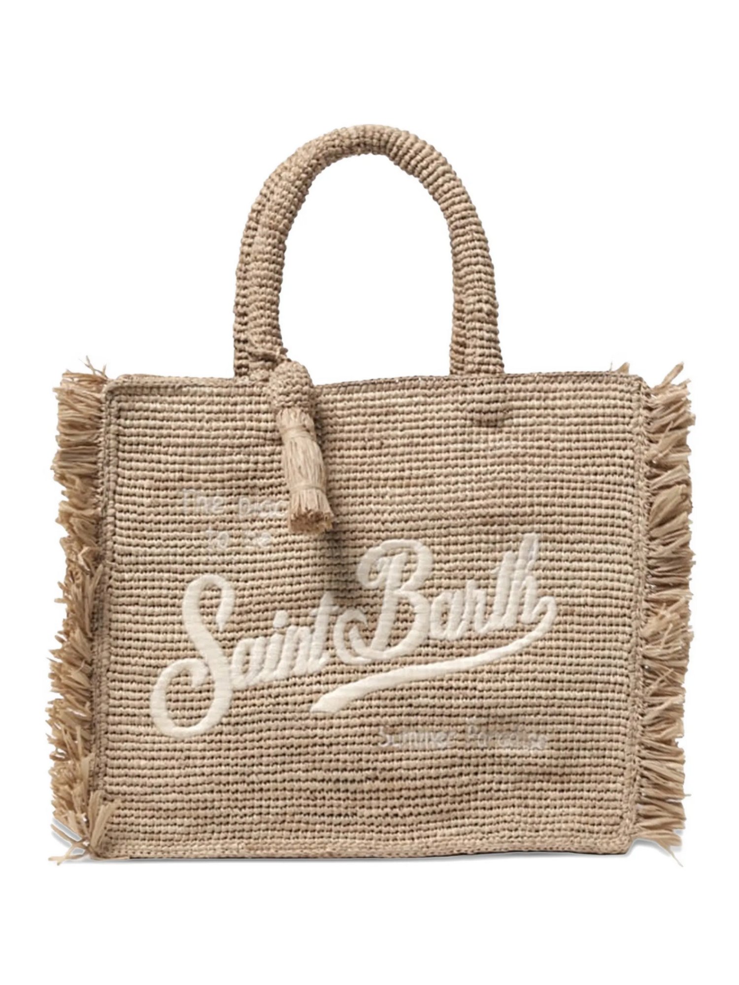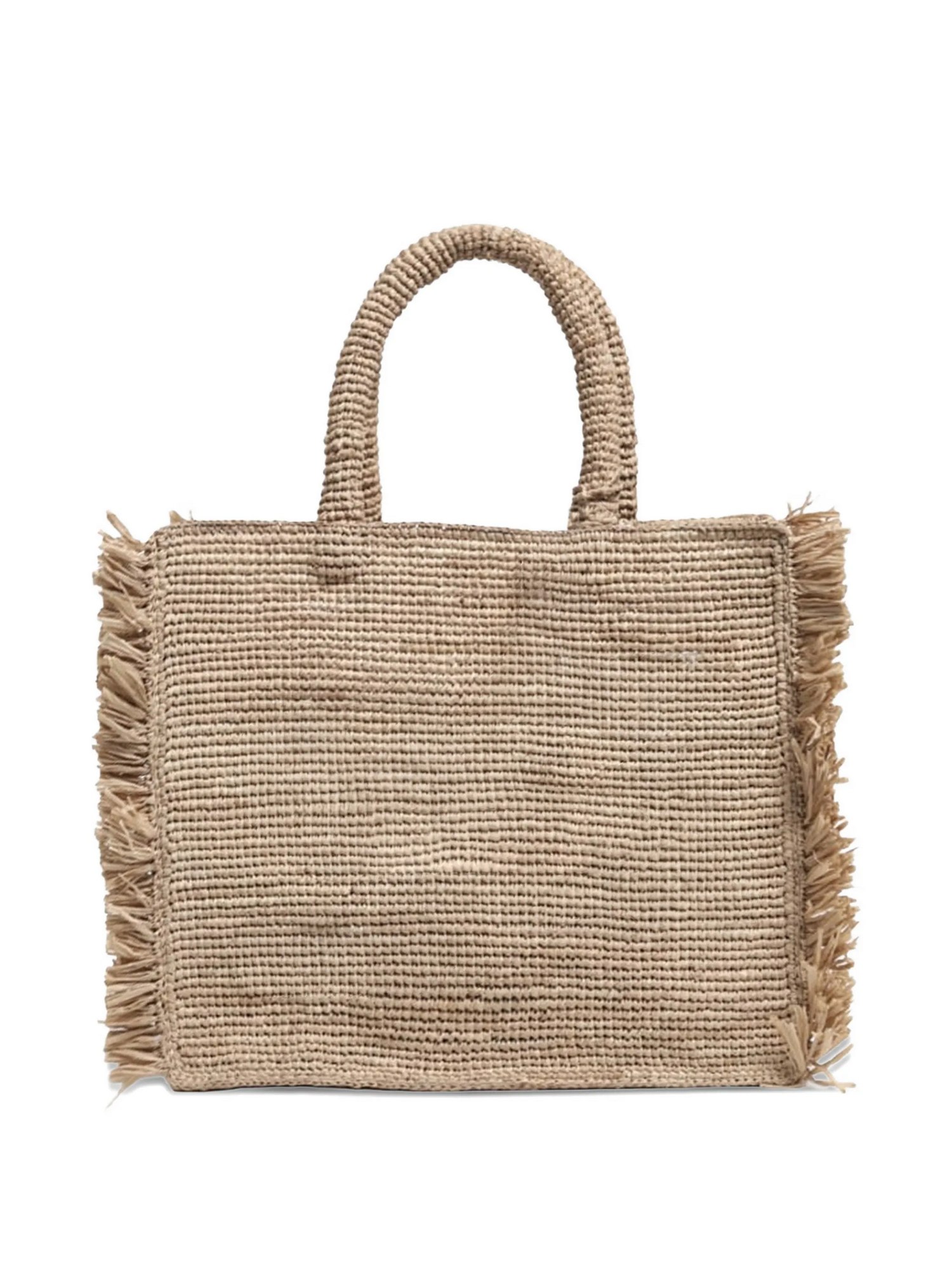 Borsa in rafia con due manici on top, nappa in rafia e logo ricamato.