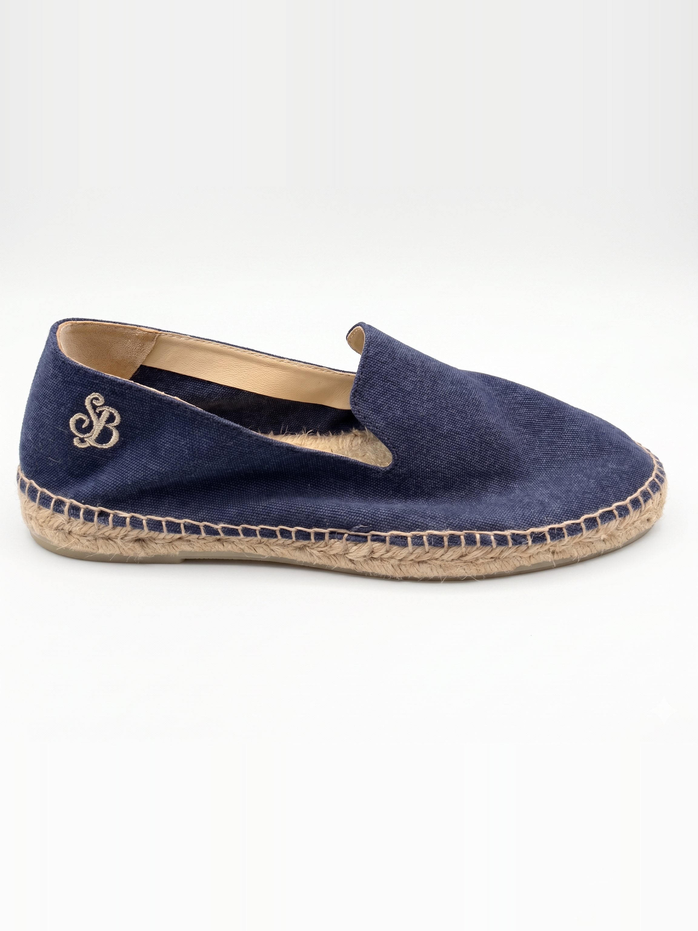 Espadrillas slip-on con suola in corda intrecciata, stampa a righe e logo ricamato.