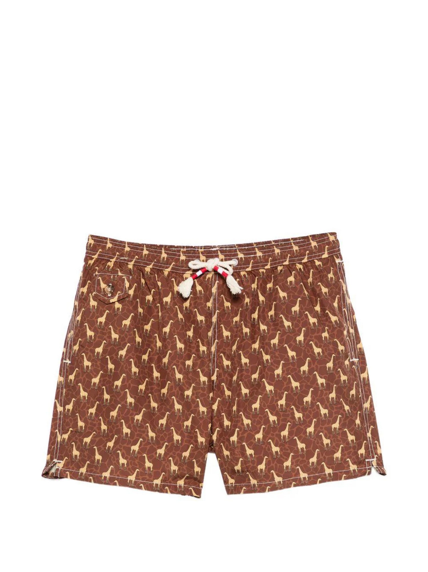 Costume da bagno con coulisse e vita elasticizzata, tasca posteriore a filetto e dettaglio con occhielli.