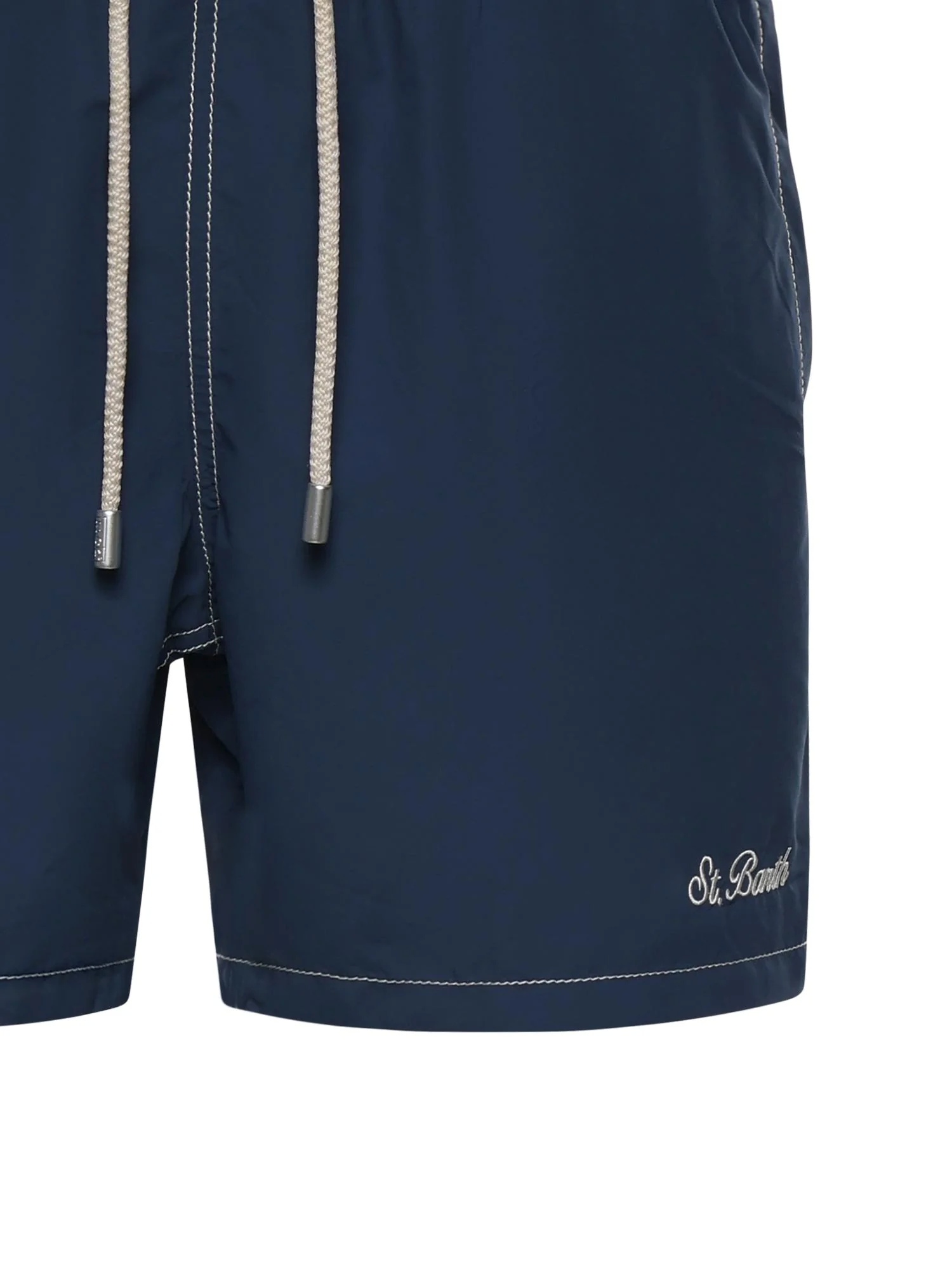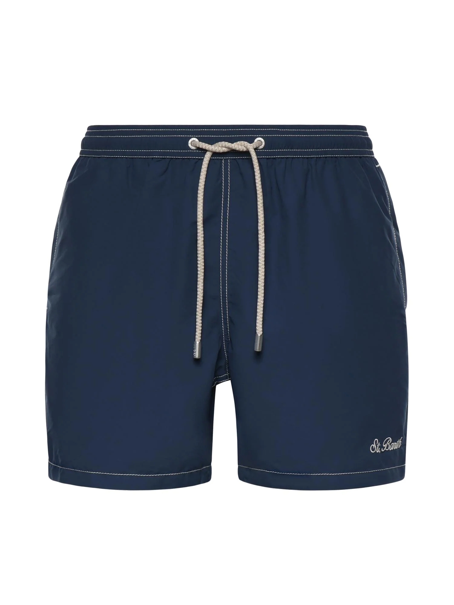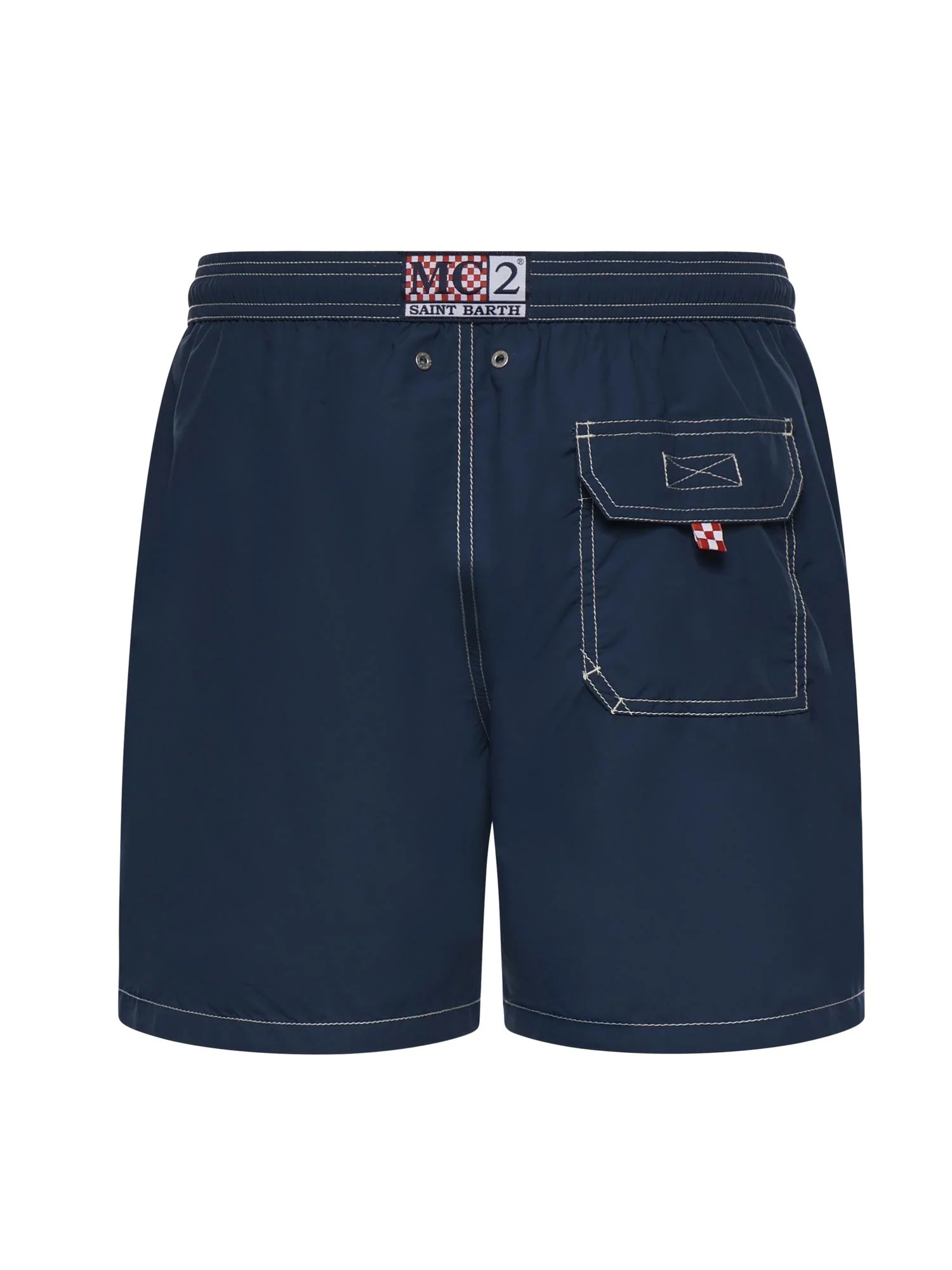 Costume da mare con vita elasticizzata comoda, cordino regolabile con terminali brandizzati, fodera interna in rete, tasche laterali con cuciture francesi e tasca posteriore con chiusura in velcro.