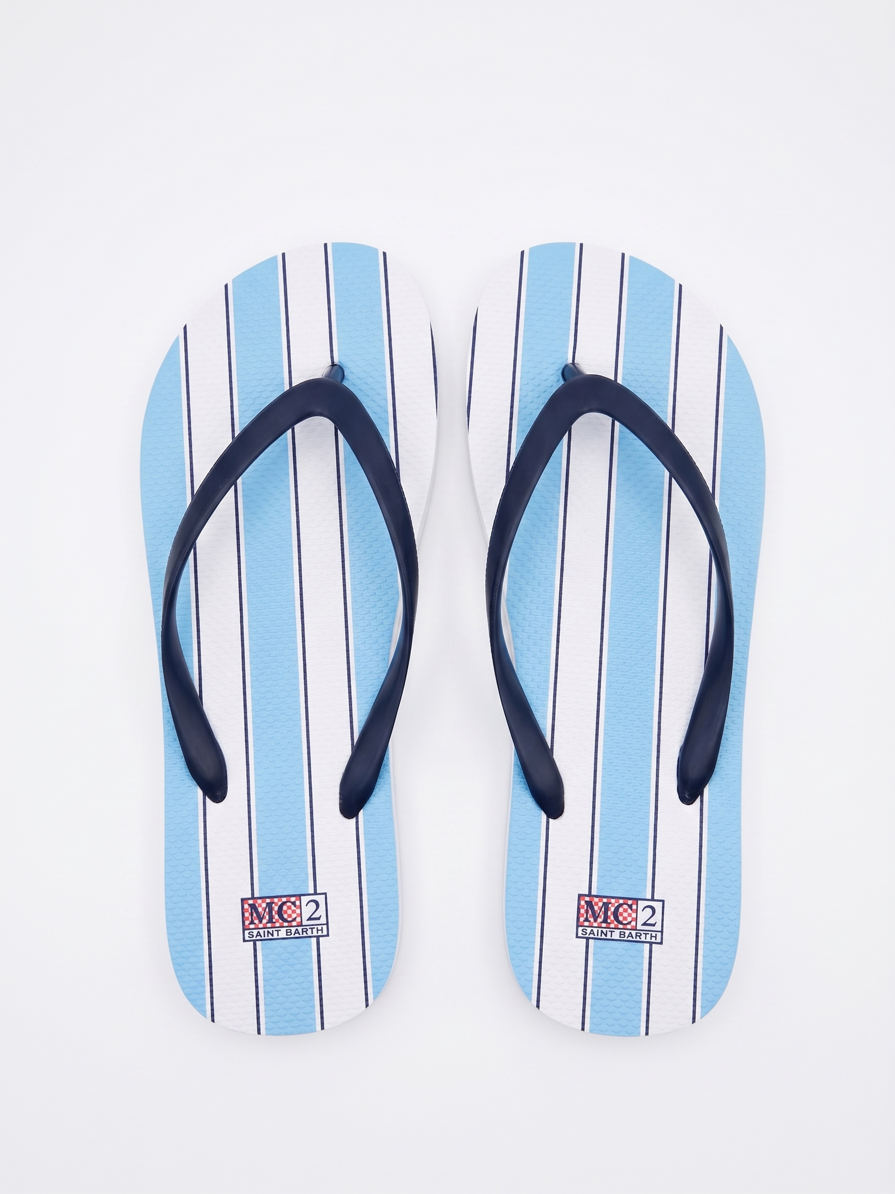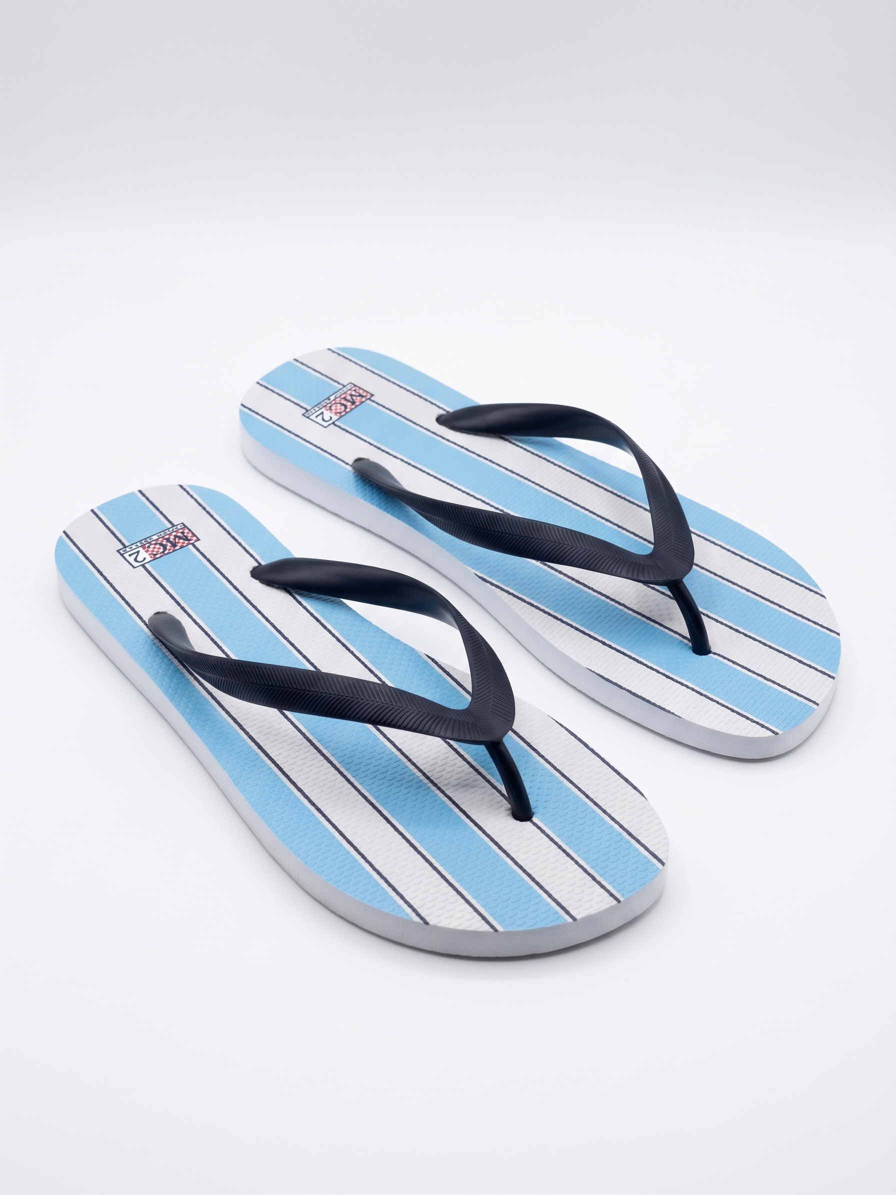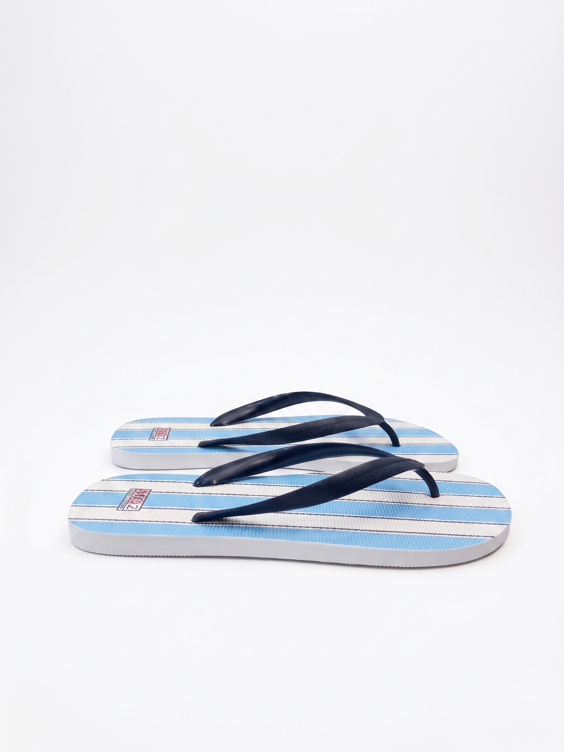 Infradito con suola in gomma espansa, fascette in gomma e plantare zigrinato.