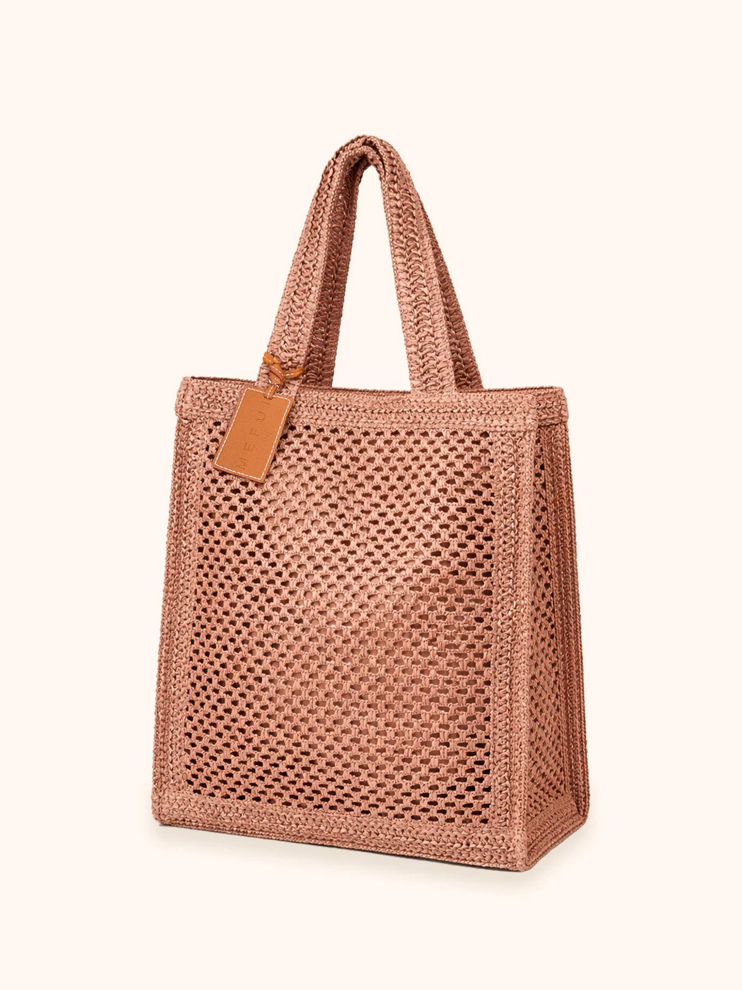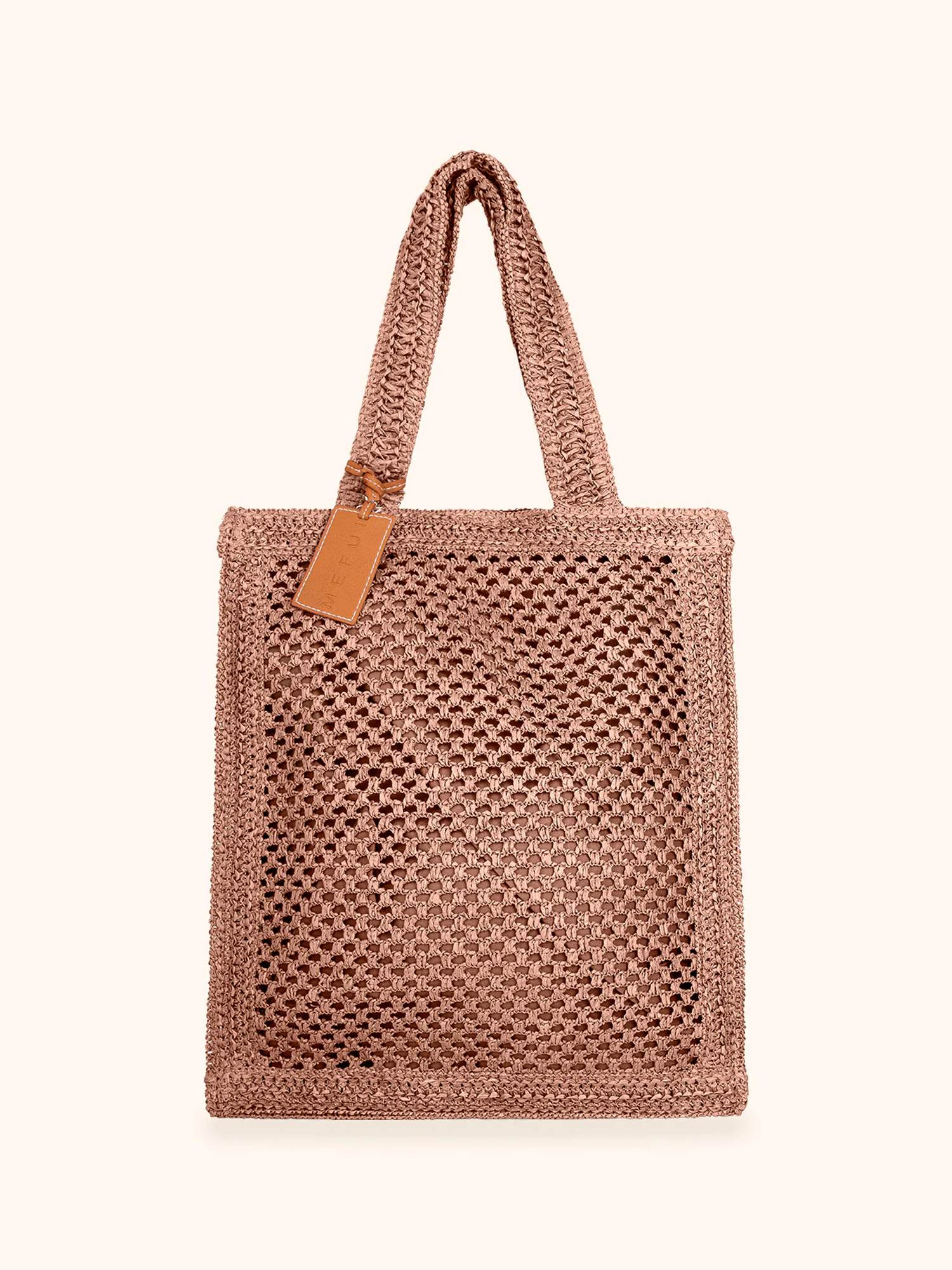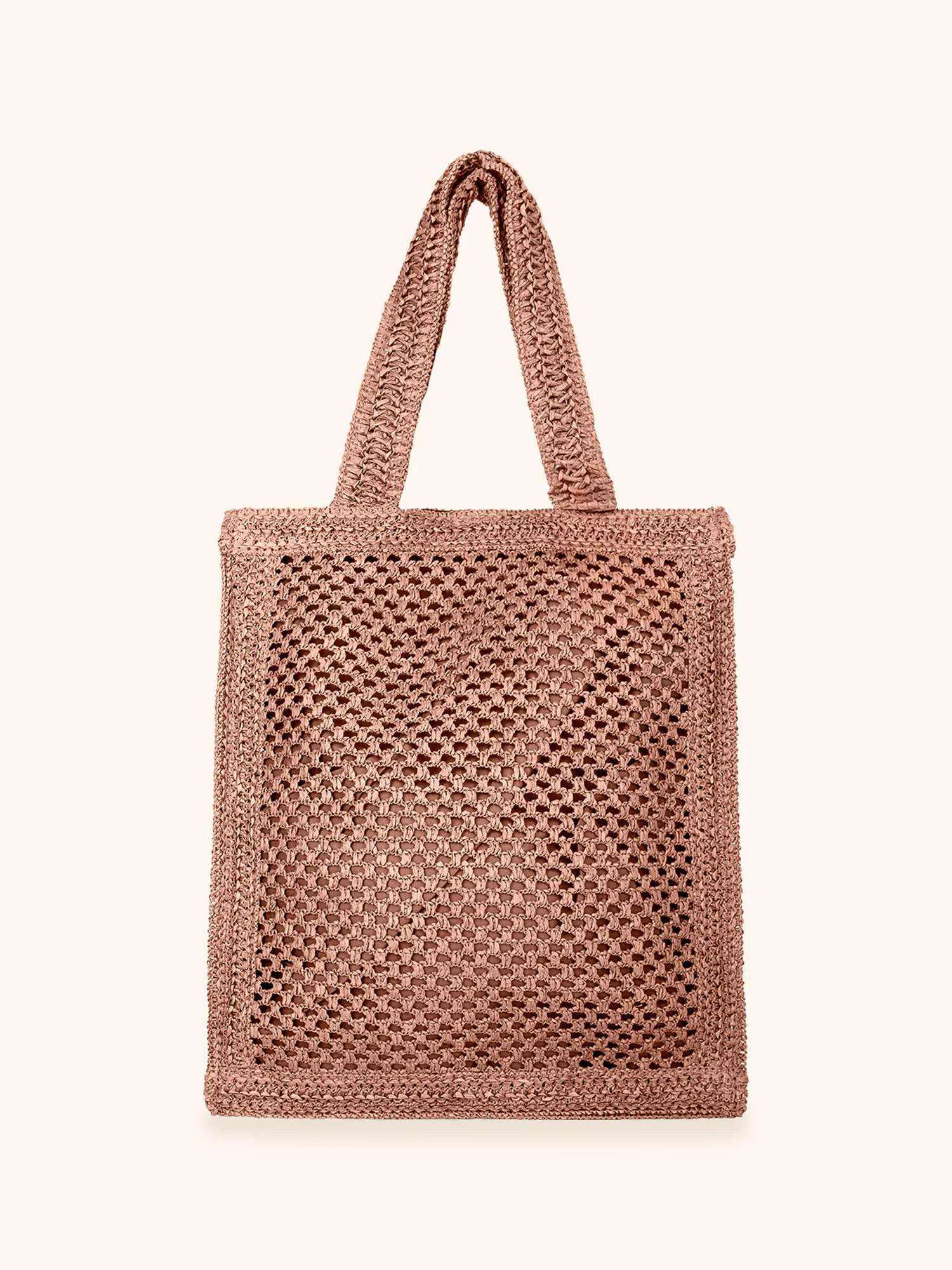Borsa in rafia con chiusura con bottone e fodera interna.