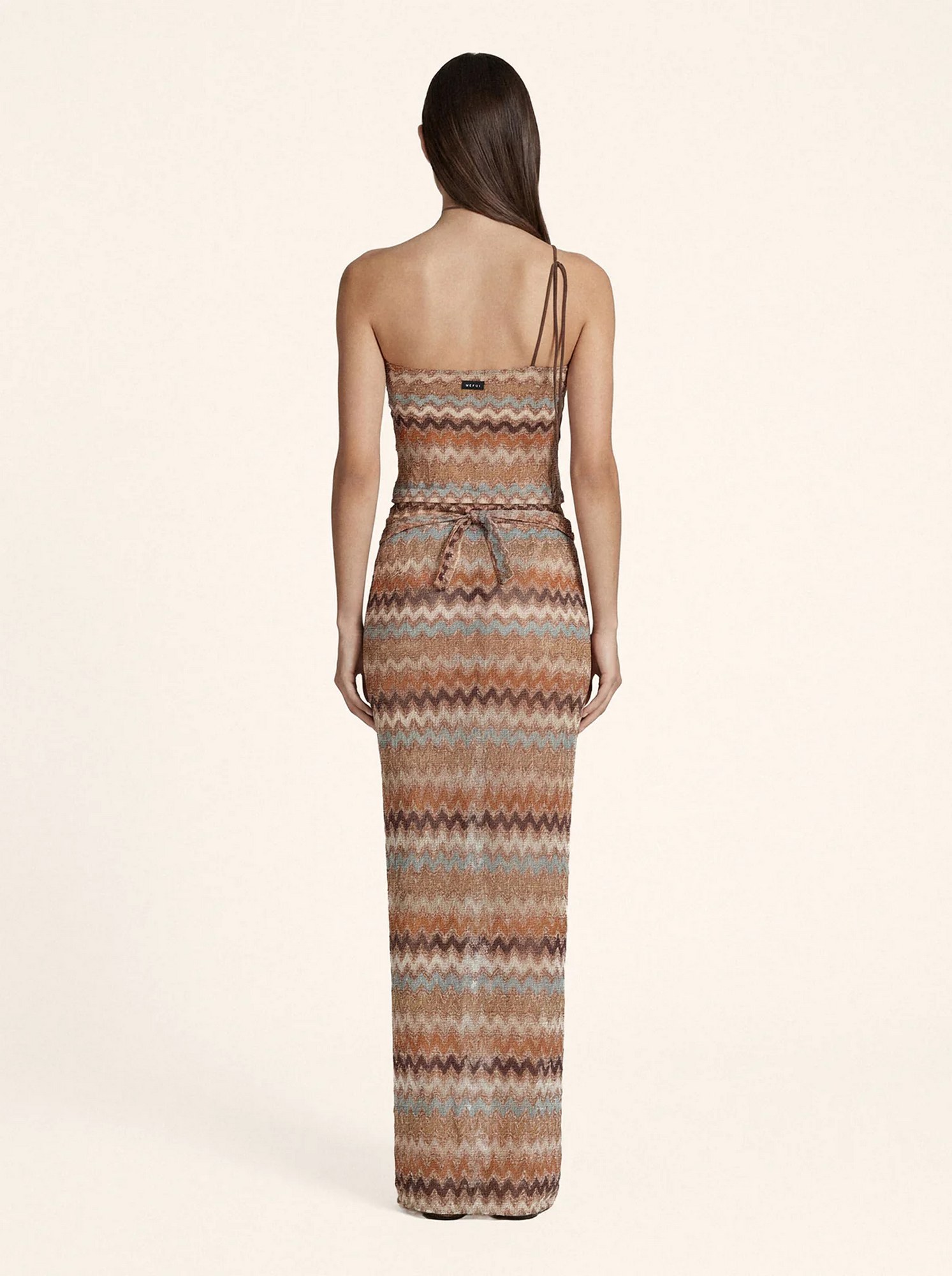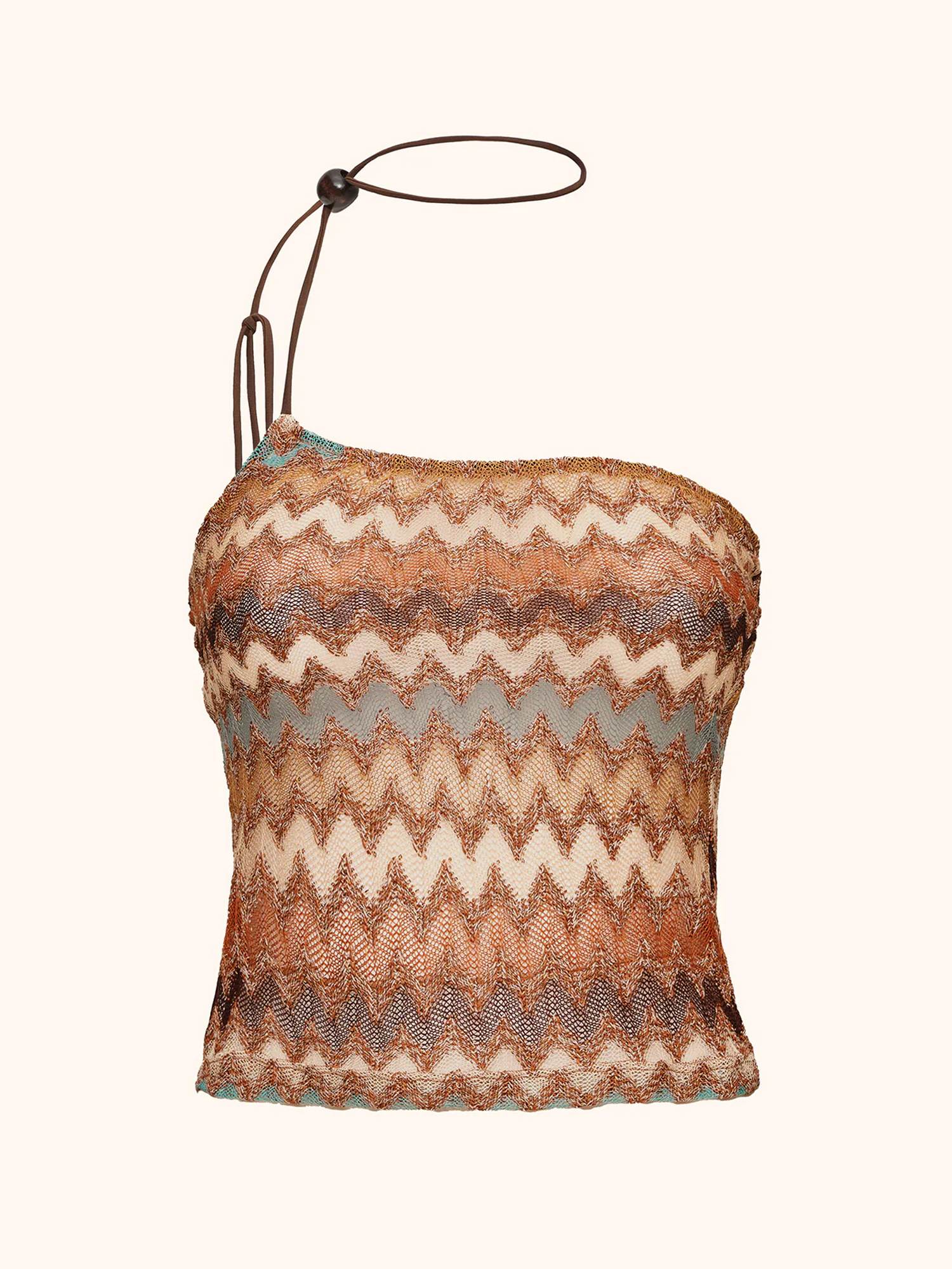 Canotta monospalla in crochet con spallina regolabile e accessorio su scollo.