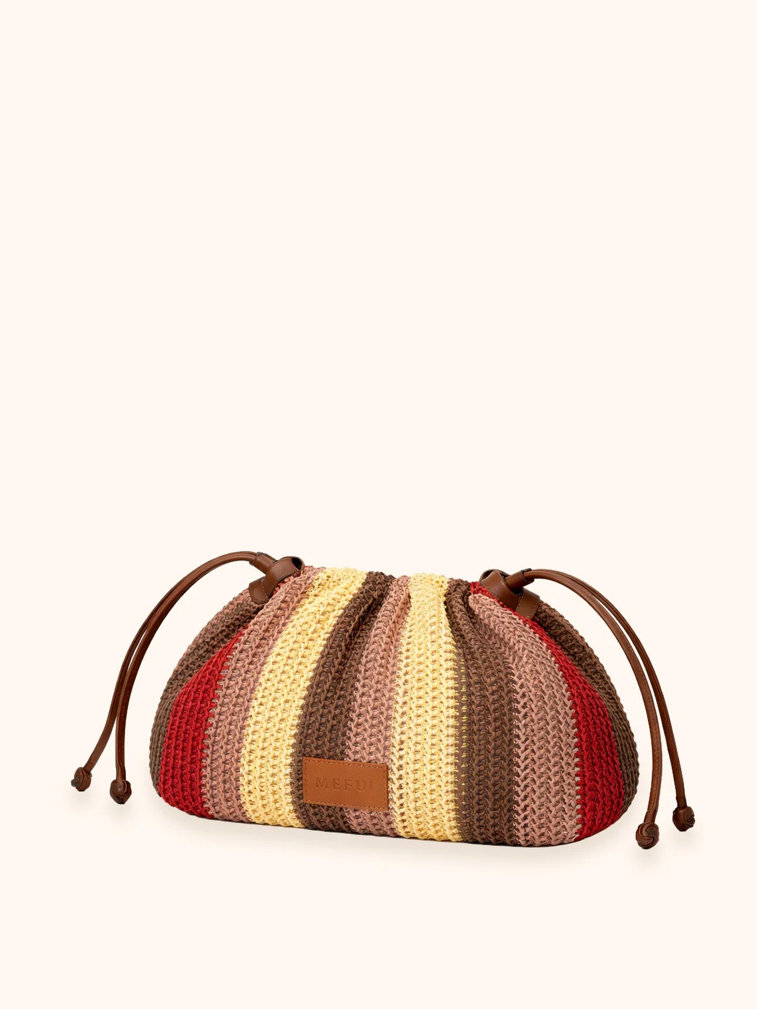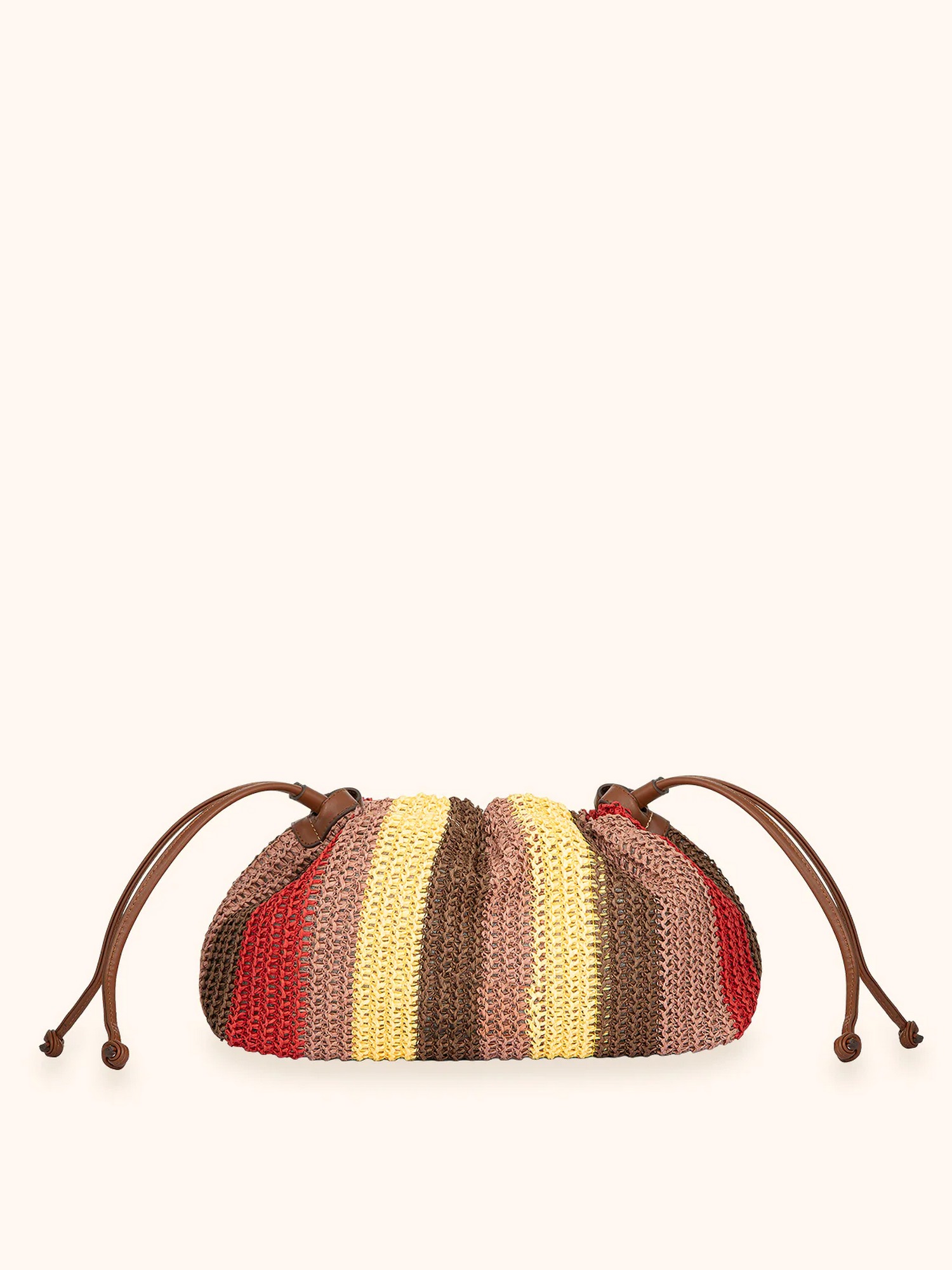 Maxi Pochette in rafia con chiusura con coulisse e fodera interna.