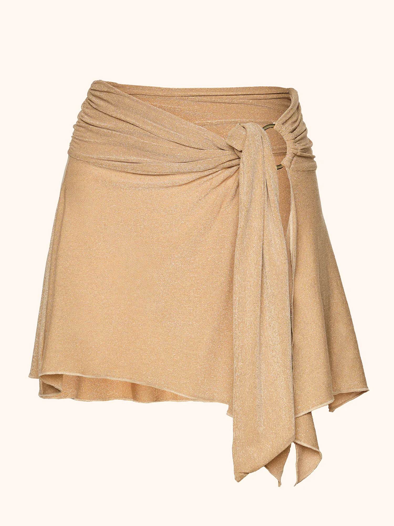 Pareo corto con lurex e chiusura ad anello in vita.