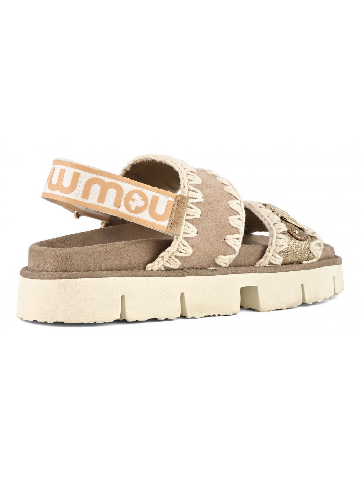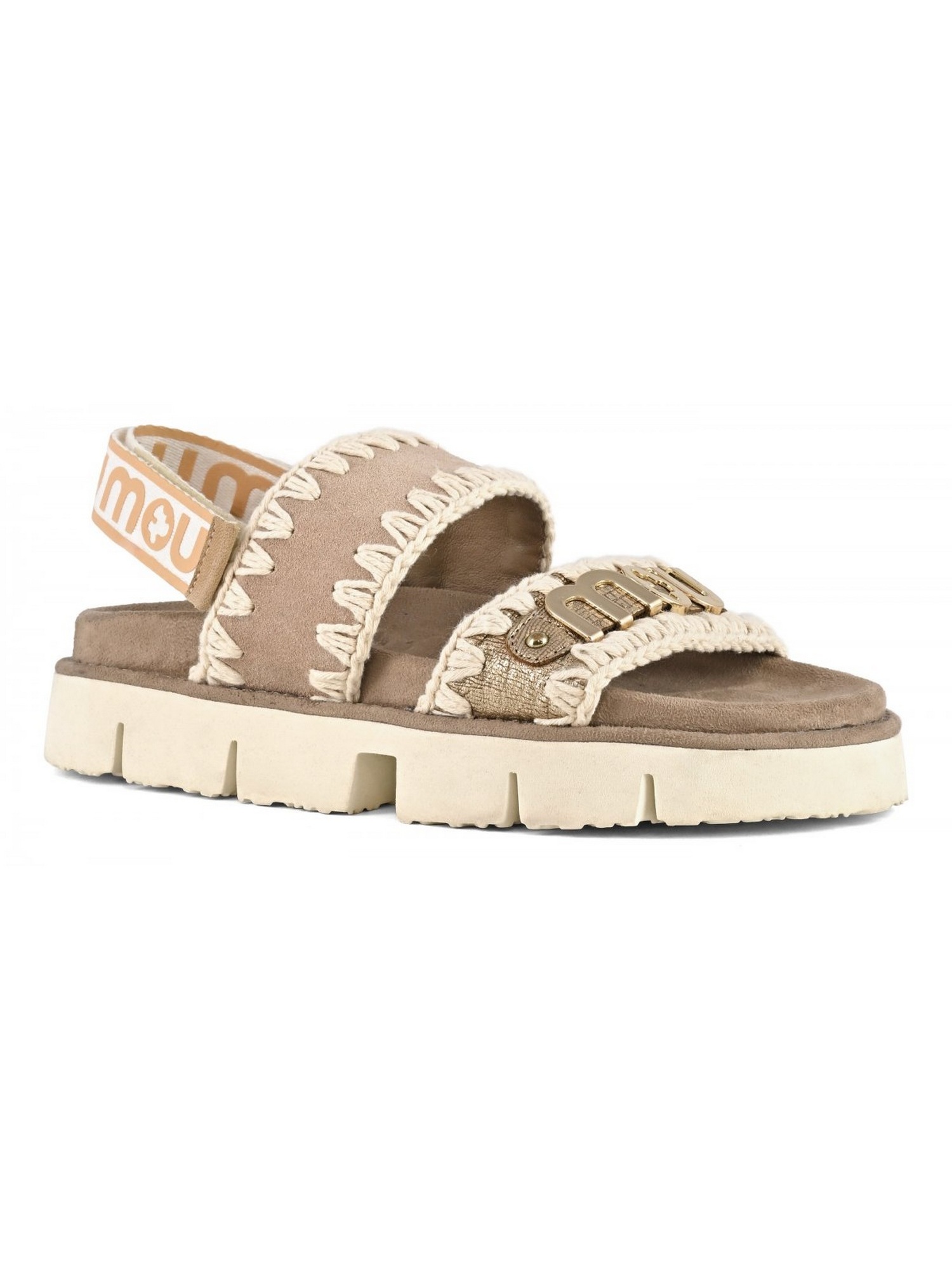 Sandalo in pelle con cinturino al tallone, cuciture all'uncinetto distintive, suola in EVA e plantare imbottito in microsuede.