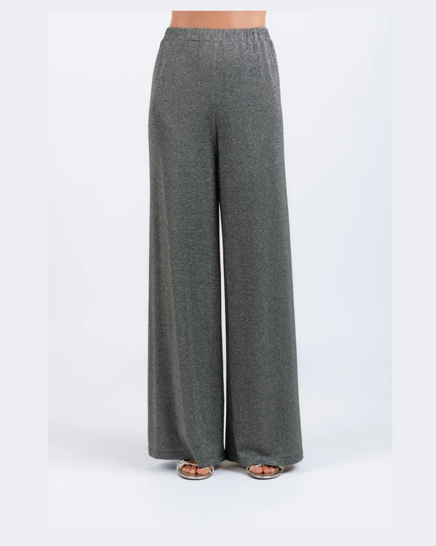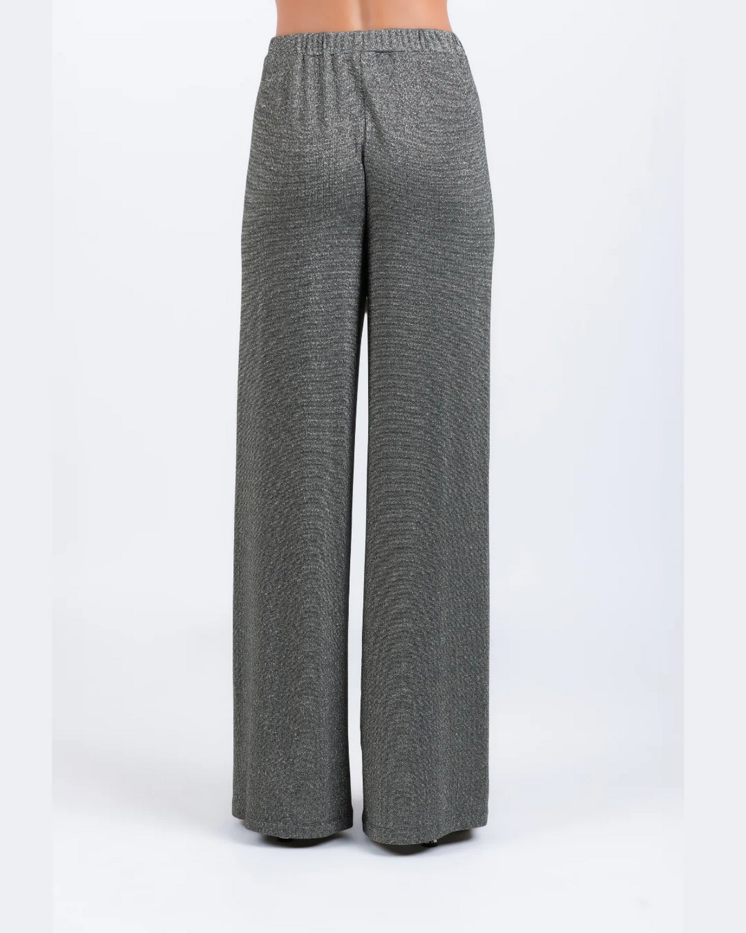 Pantalone in maglina lurex con elastico in vita e fit regular.