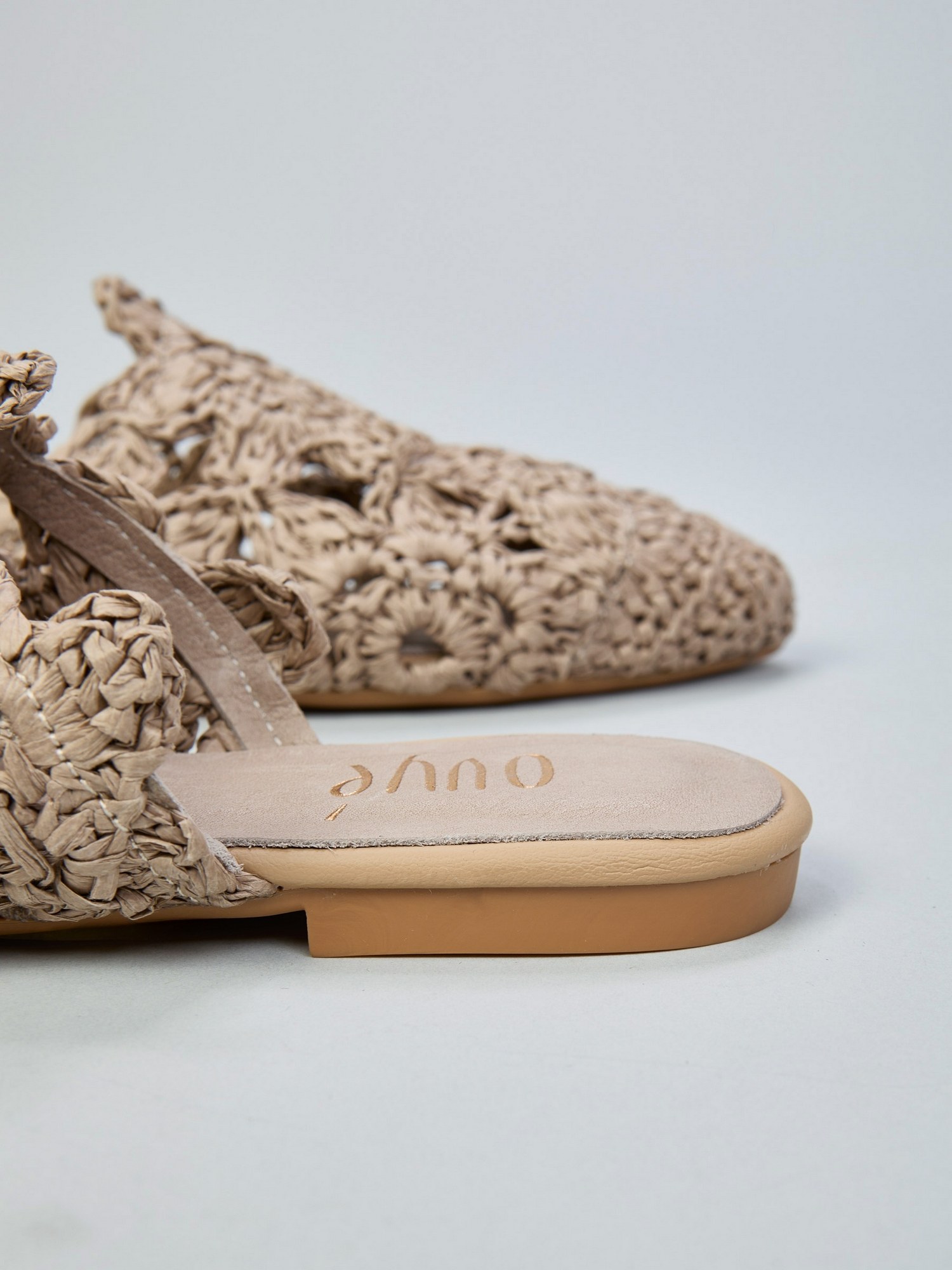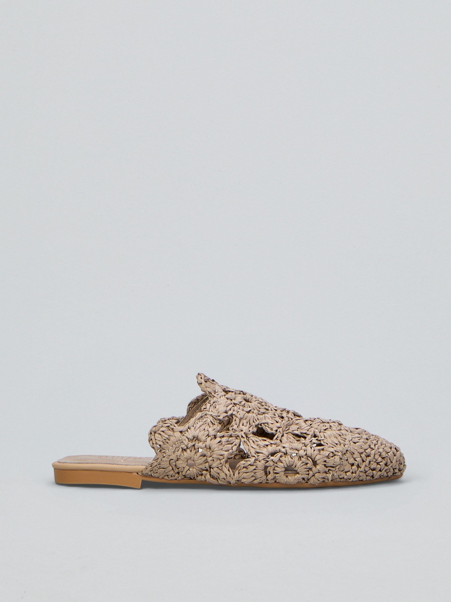 Mules in in raffia, tacco 1 cm.