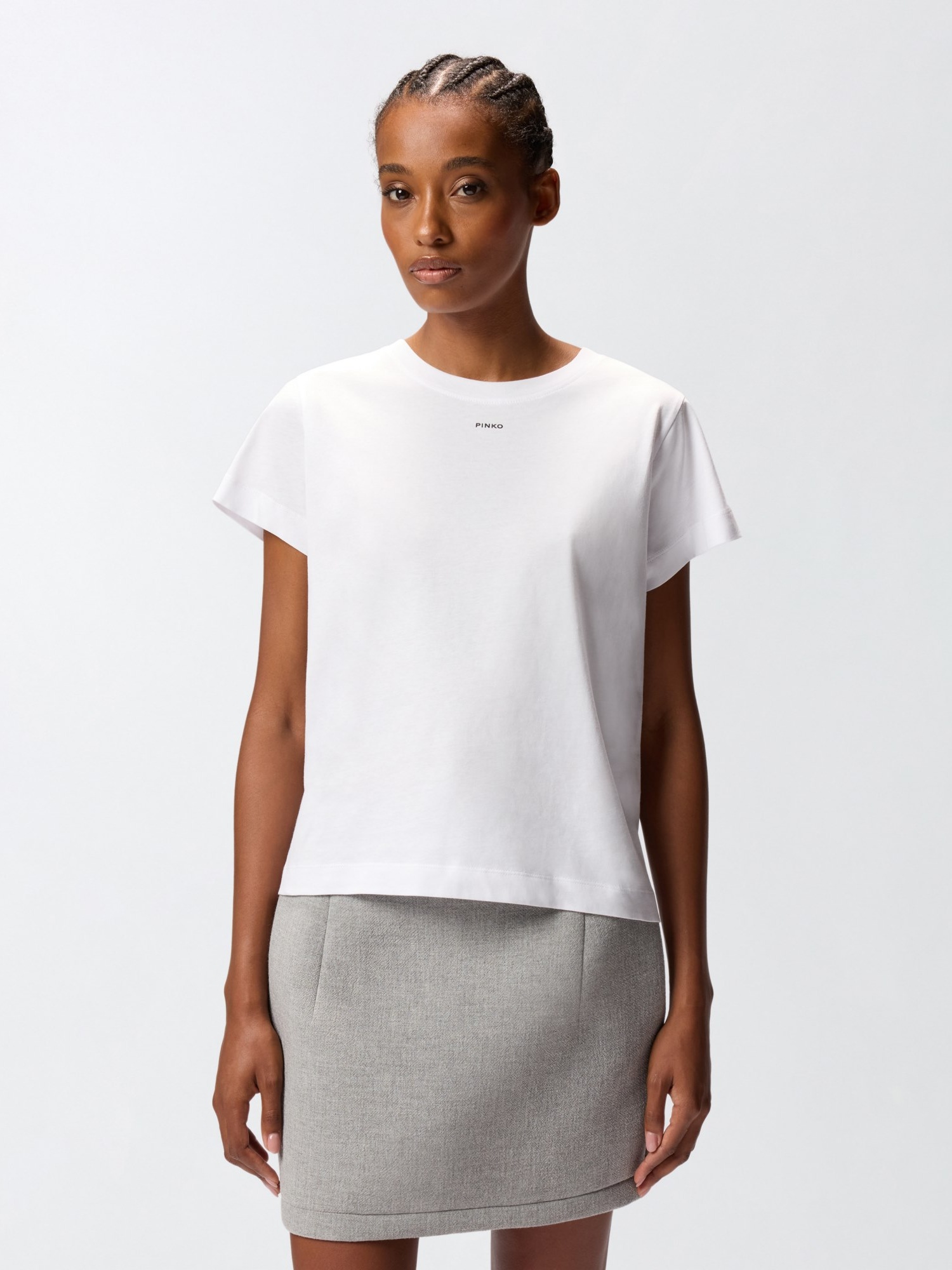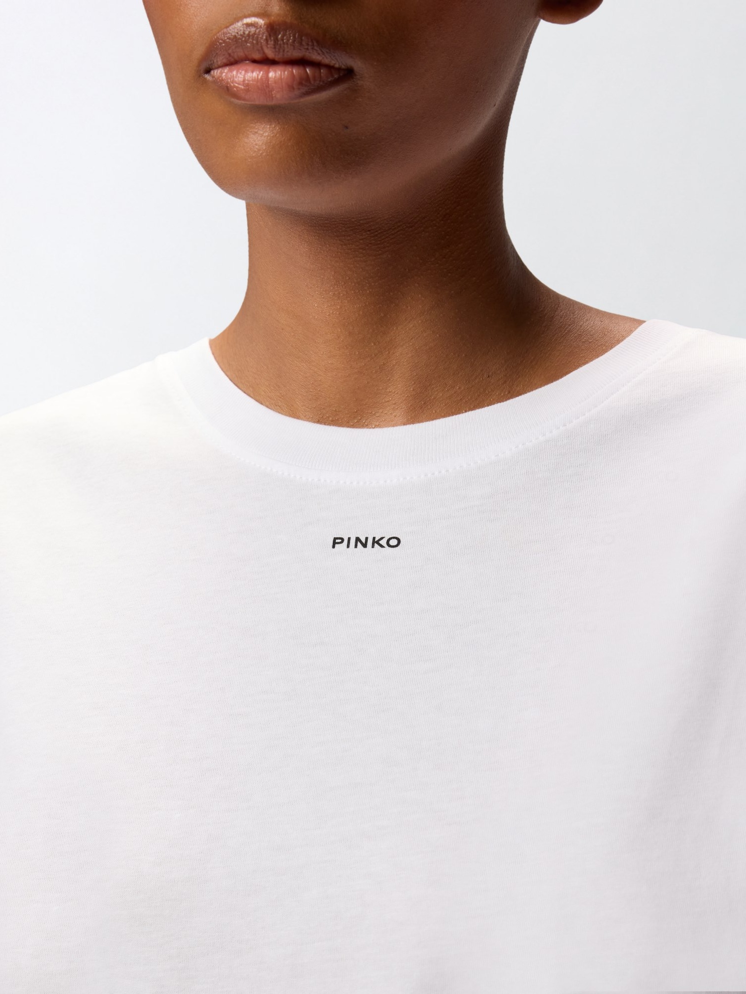 T-shirt a maniche corte slim in jersey di cotone con piccolo logo lettering PINKO stampato davanti.