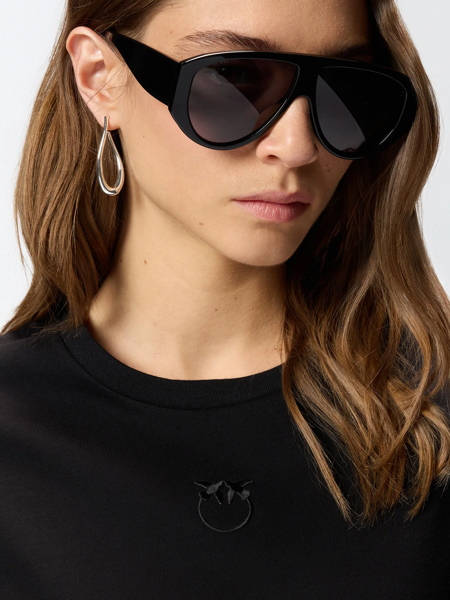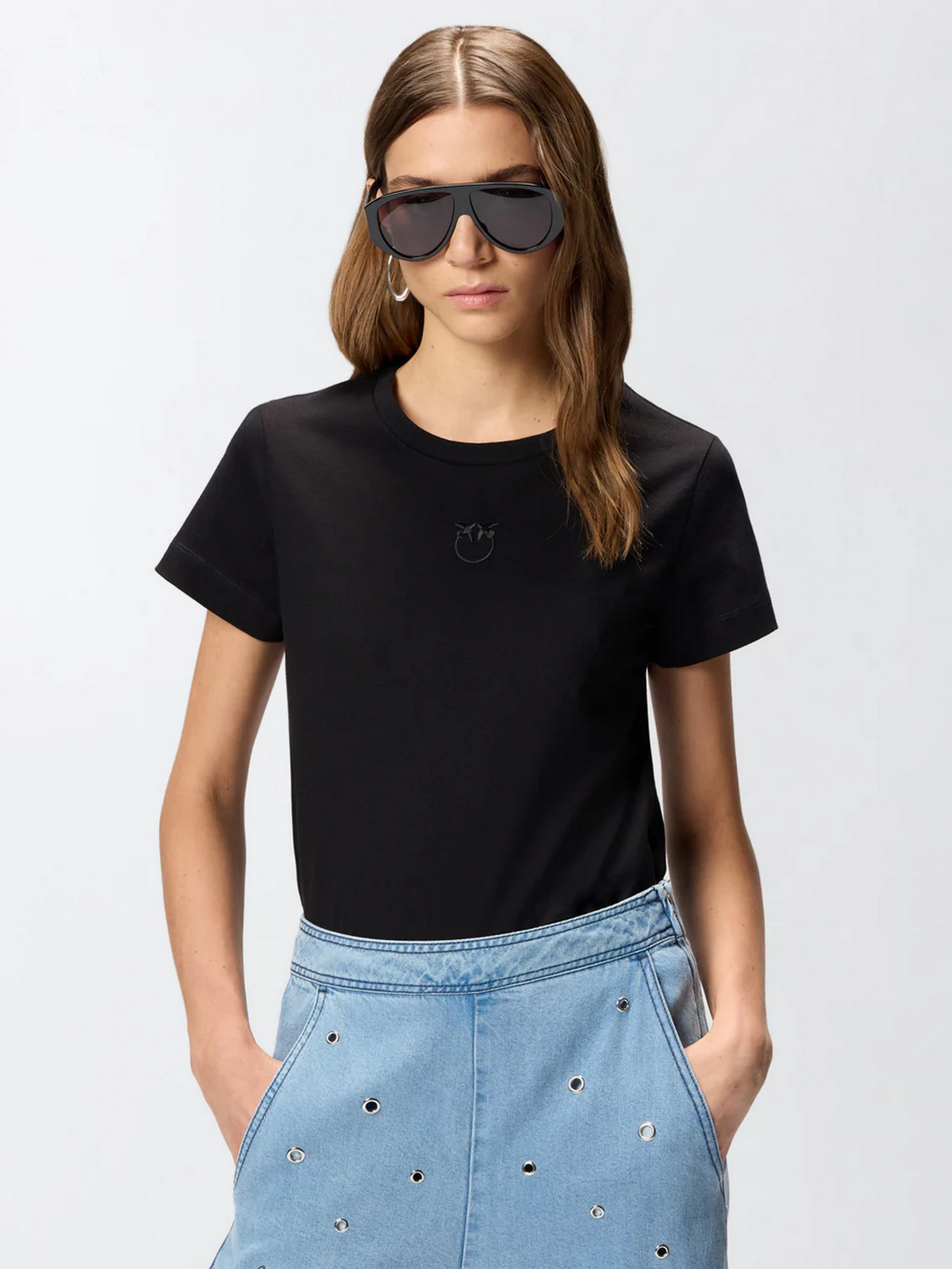 T-shirt girocollo in jersey di cotone con logo con uccellini ricamato in tono sul petto.