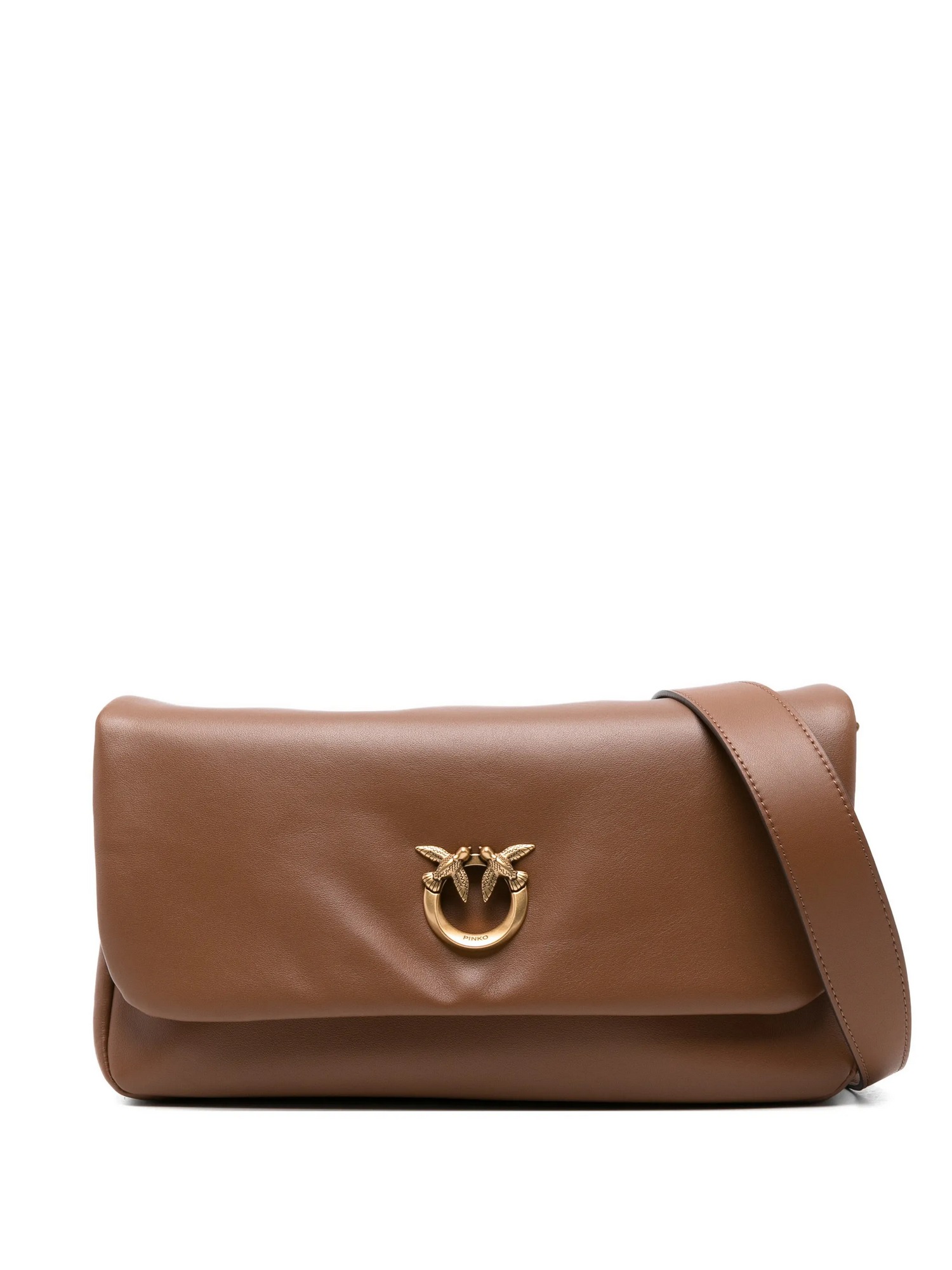 Borsa a spalla in pelle con tracolla regolabile, logo frontale e tasca interna con zip.