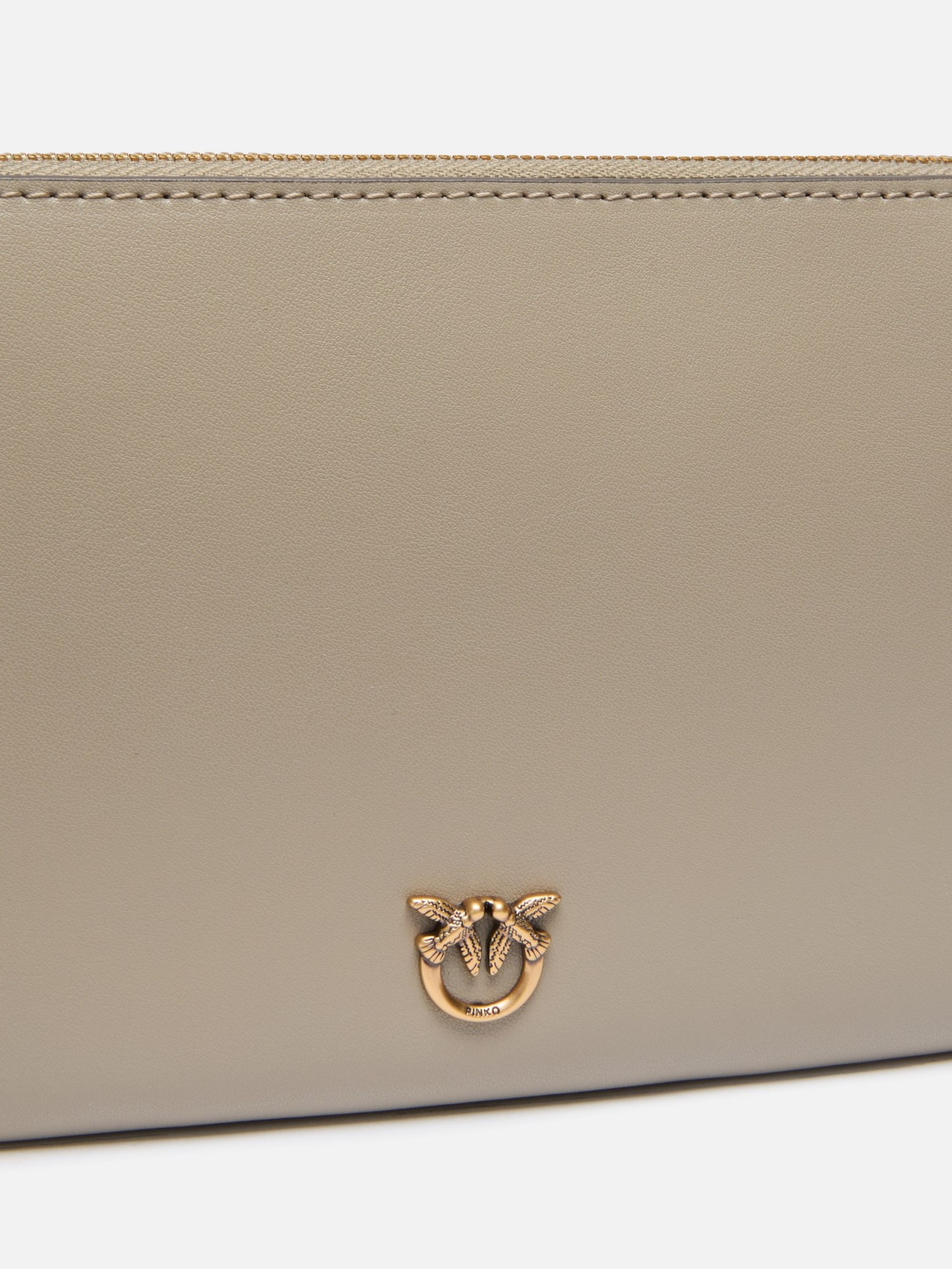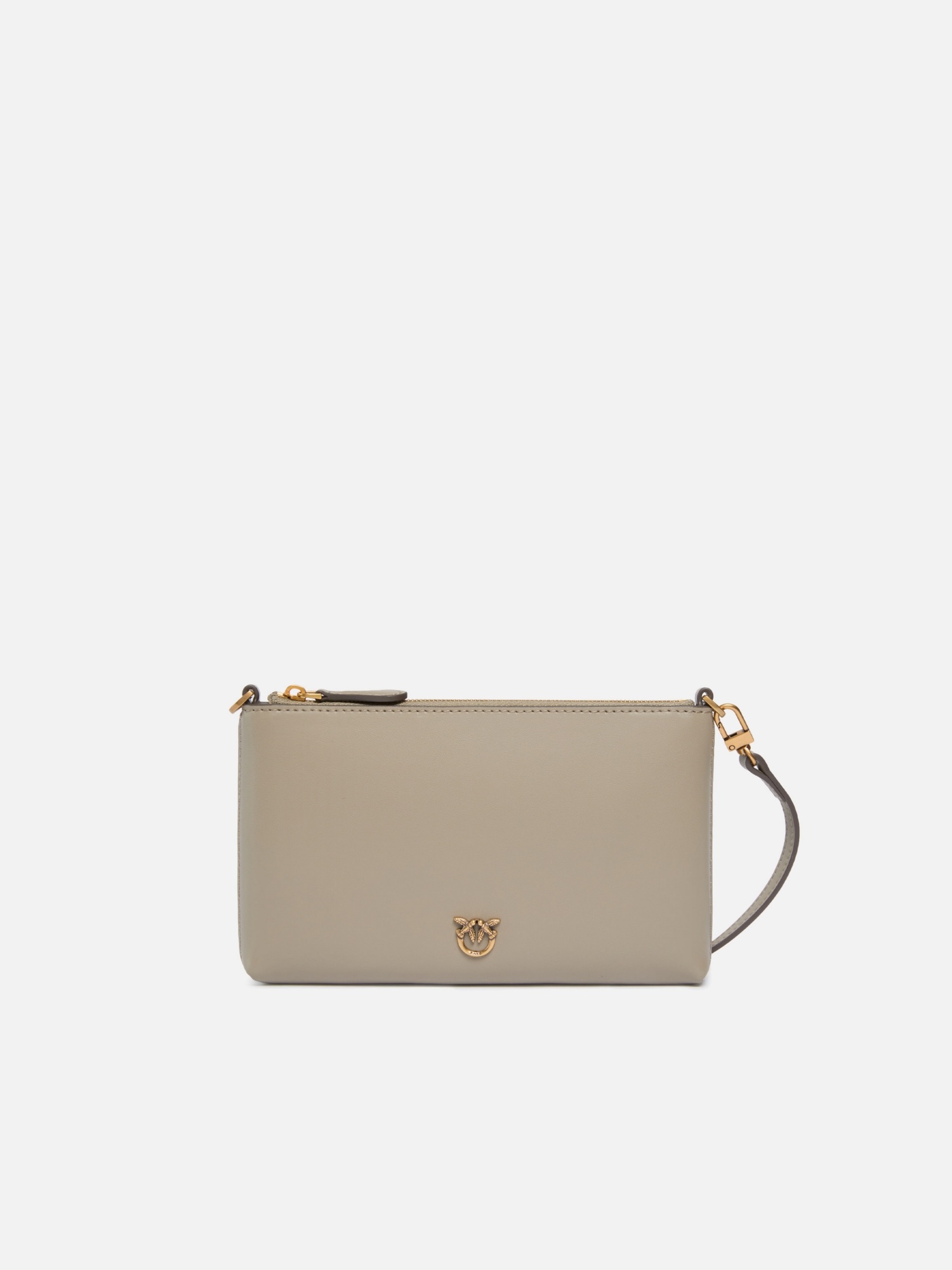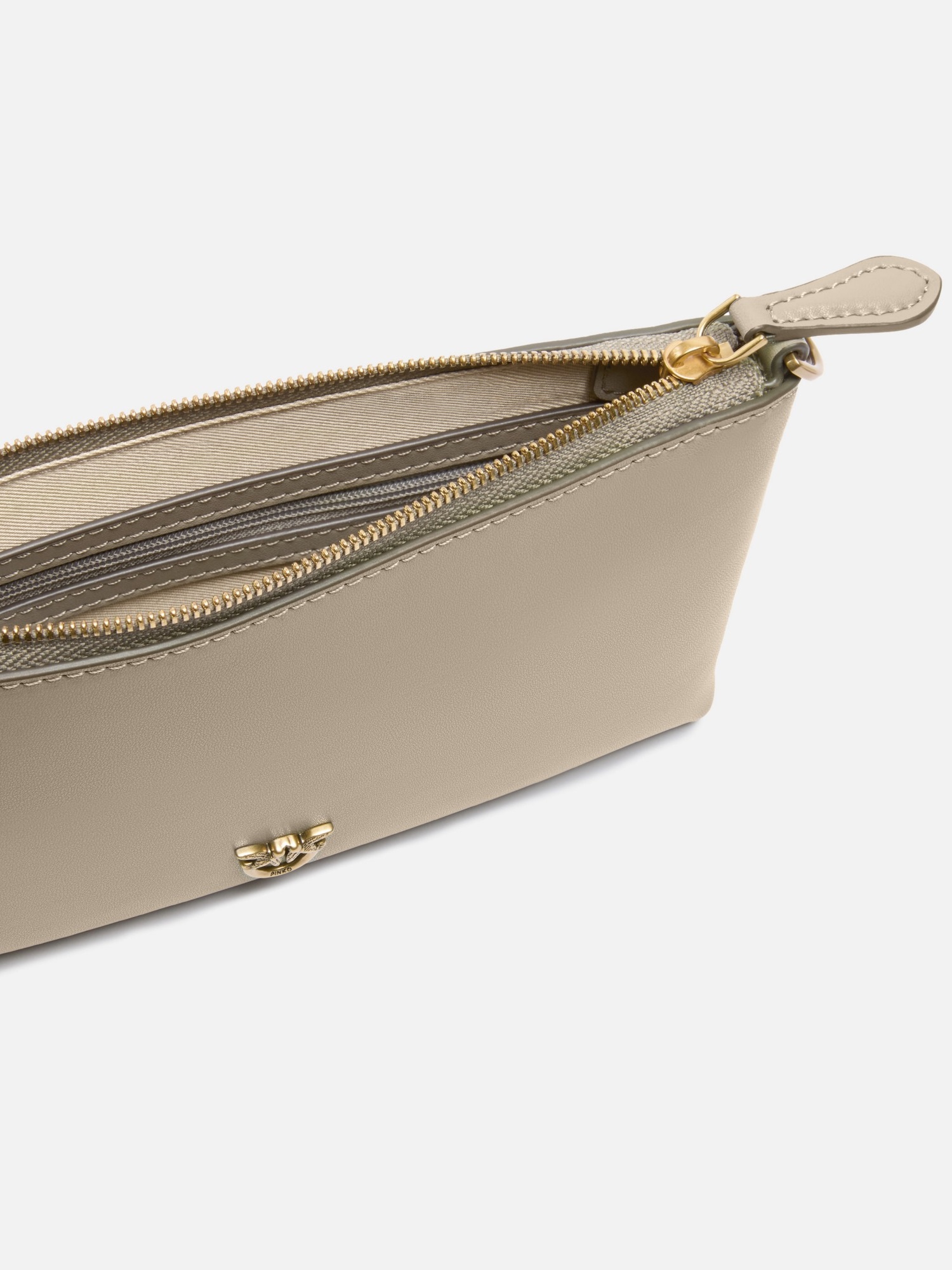 Pochette piatta in pelle mano seta e dotata di fodera in cotone e chiusura con zip. La borsetta risulta estremamente versatile e pratica grazie alla tracolla regolabile e rimovibile che offre una doppia opzione di portabilità: a mano oppure a tracolla.