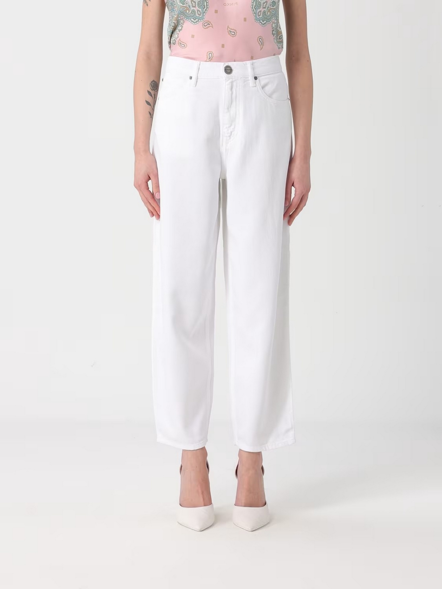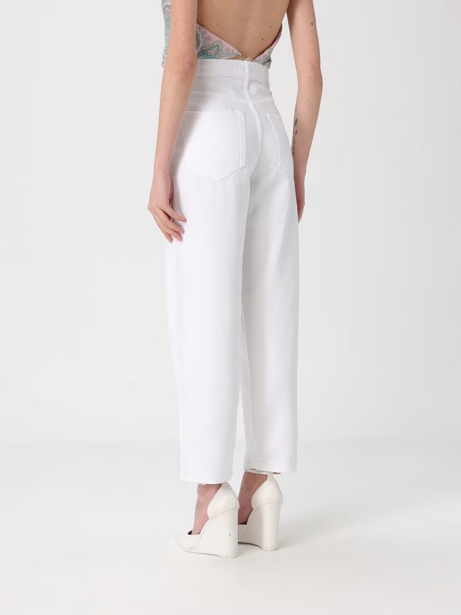 Jeans 5 tasche a vita media con orlo dritto, logo applicato e chiusura con 1 bottone.