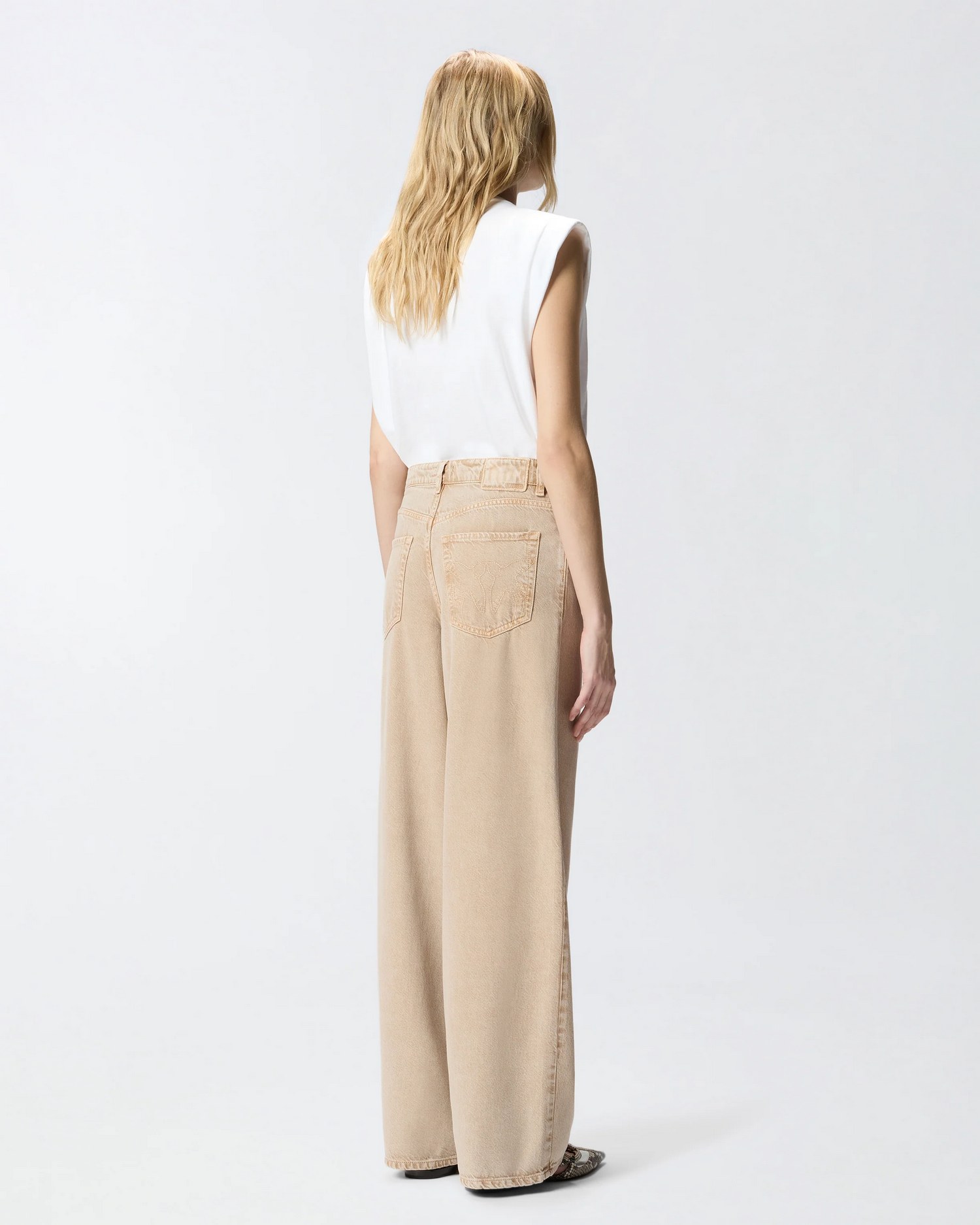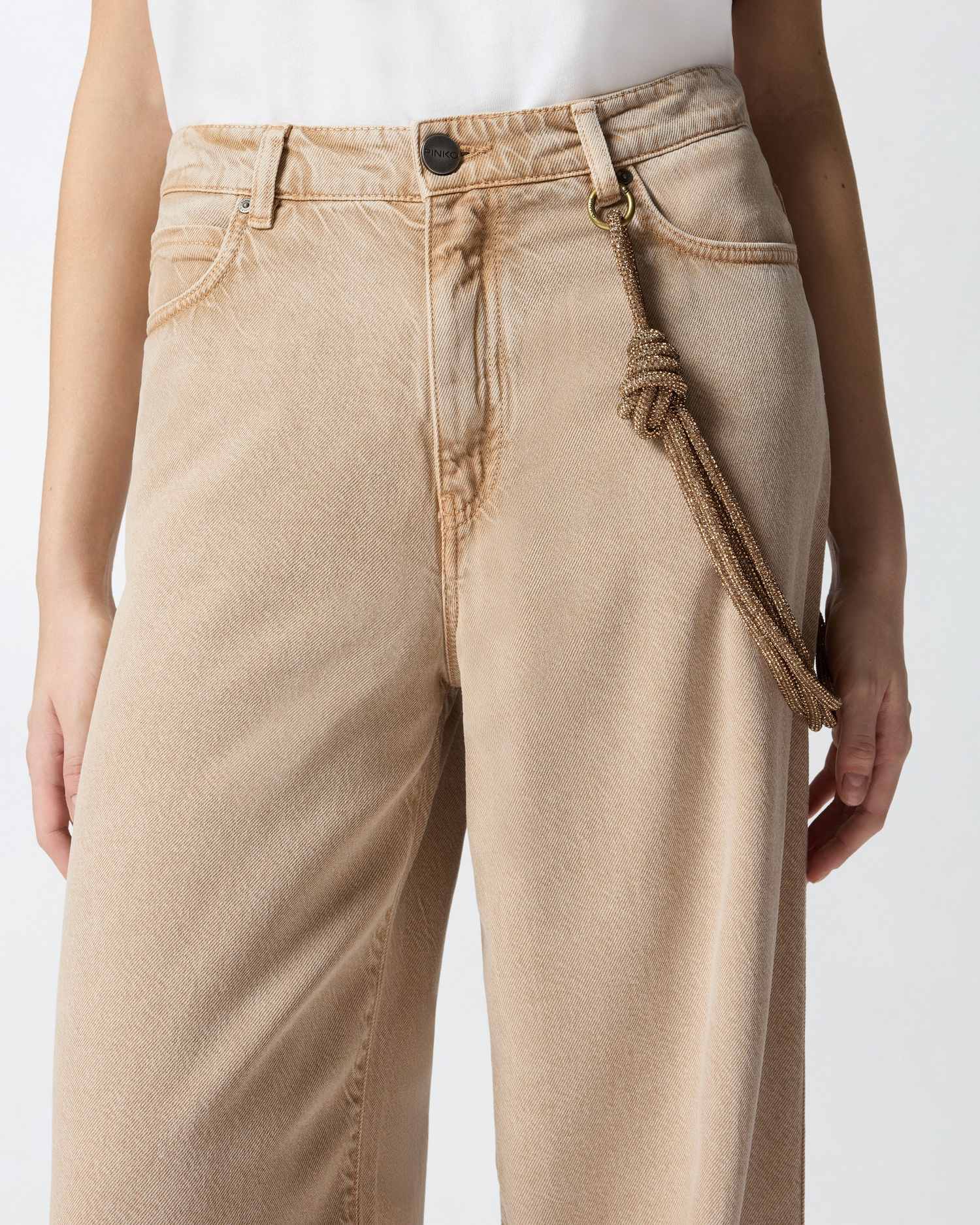 Jeans cinque tasche in bull denim di cotone con corda gioiello rimovibile da agganciare sul passante anteriore e su un piccolo passante in corrispondenza di una tasca sul retro e logo Love Birds ricamato in tono su una delle tasche posteriori.