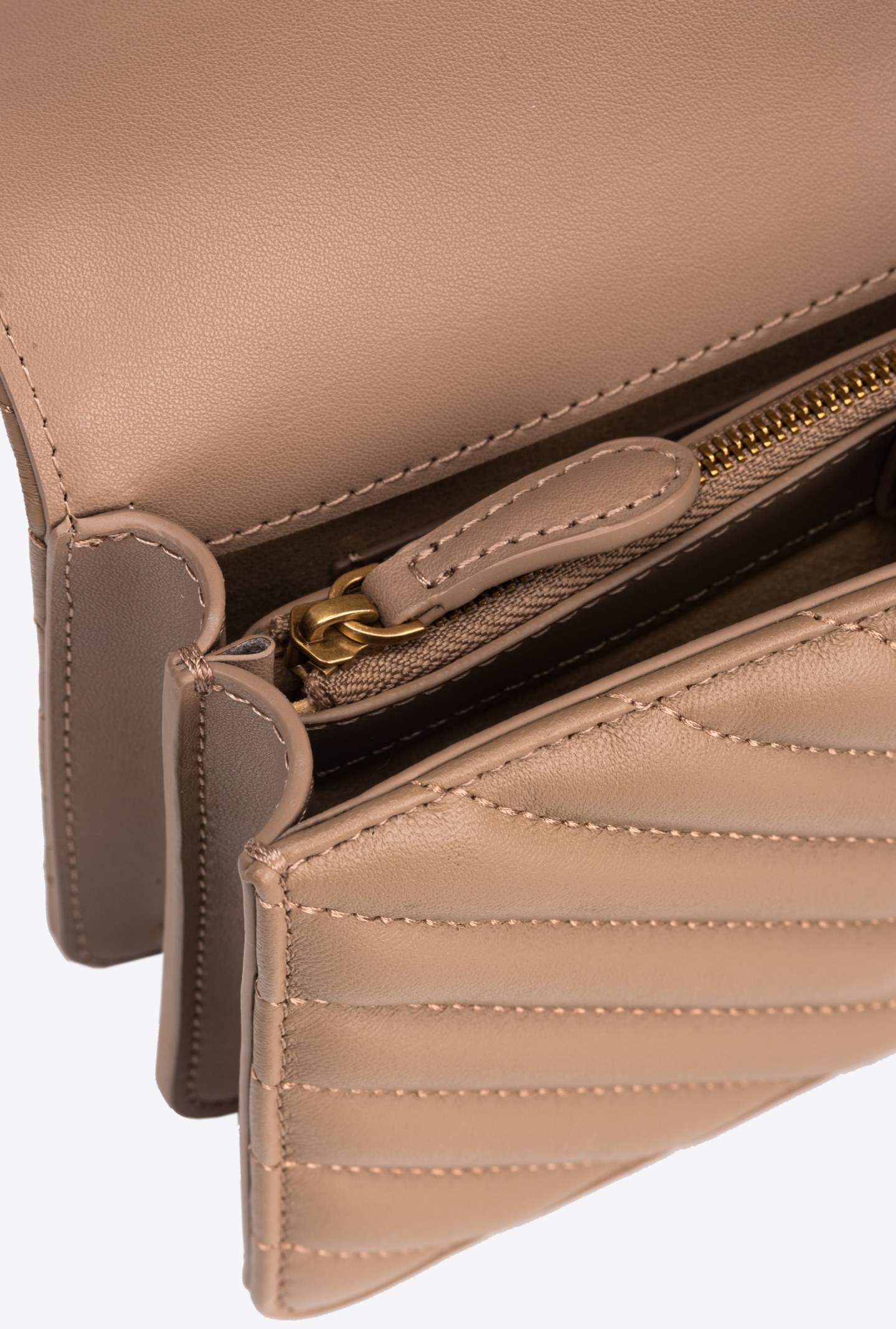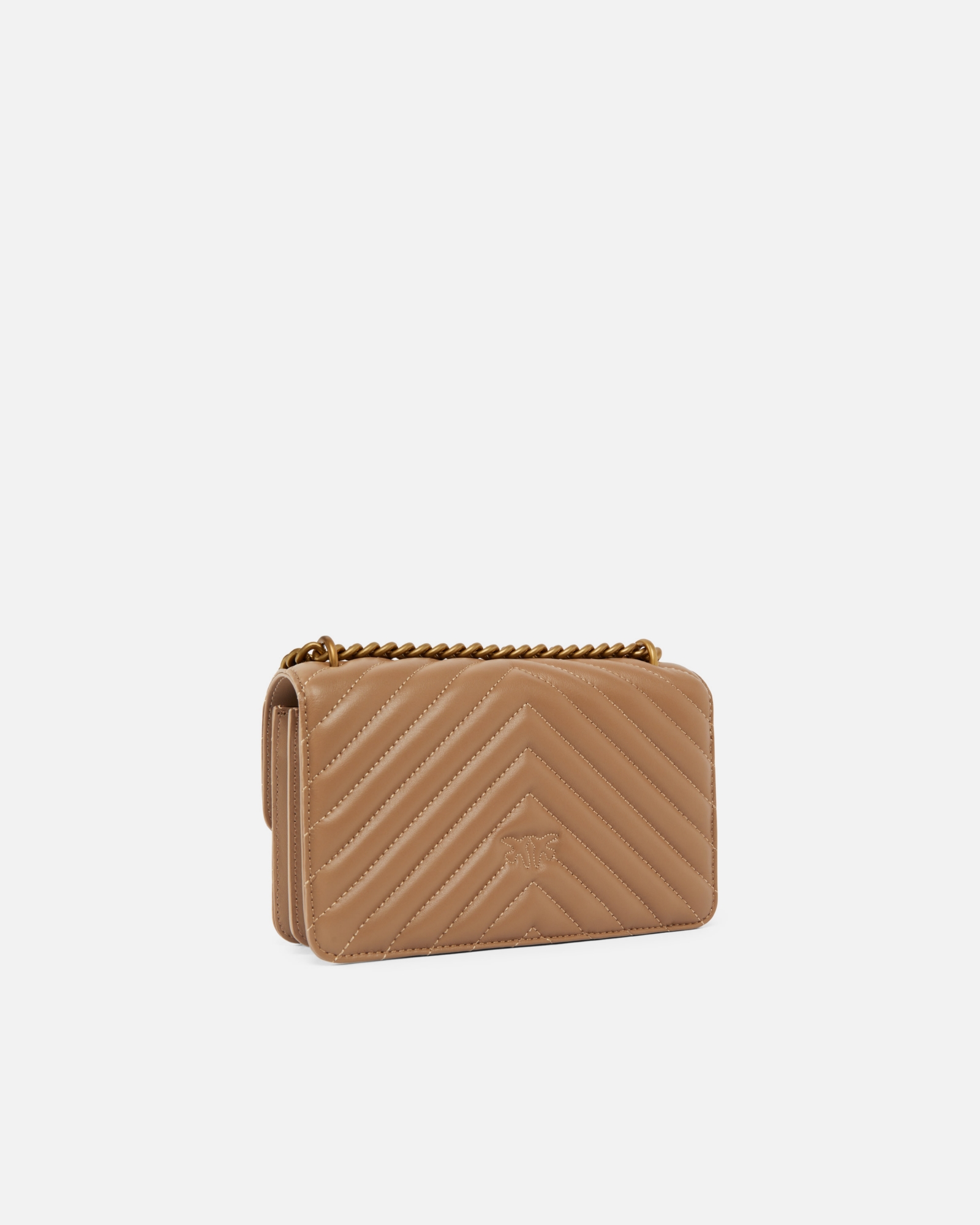 Borsa a tracolla in nappa matelassé con disegno chevron a punta. La borsa è completa di tracolla che combina la classica catena rotonda al pratico spallaccio in pelle regolabile, ed è possibile doppiare la tracolla e indossare la borsa a spalla. La chiusura con patta è completata dalla fibbia in metallo. L'interno è foderato in tessuto effetto scamosciato e comprende tramezza chiusa con zip e pratica tasca a parete in pelle.