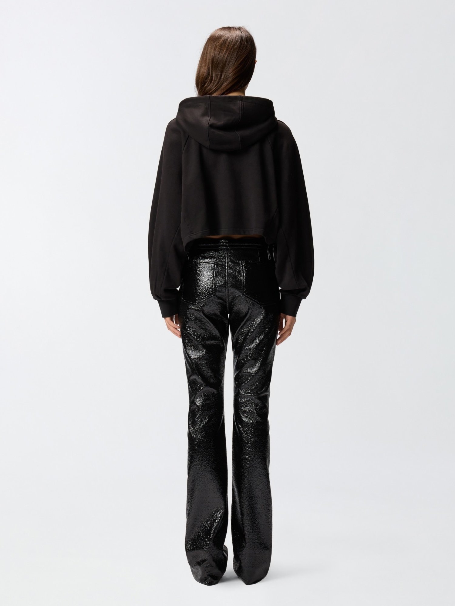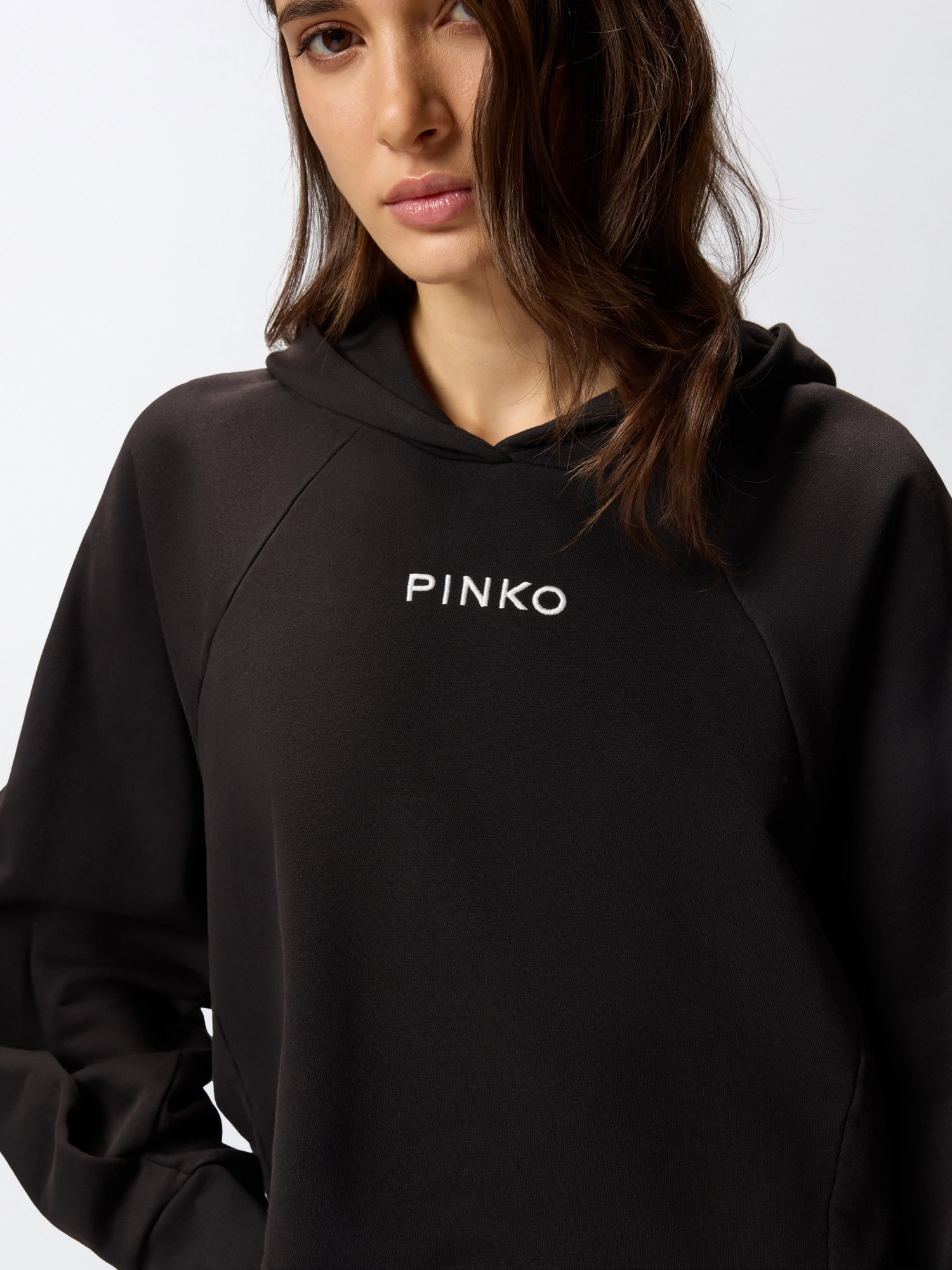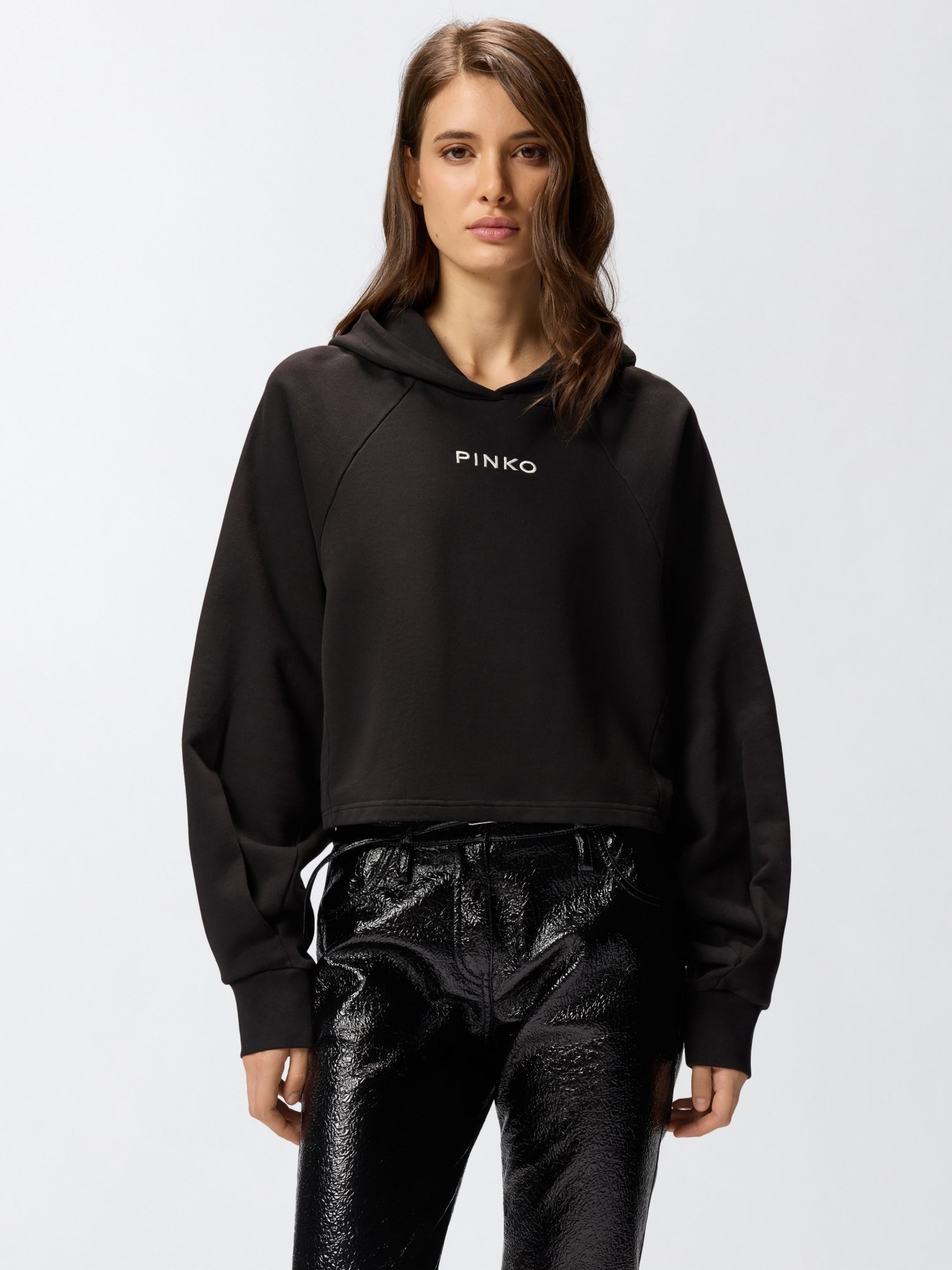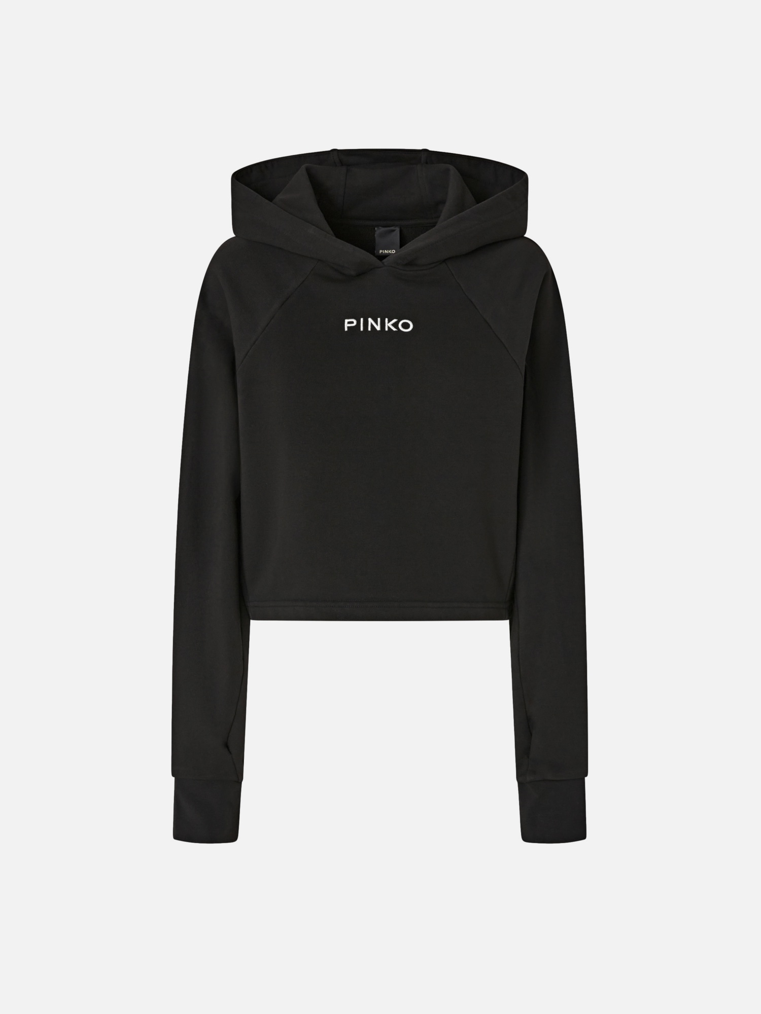 Felpa cropped in cotone con cappuccio e maniche lunghe dal taglio raglan, dotata di fondo e polsi in tessuto stretch.