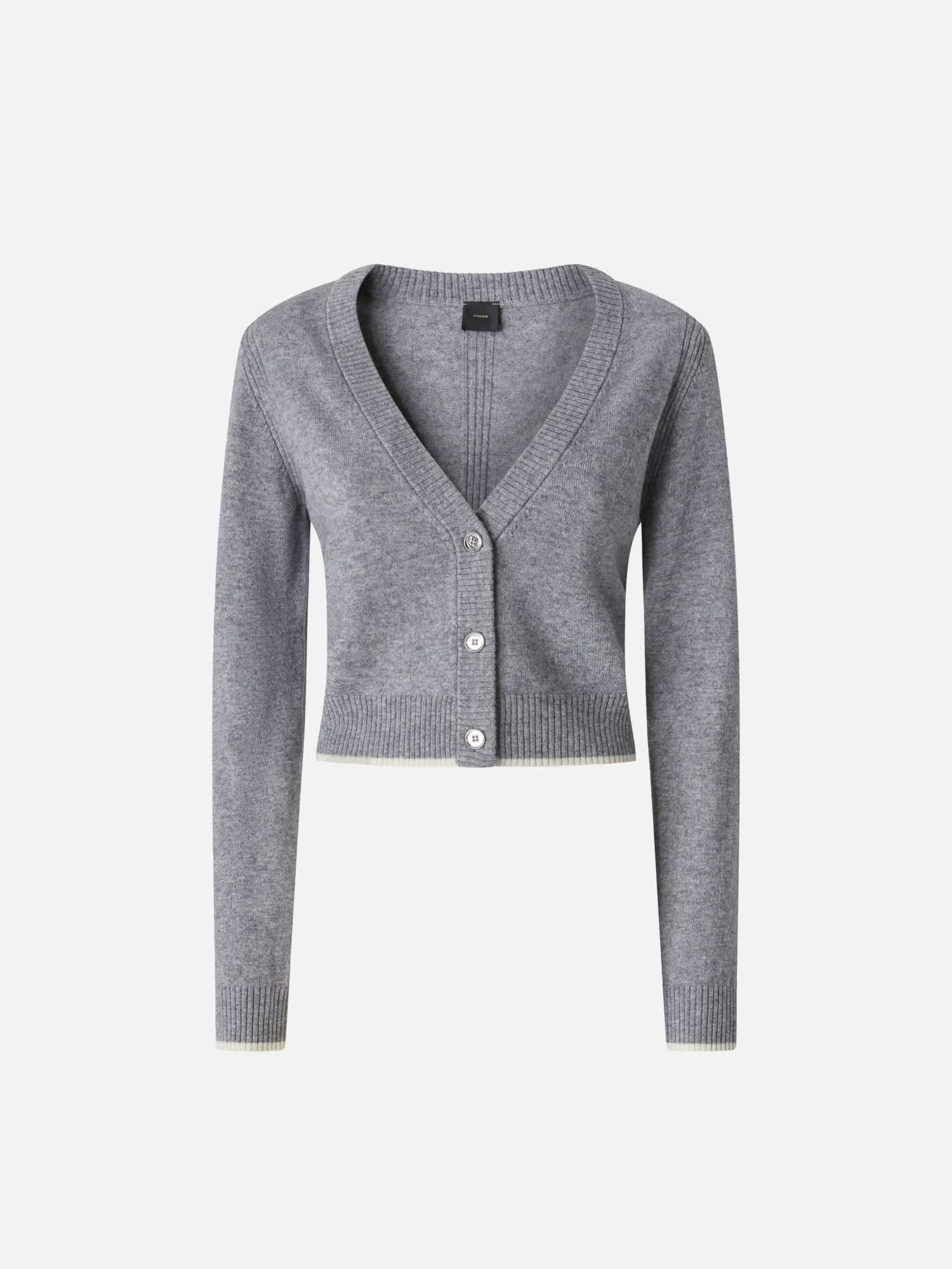 Cardigan in misto lana e cashmere con scollo a V, orlo e polsini lavorati a coste logo lettering sul retro.