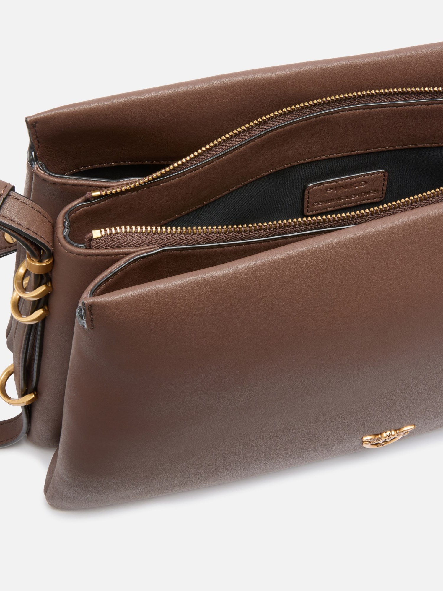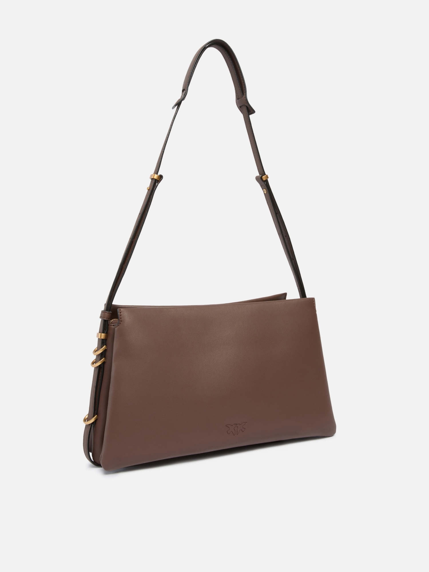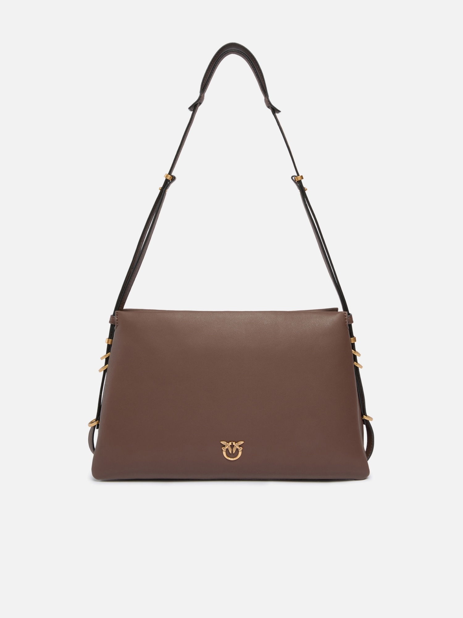 Borsa a tracolla in pelle mano seta, caratterizzata da tre diversi scomparti, dei quali quello centrale è chiuso con zip, tracolla regolabile in pelle è personalizzata con dettagli in metallo alla base, mentre sulla parte frontale della borsa è applicato il logo.