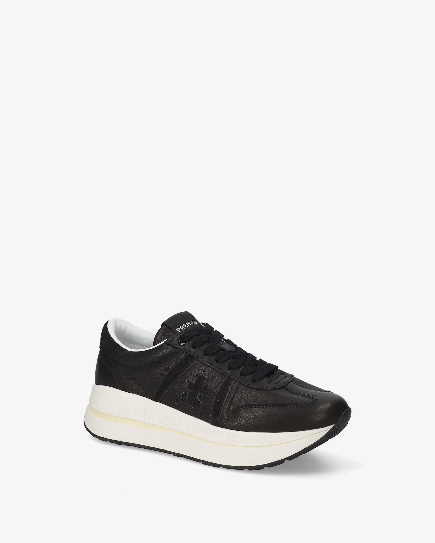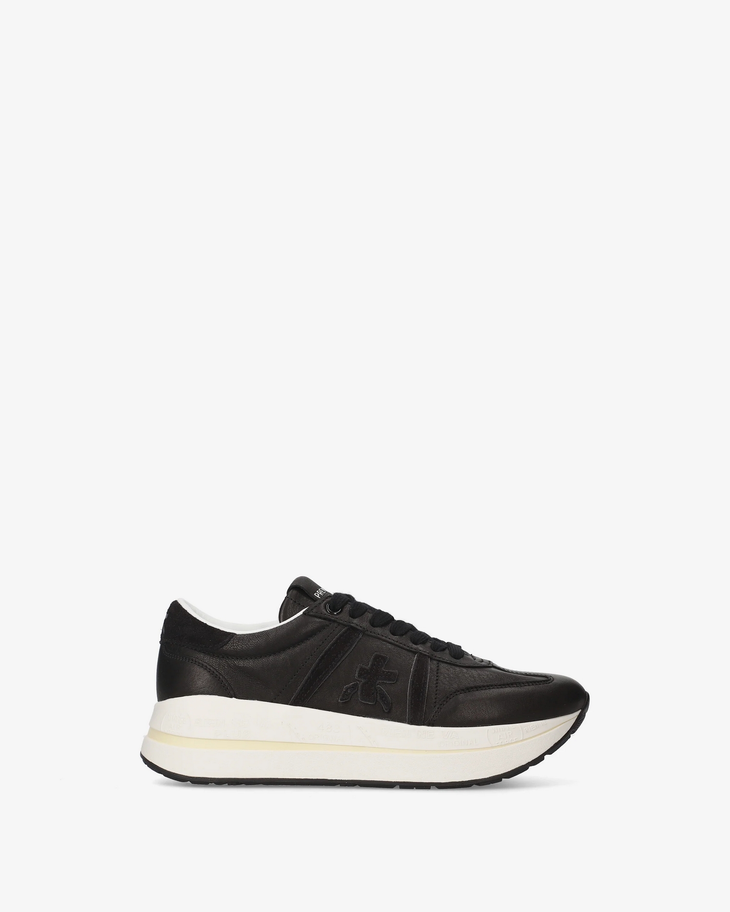Sneakers con suola platform a contrasto, stampe grafiche e scritte serigrafate laterali e inserto in gomma.