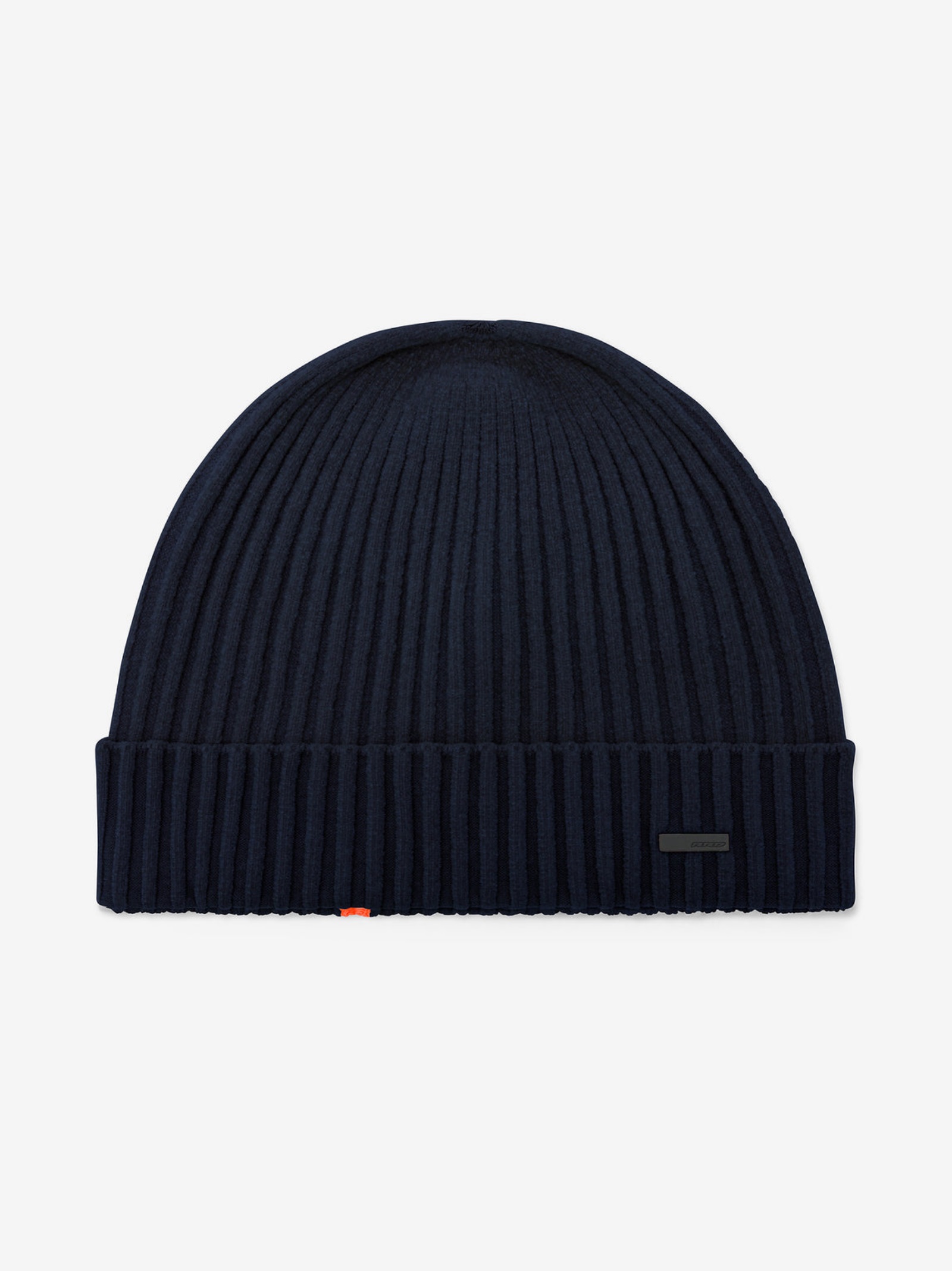 Beanie in ciniglia elasticizzata effetto velluto, lavorazione a coste inglesi elasticizzate, inserto arancione e logo RRD a microiniezione.