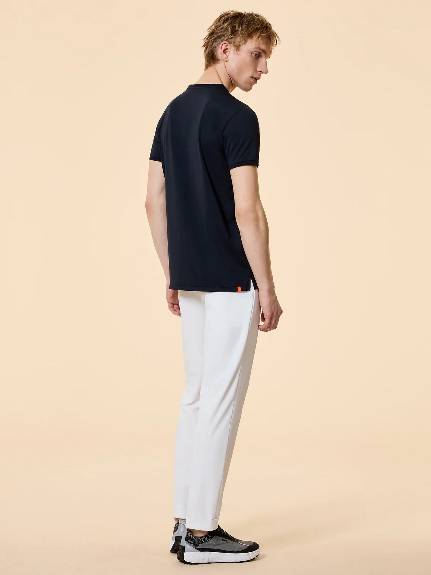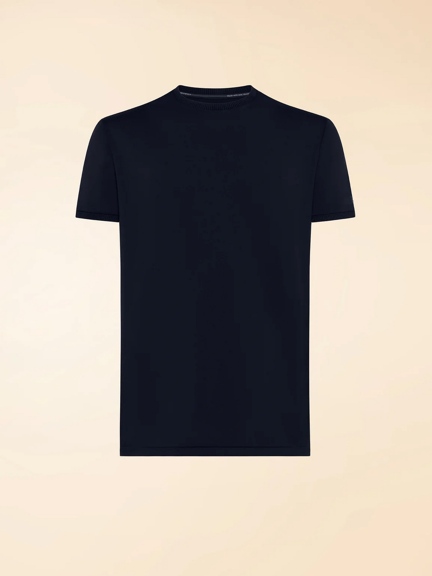 T-shirt con lavorazione a costine elasticizzate del colletto e delle maniche corte.