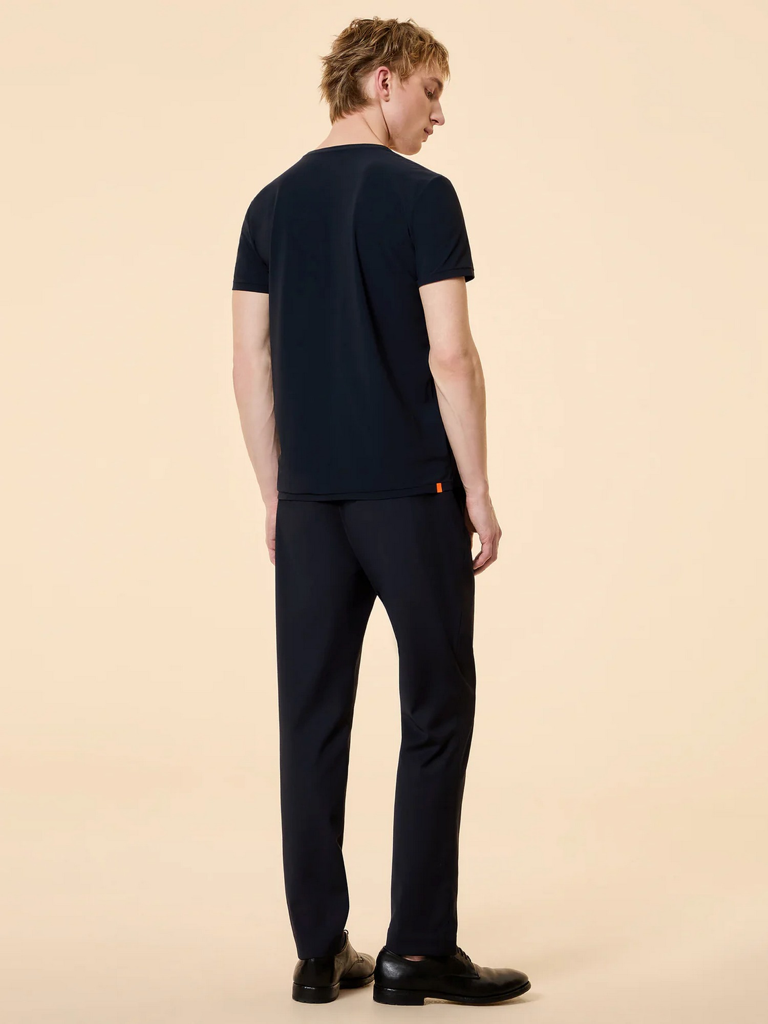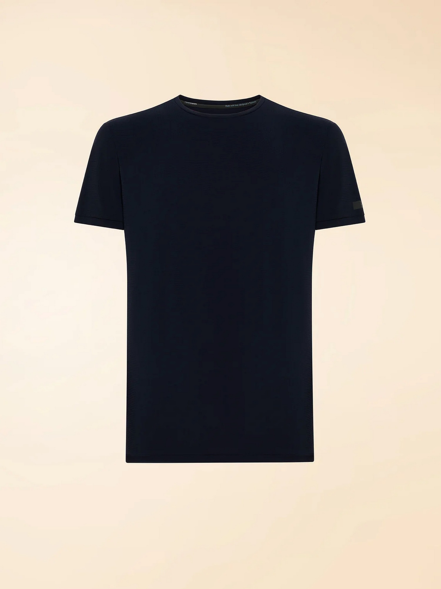 T-shirt in tessuto elasticizzato con lavorazione a rilievo a effetto seersucker square e micro spacchi laterali.