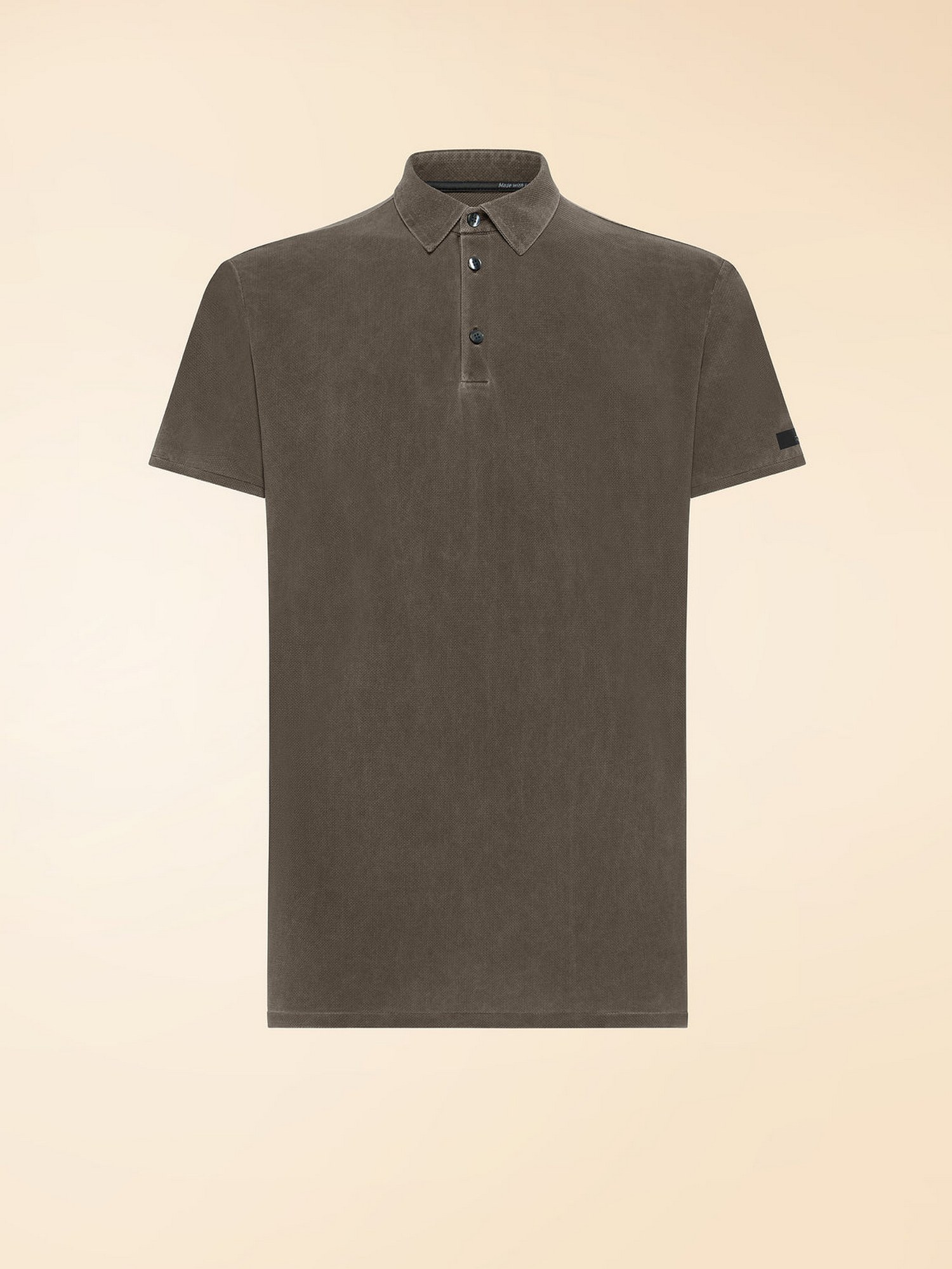 Polo in micro piquet effetto delavé con colletto a camicia e tre bottoni in madreperla.
