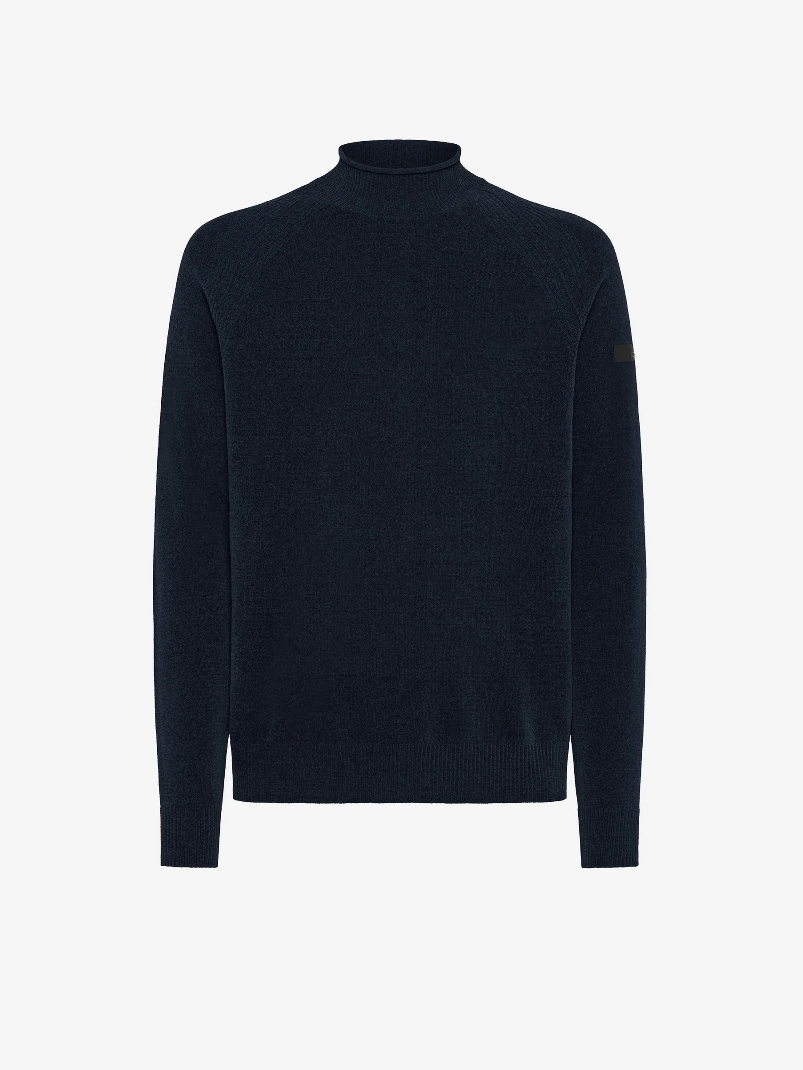 Maglia dolcevita in ciniglia, collo alto arricciato, insieme ai polsi e al fondo rifiniti a coste inglesi, inserto arancio fluo sul fondo posteriore e logo a microiniezione sulla manica.