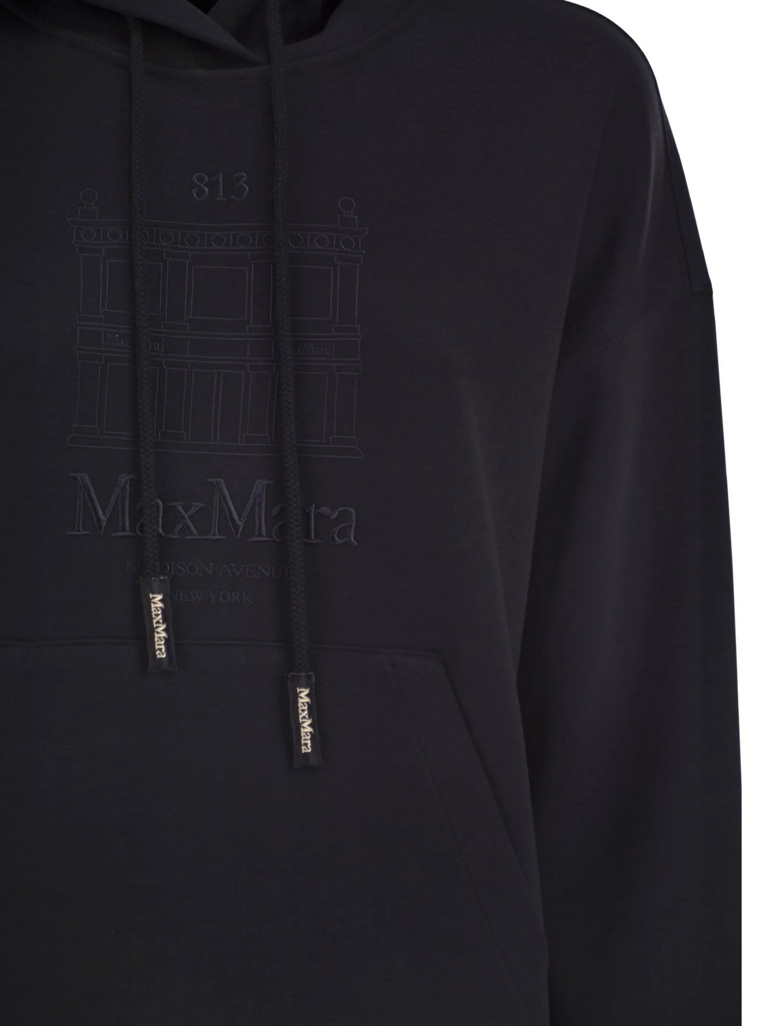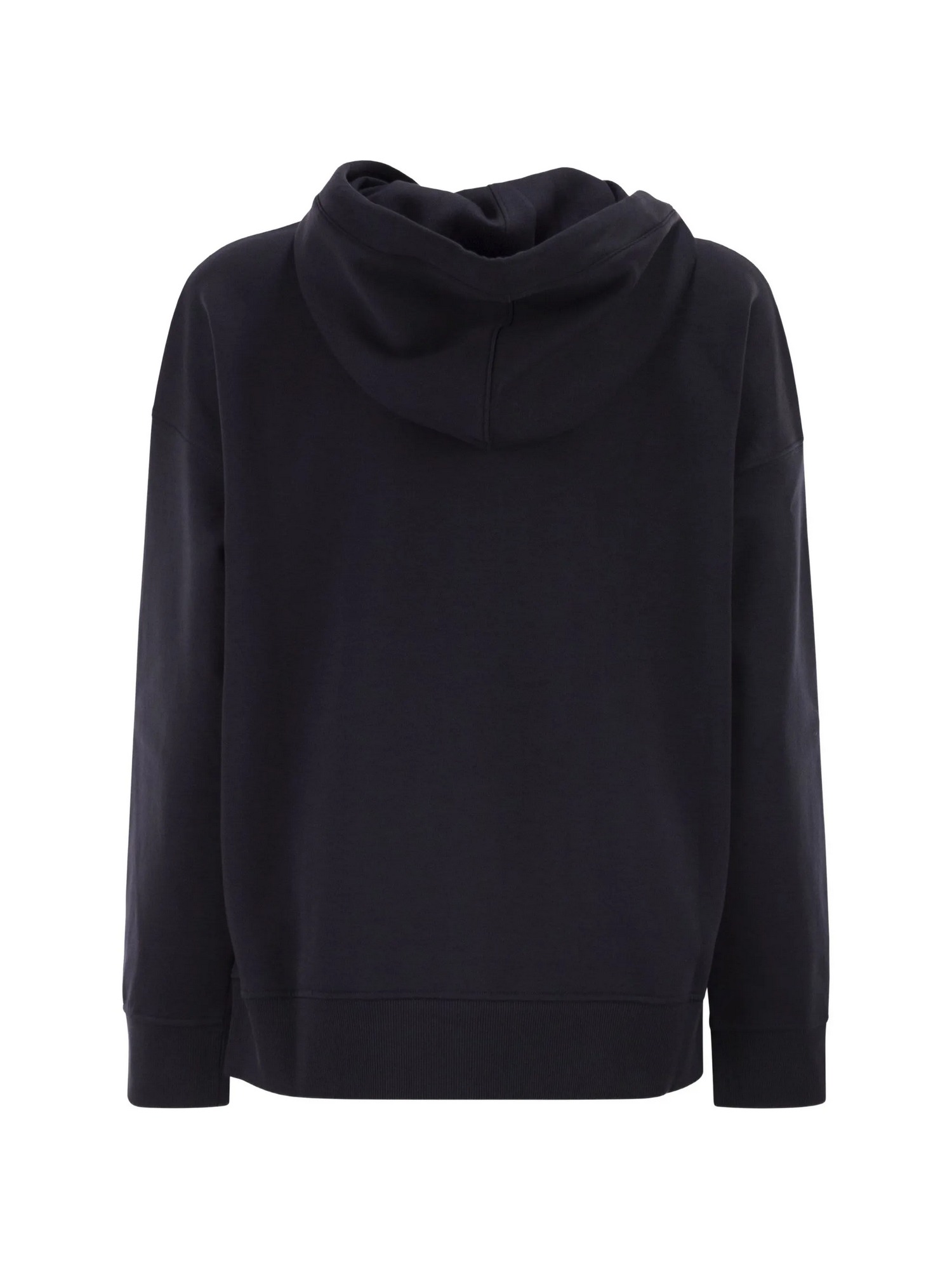 Felpa in jersey di cotone tecnico con cappuccio a coulisse, grafica ricamato sul davanti, tasca marsupio sul davanti, polsi e bordo a costine.