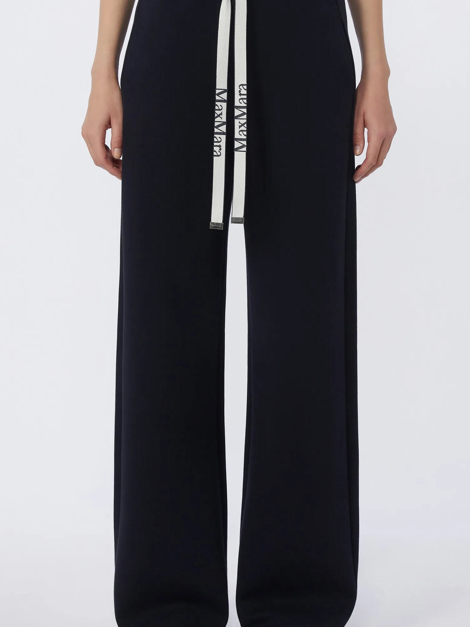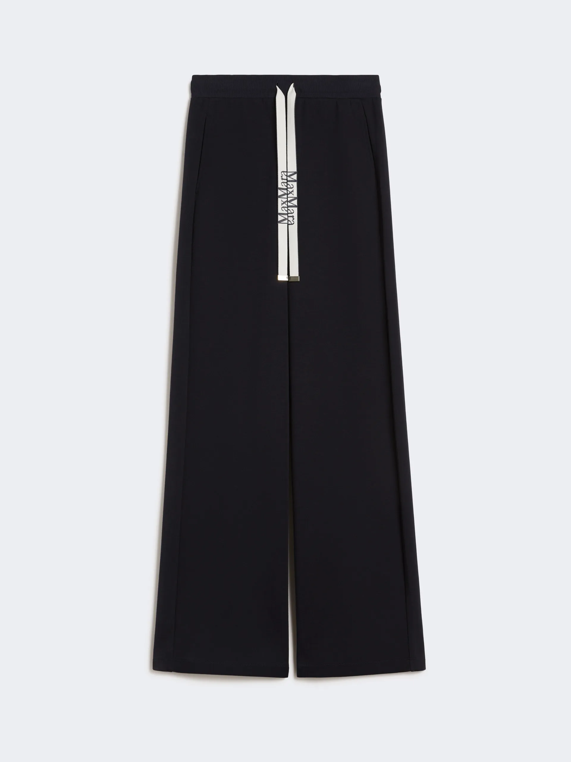 Pantalone in jersey di cotone con vita elasticizzata con coulisse in nastro jacquard, tasche inserite nei fianchi e taschino a filetto sul retro.